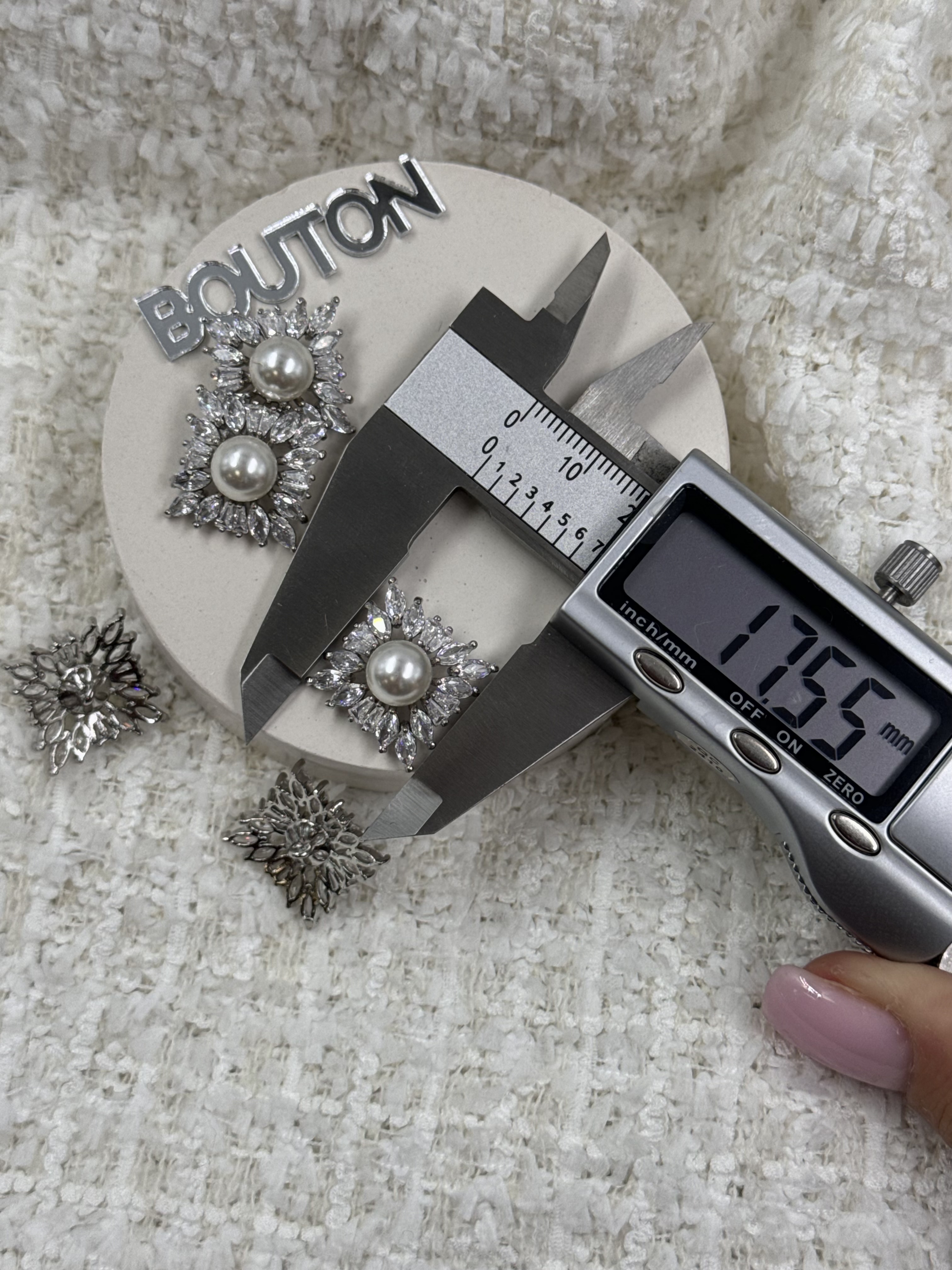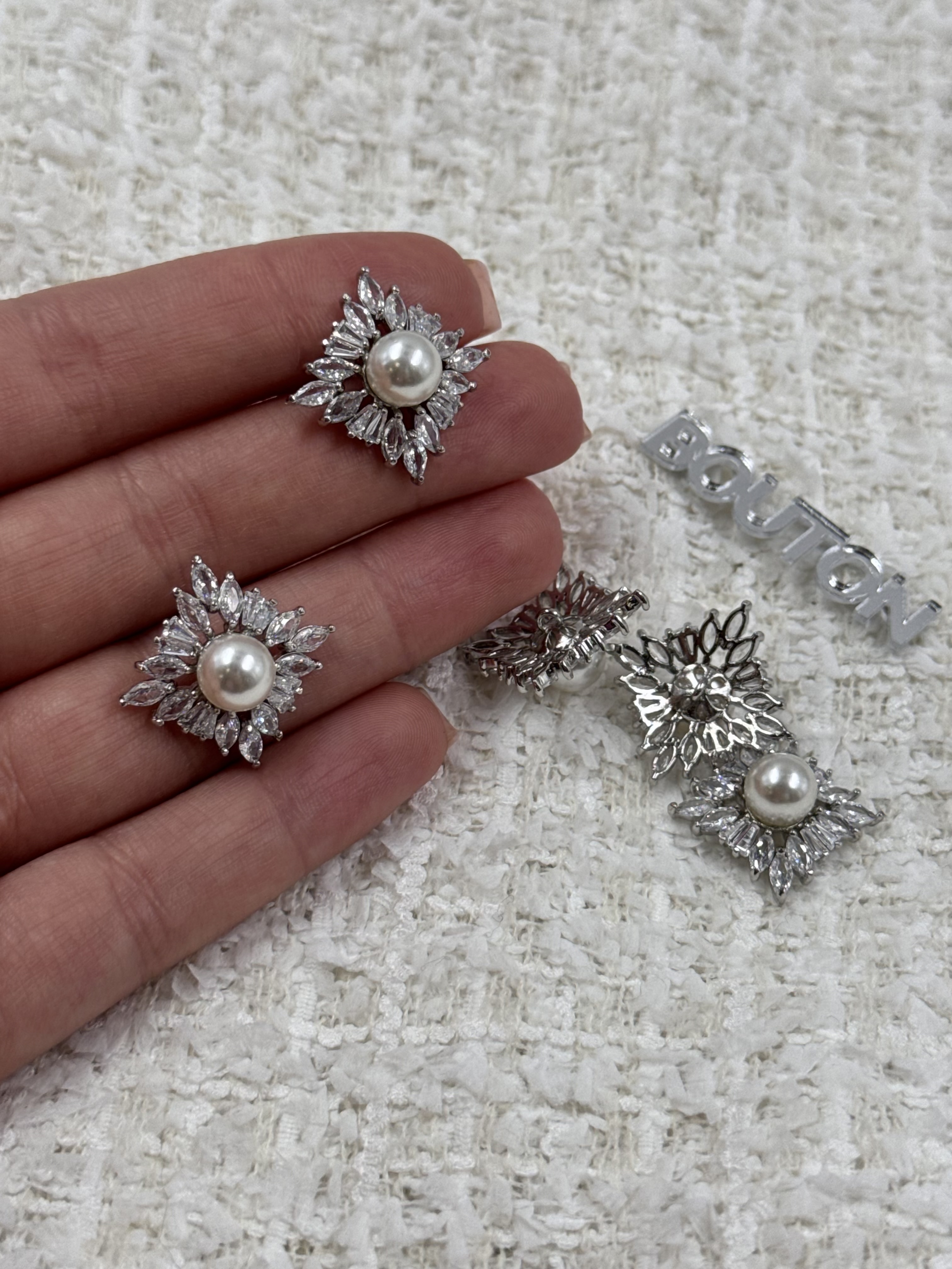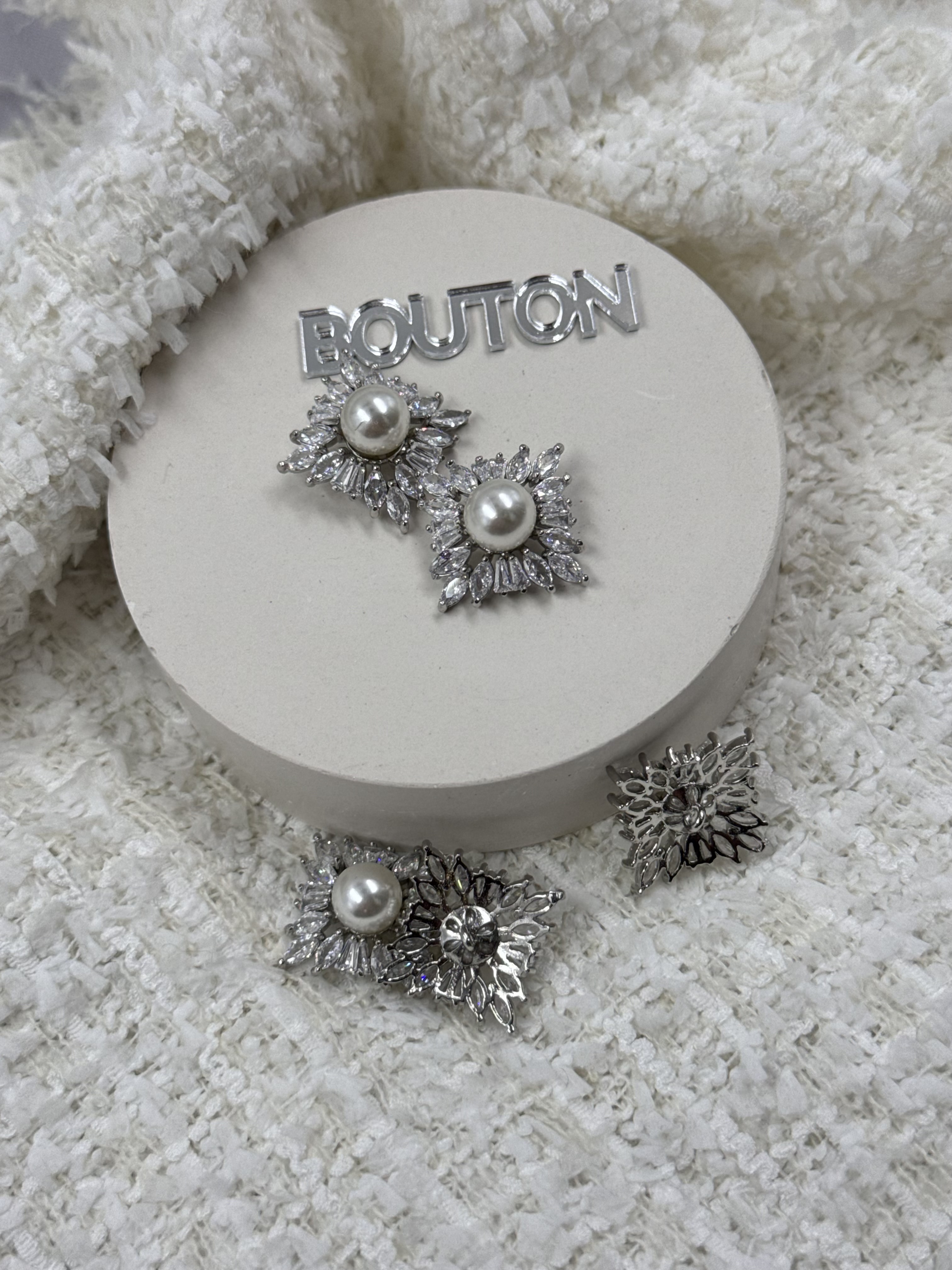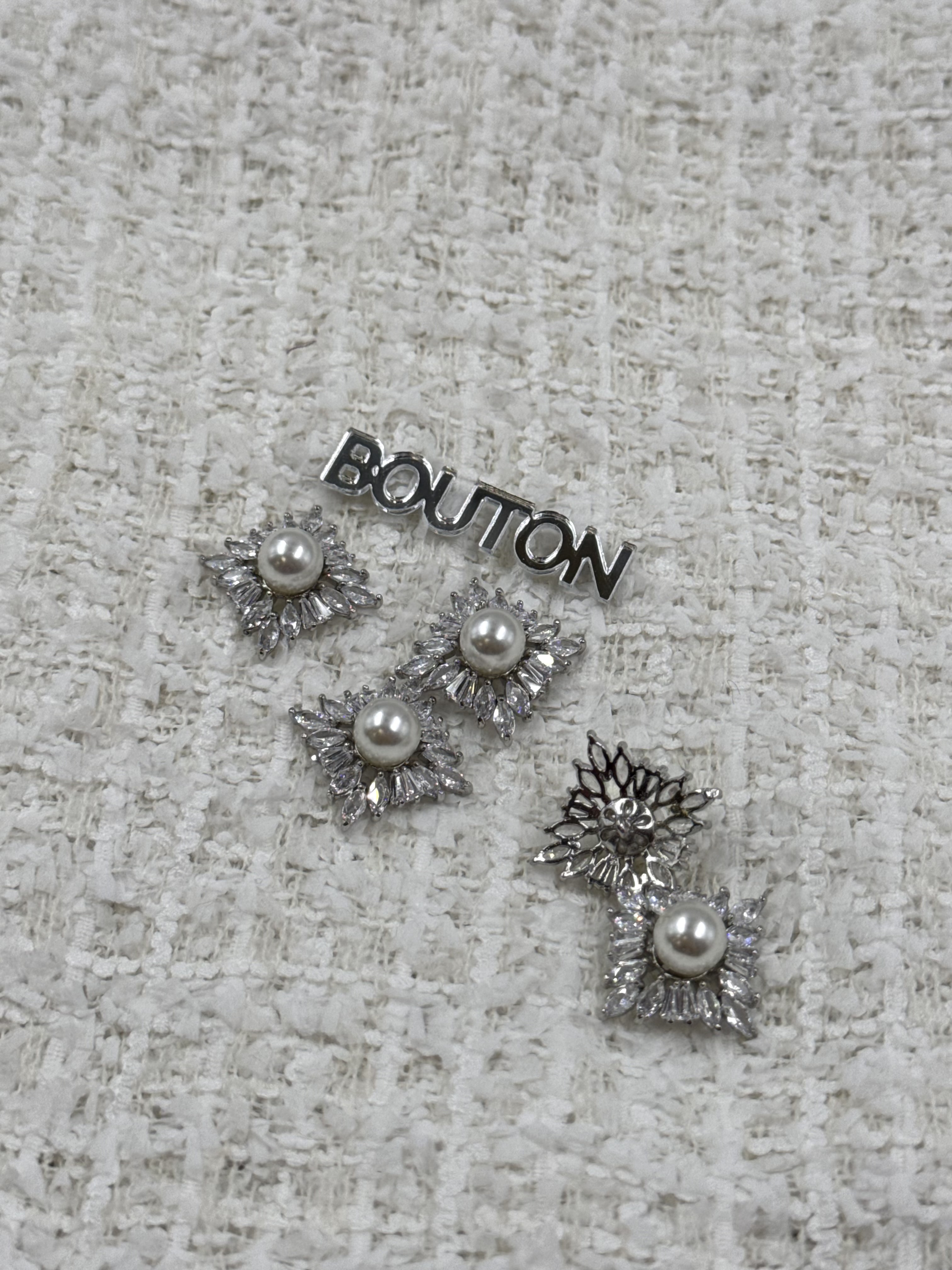 Пуговицы квадратные с горным хрусталем и жемчугом