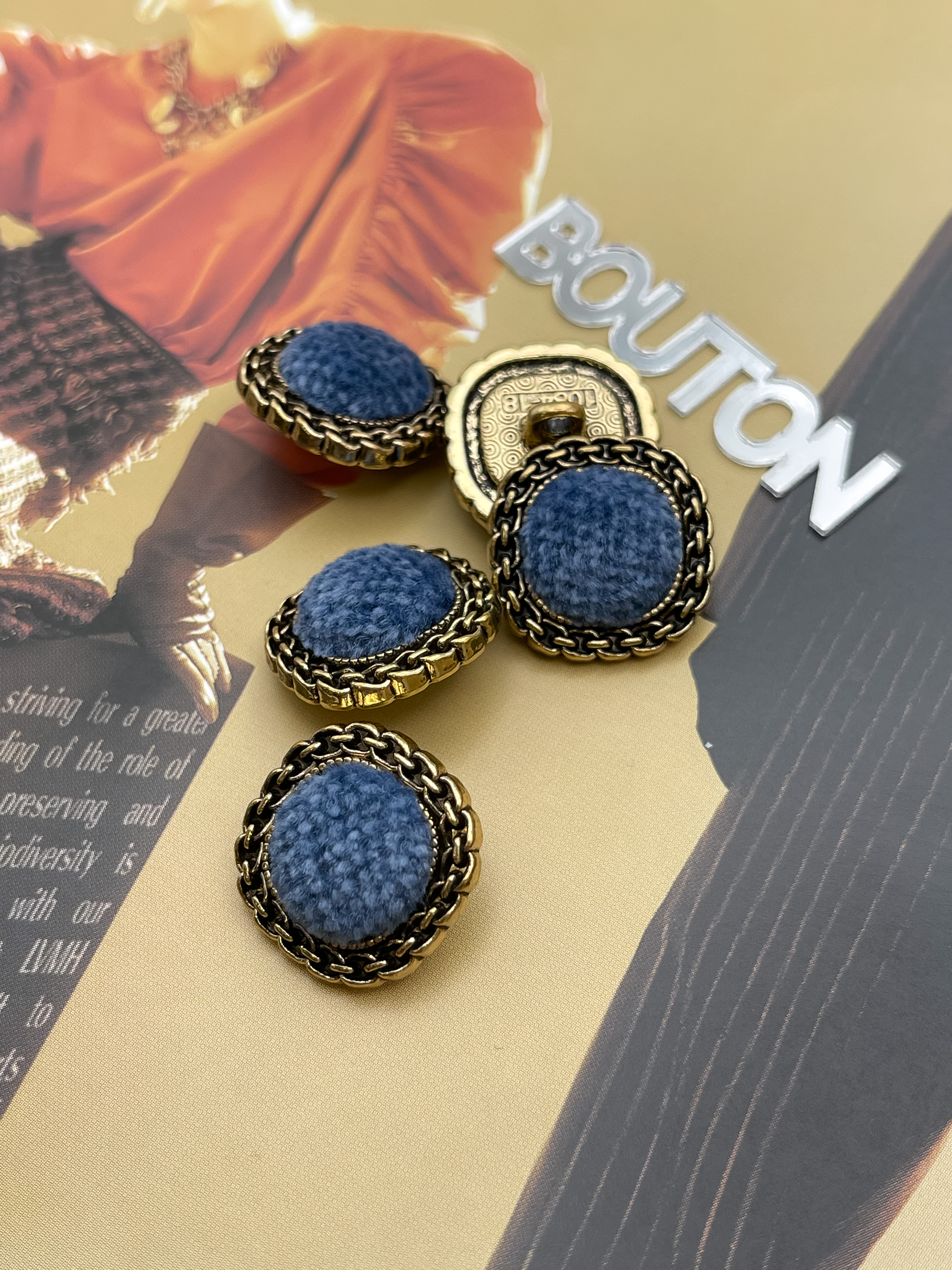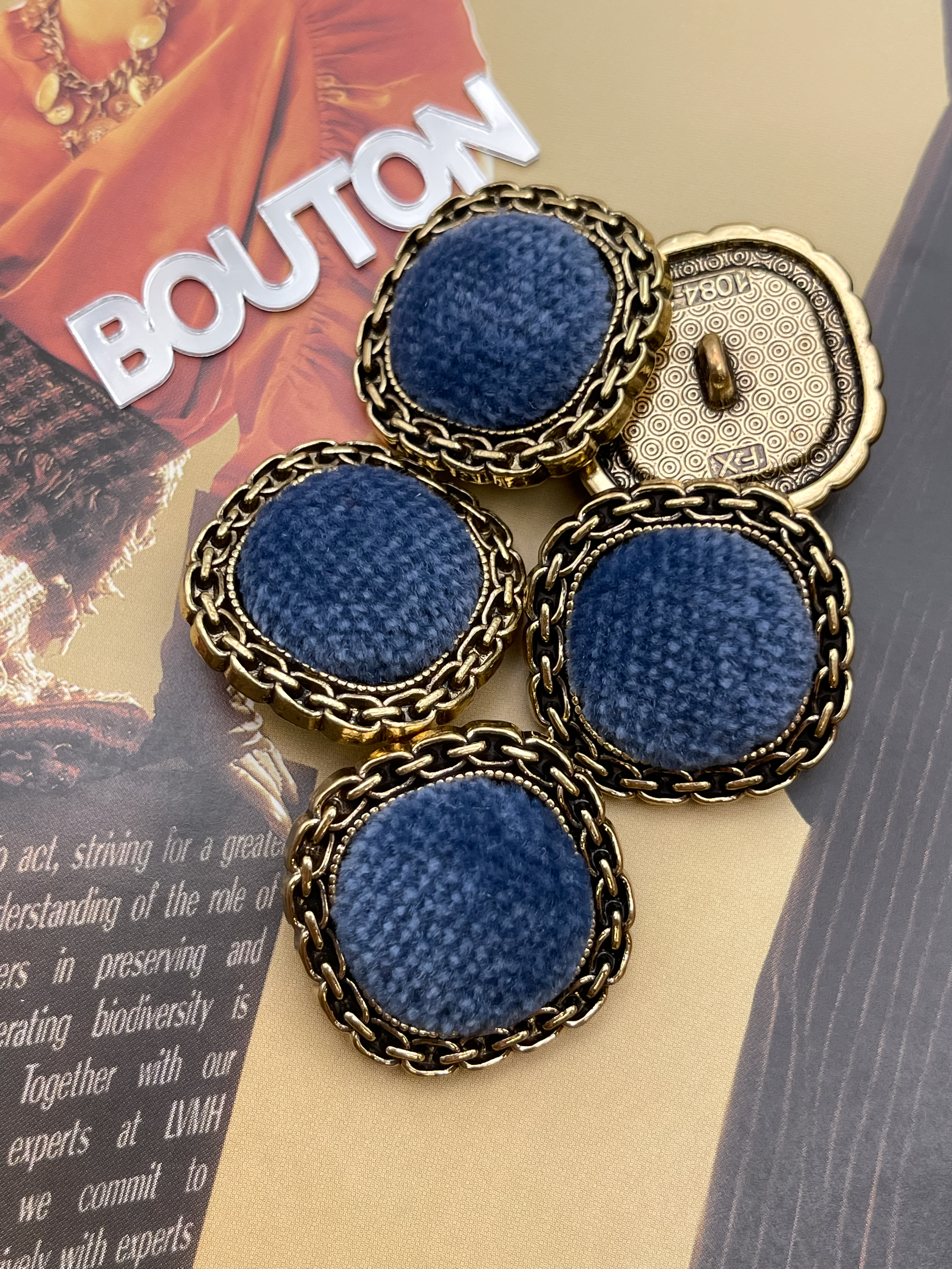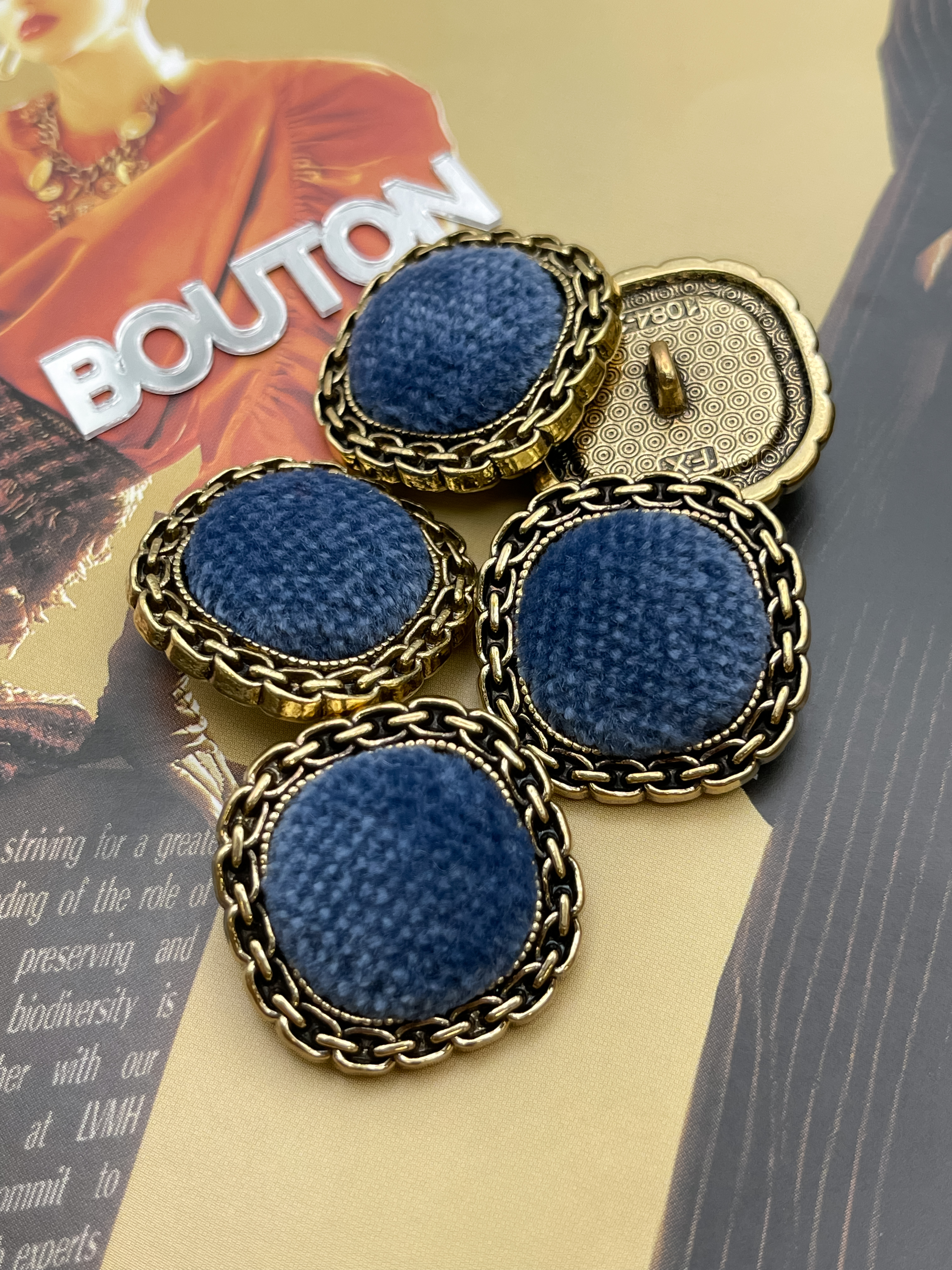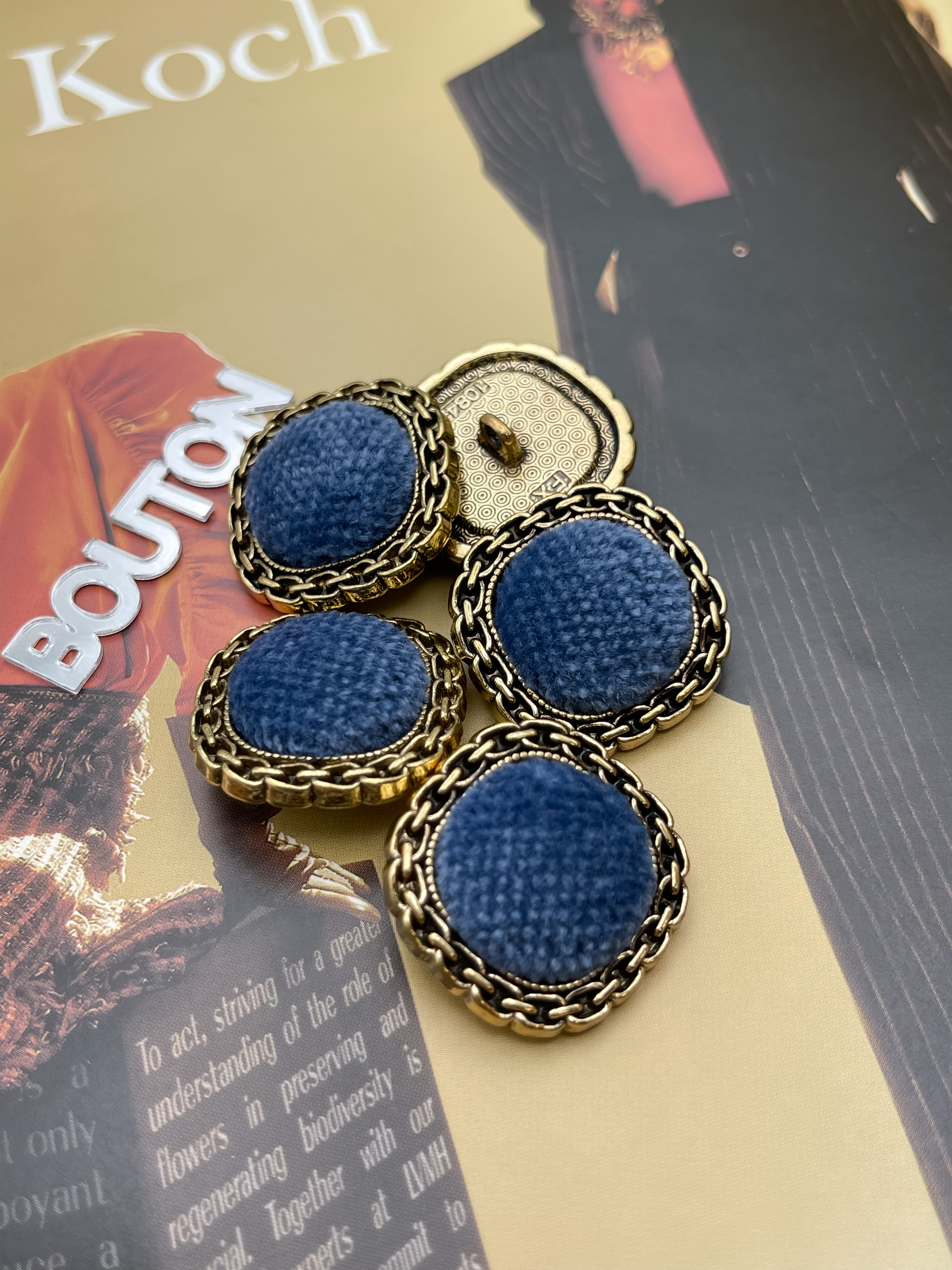 Пуговицы в форме мягкий квадрат из металла в цвете состаренного золота с синим бархатом. Роскошные пуговицы в двух размерах идеально подойдут для пиджака