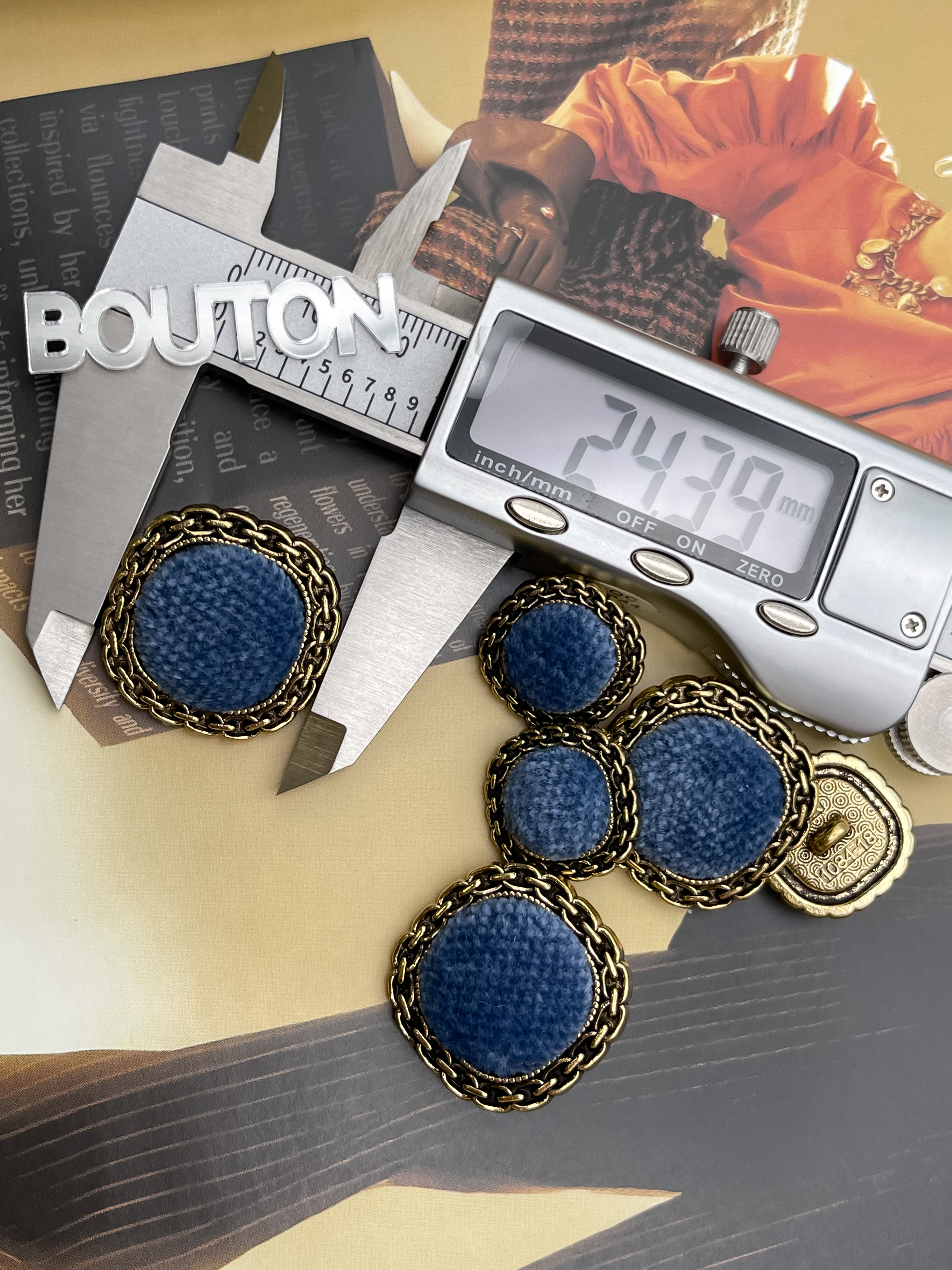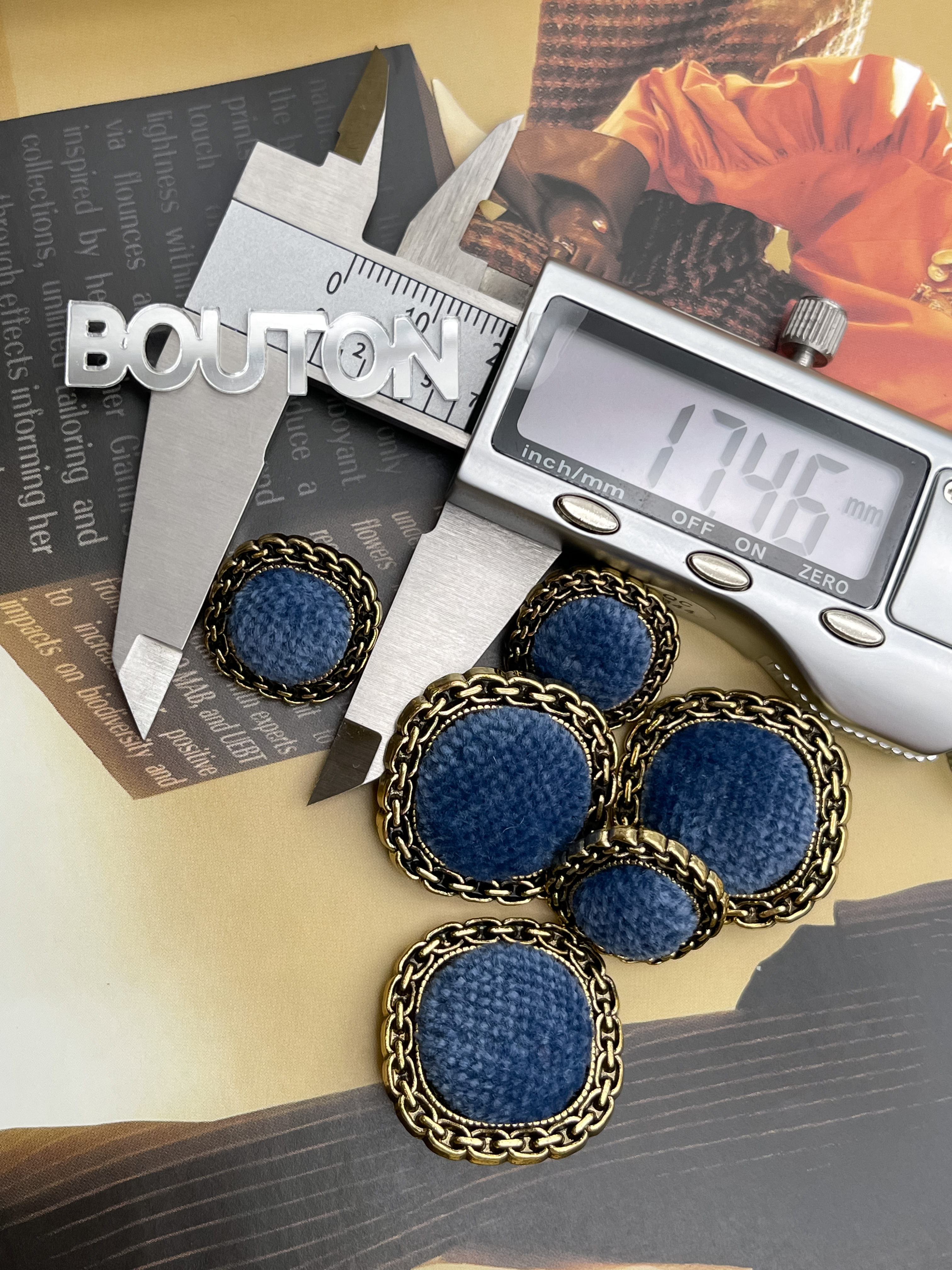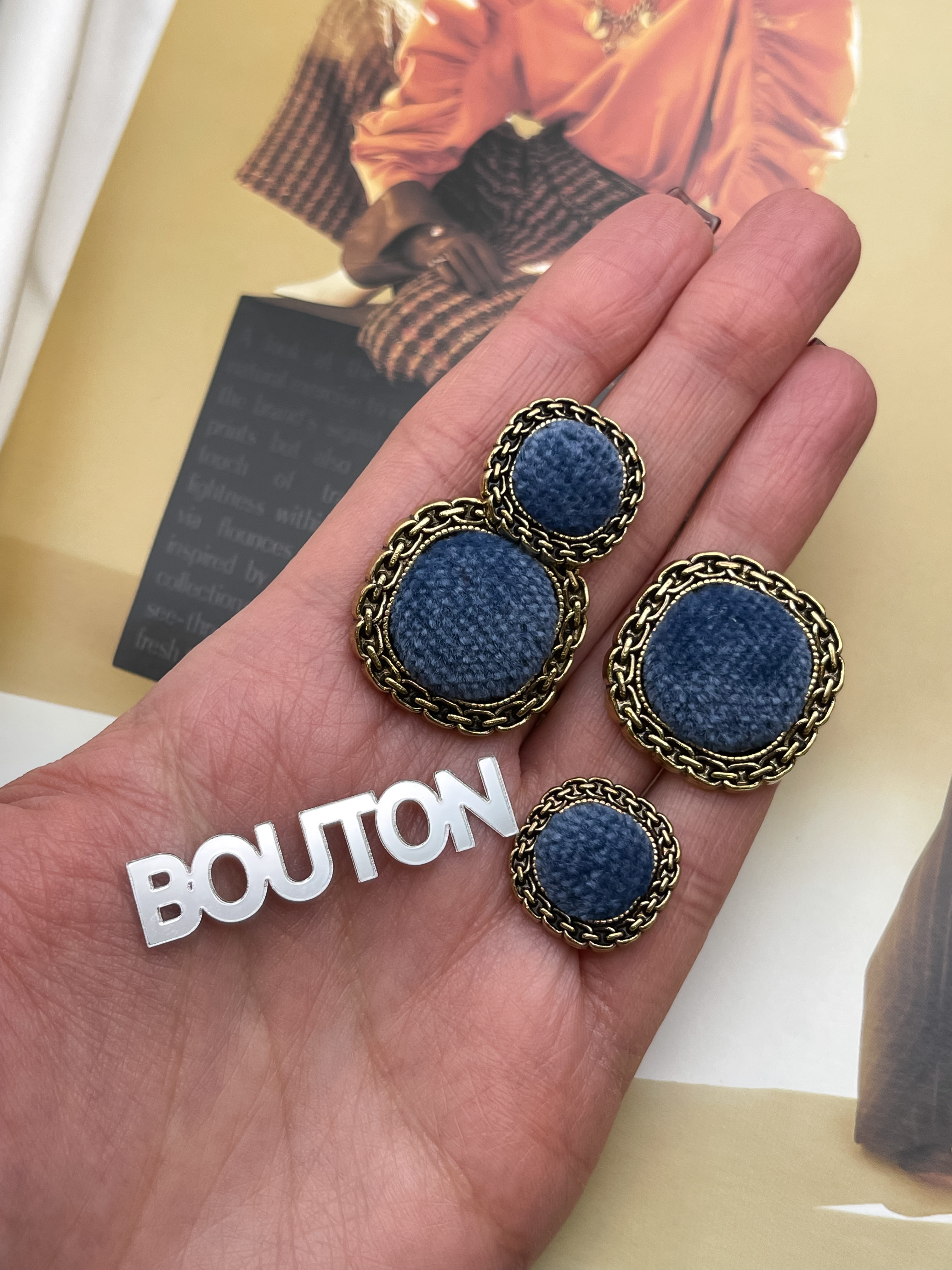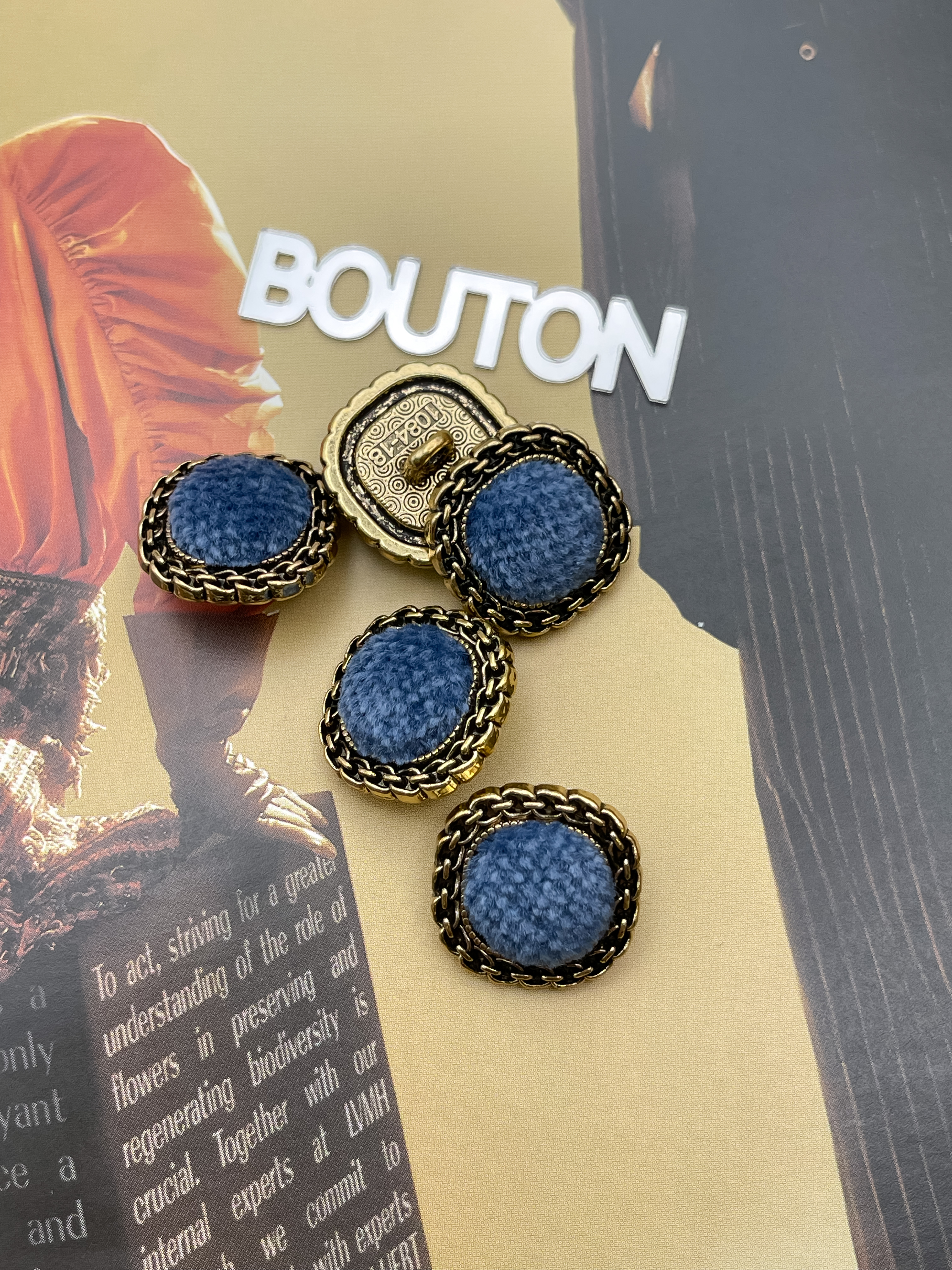 Пуговицы в форме мягкий квадрат из металла в цвете состаренного золота с синим бархатом. Роскошные пуговицы в двух размерах идеально подойдут для пиджака