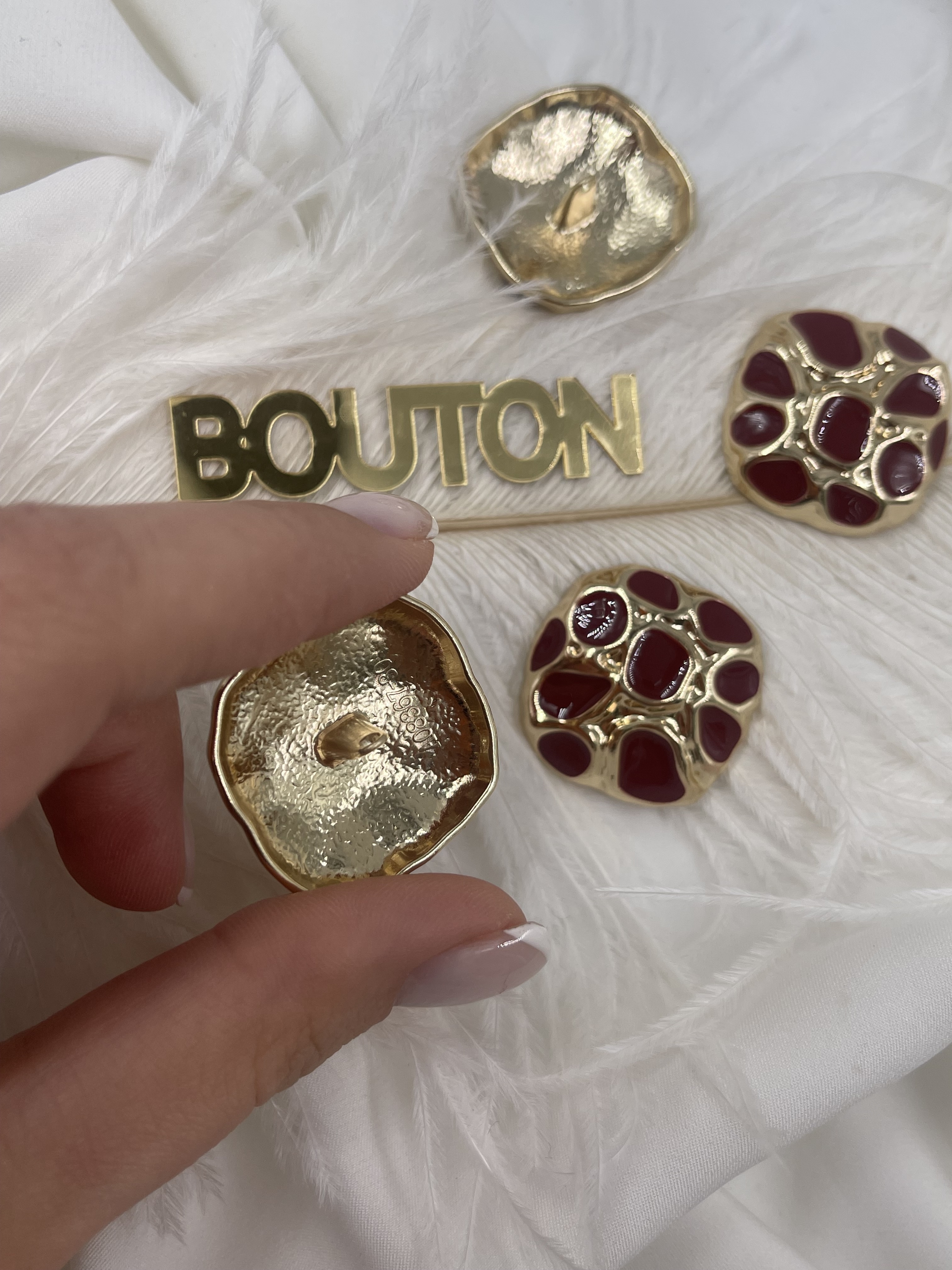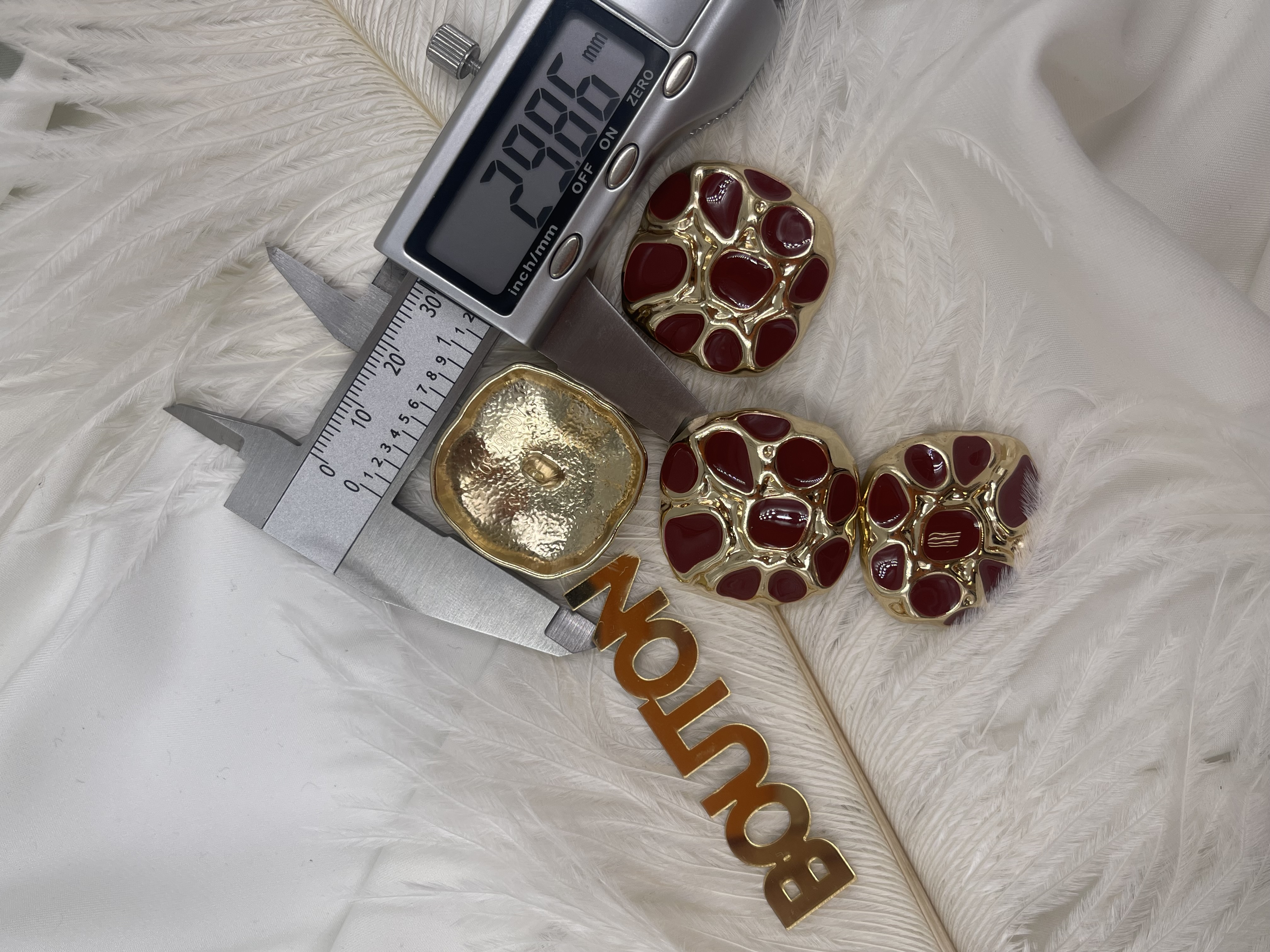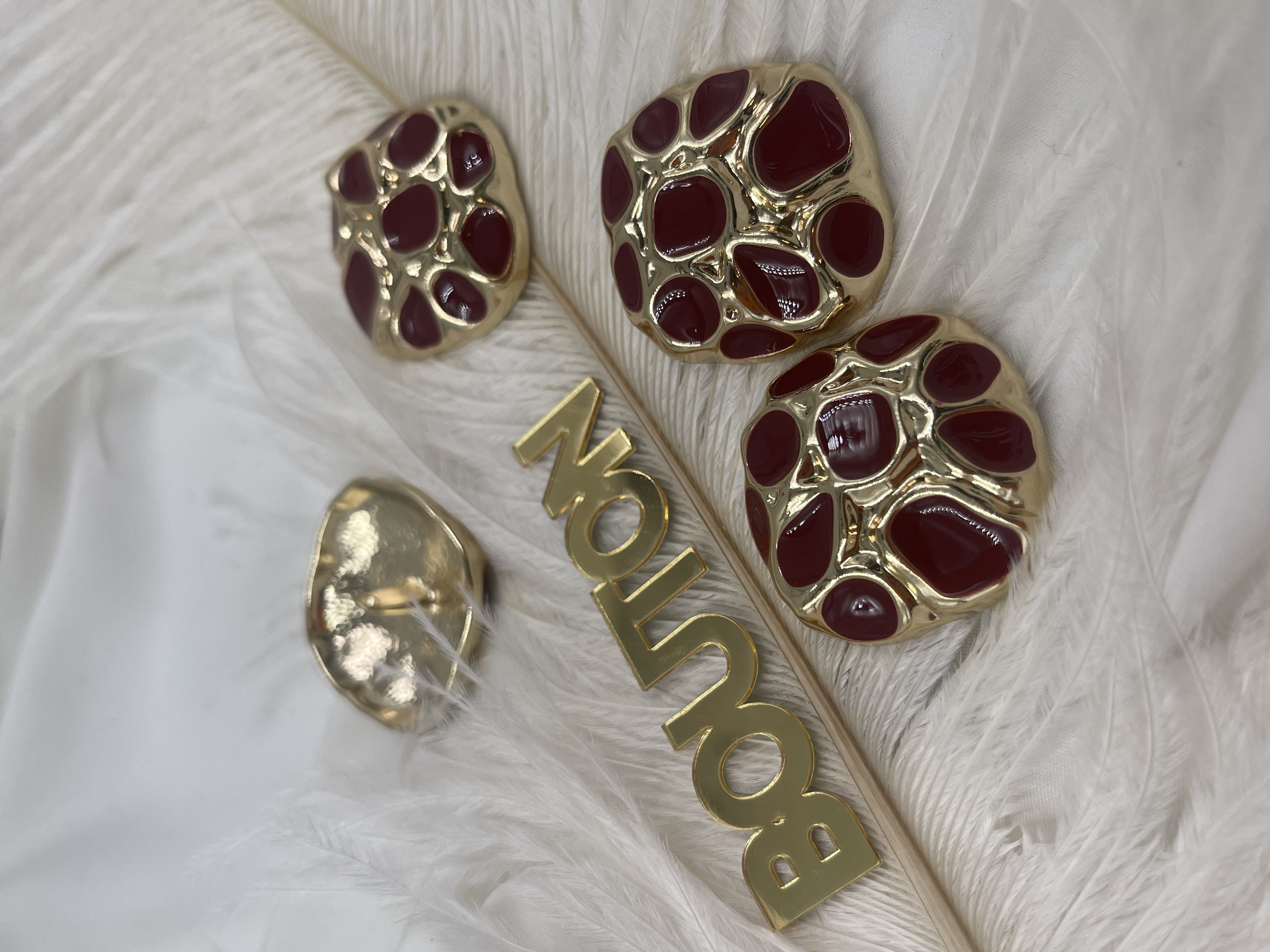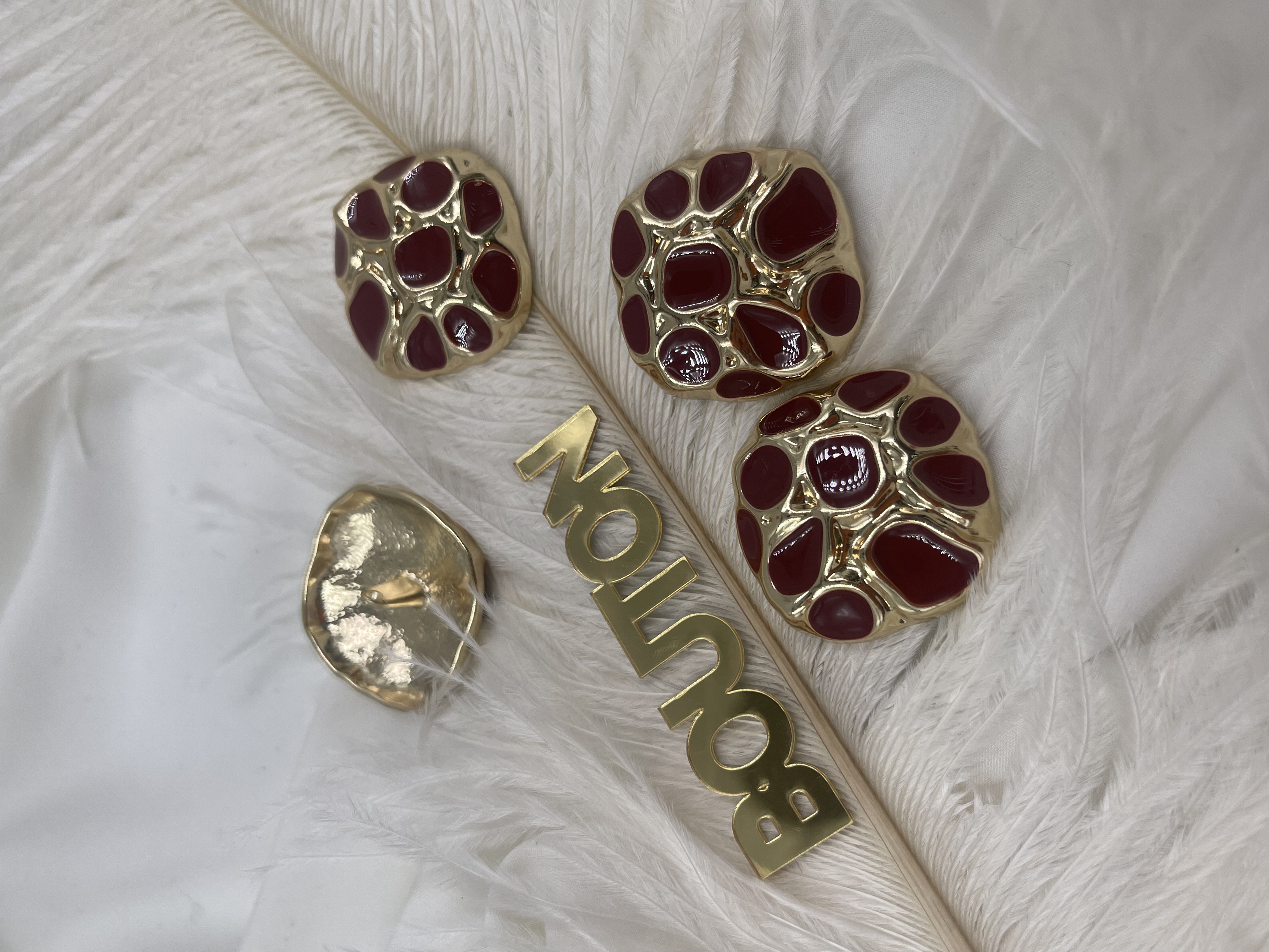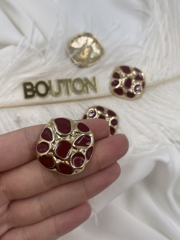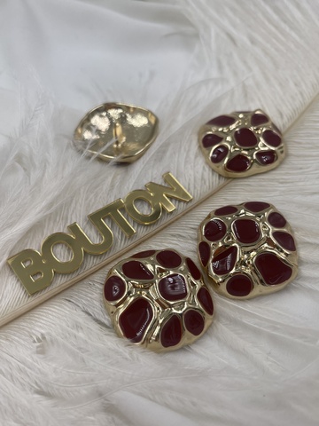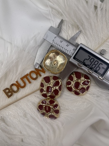 Пуговицы квадратные неровной формы золотистые с красной эмалью