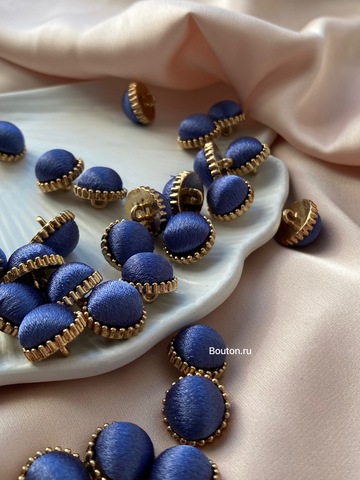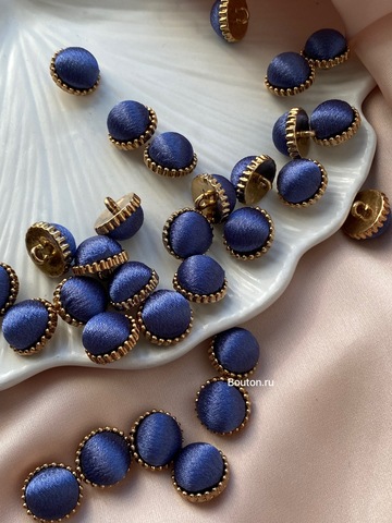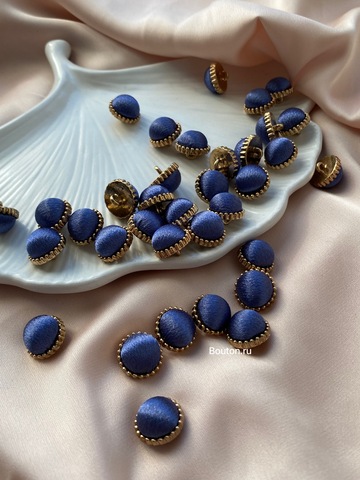 Темно-синие пуговицы обтянутые тканью в обрамление золотистого металла.