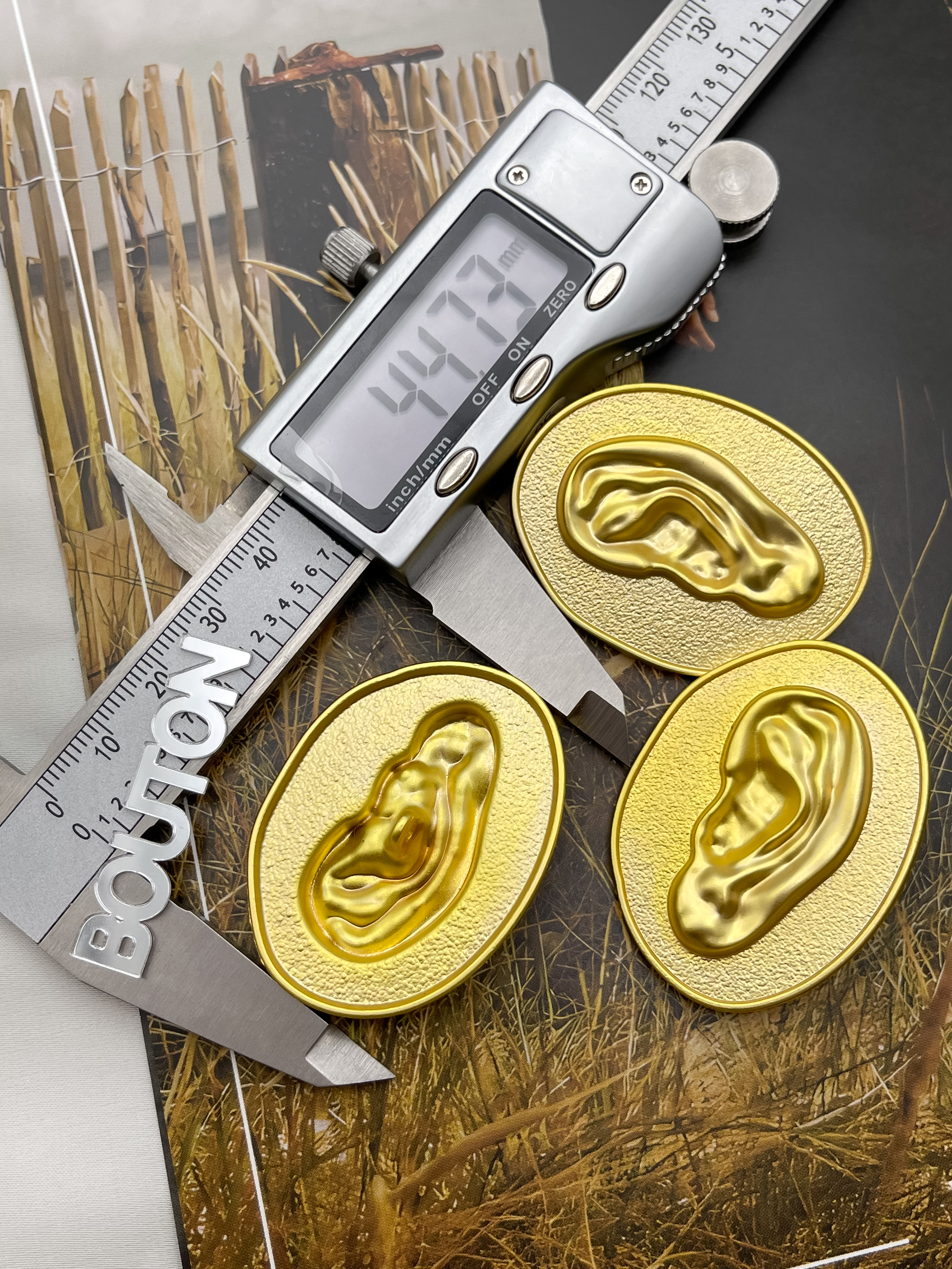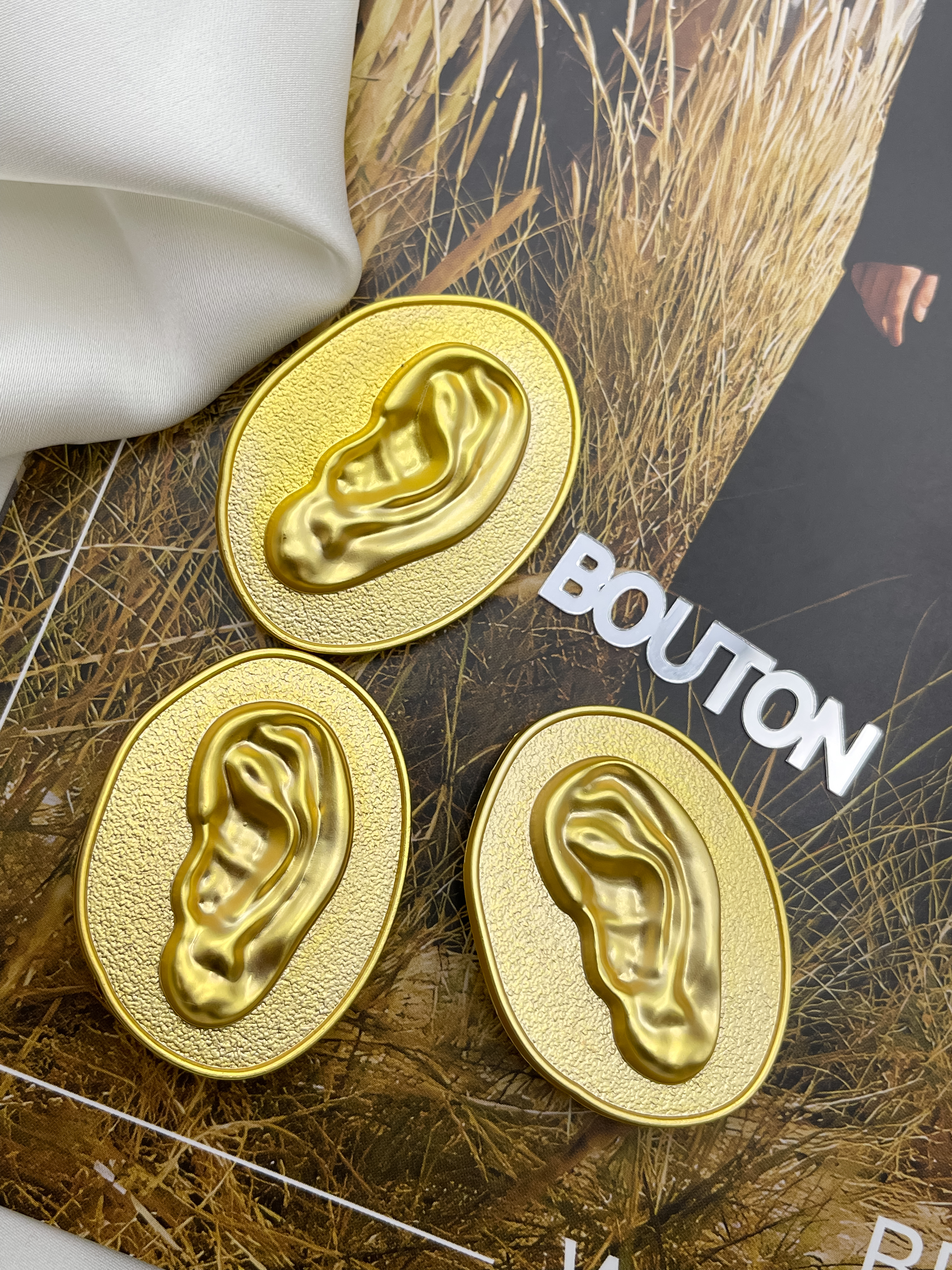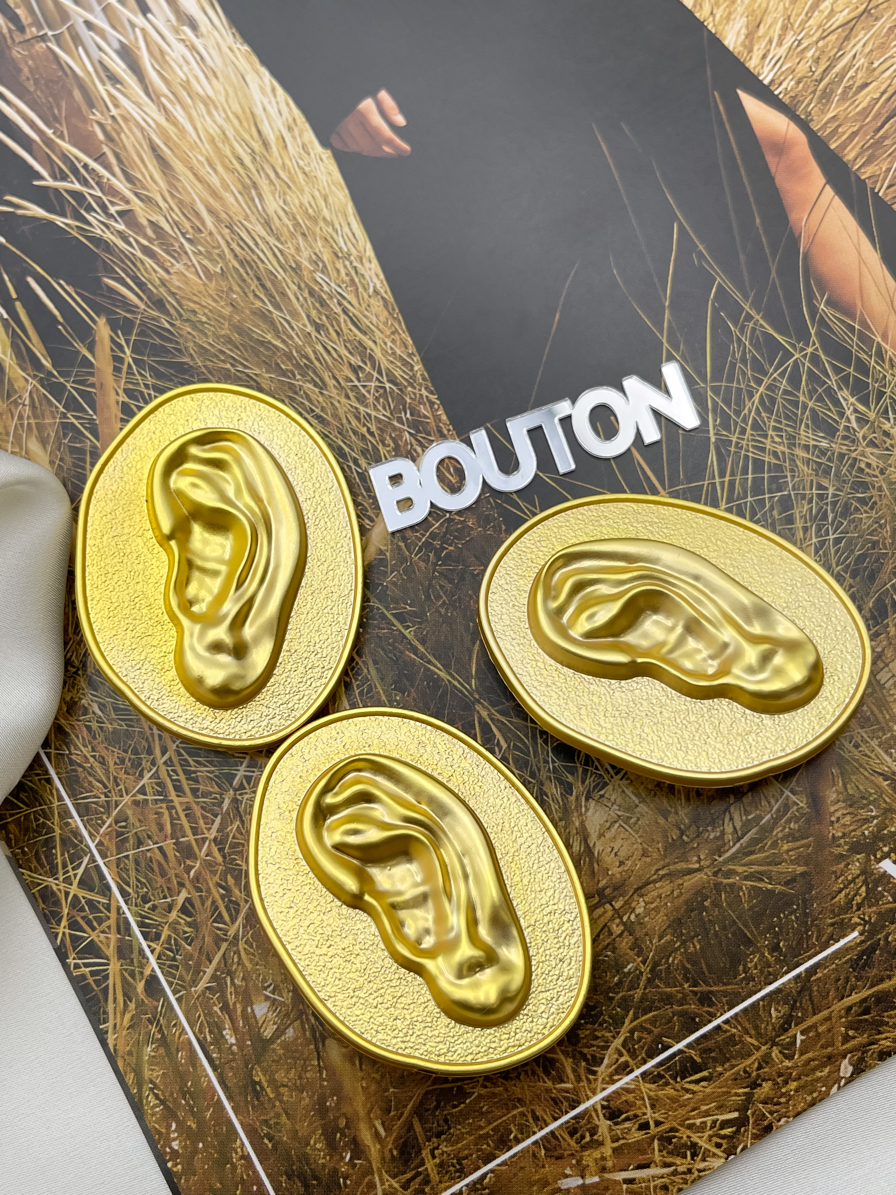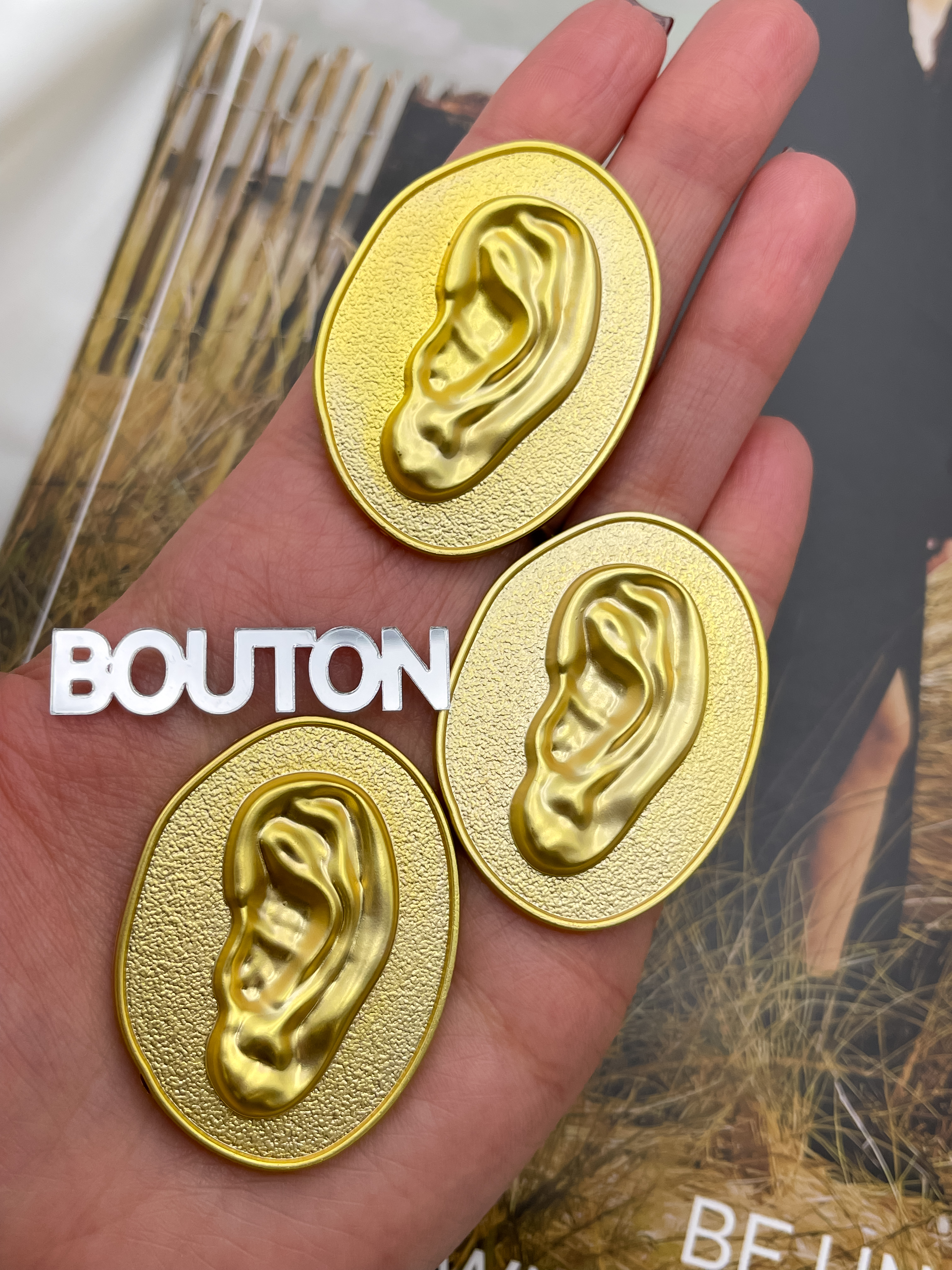 Массивные овальные пуговки в стиле известного бренда с дизайном в форме "Уха"