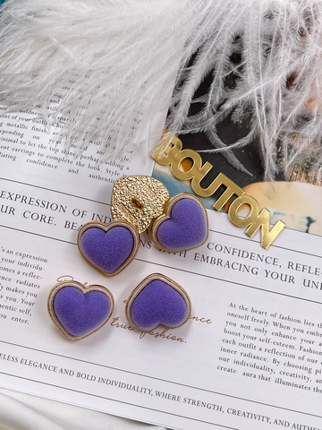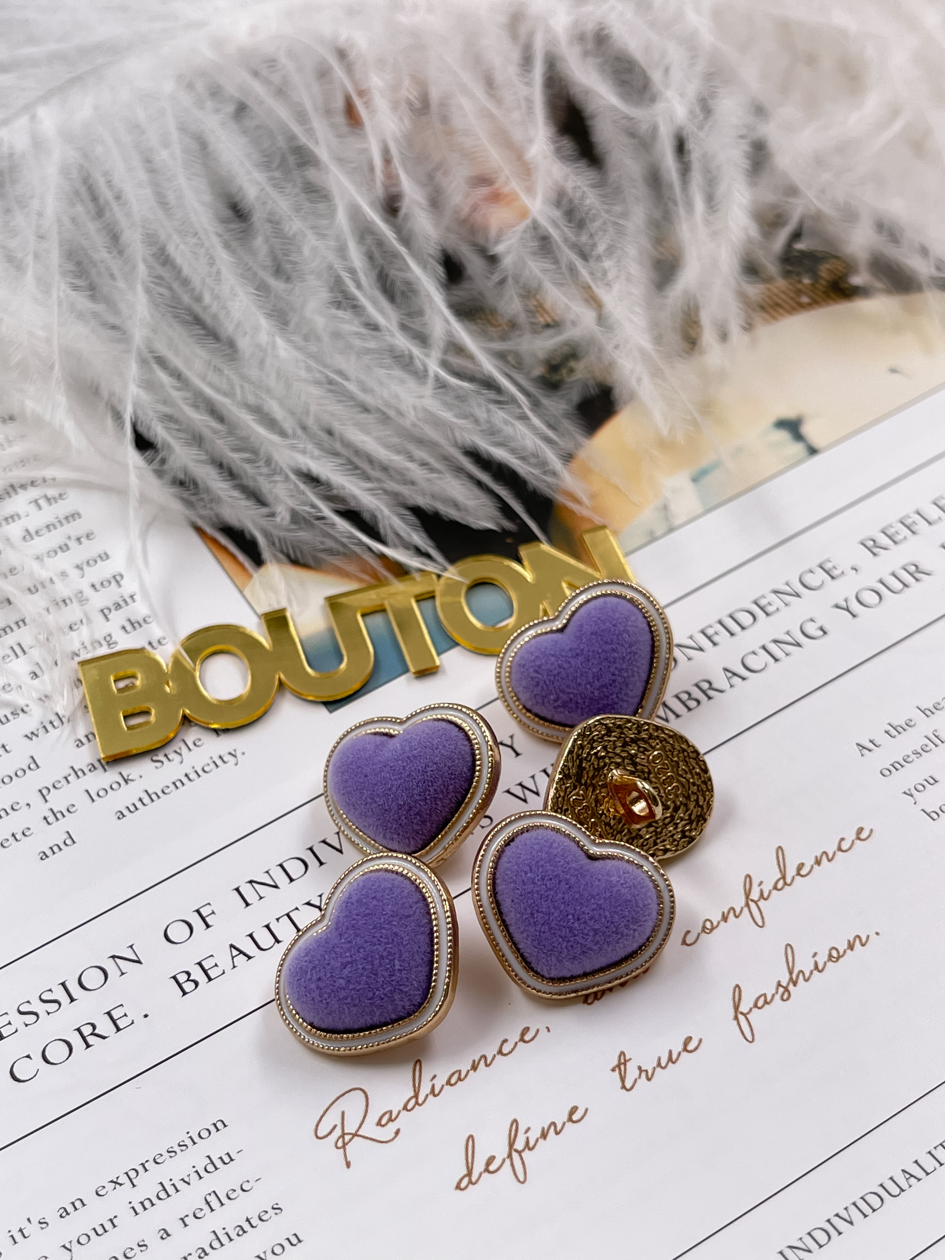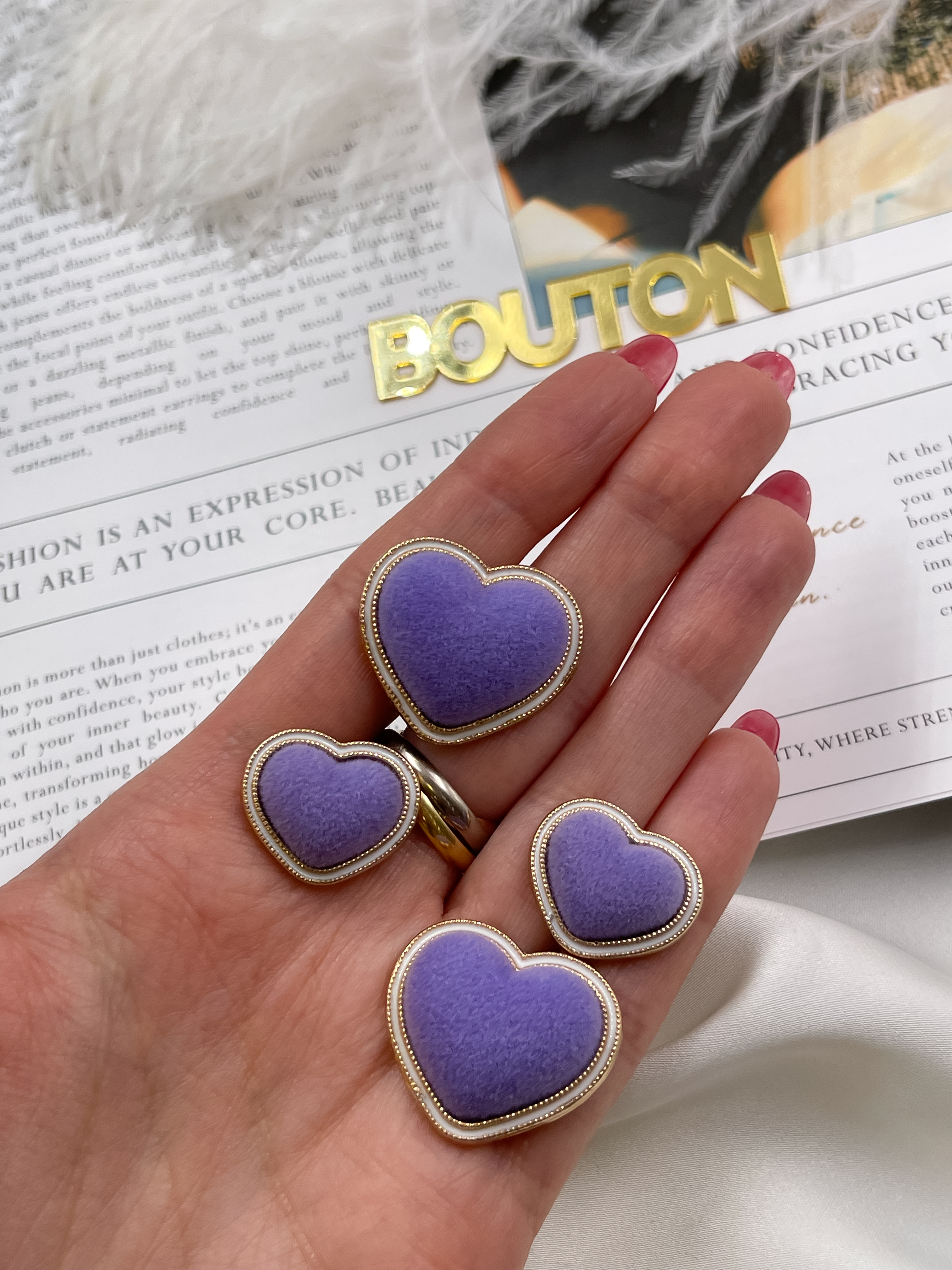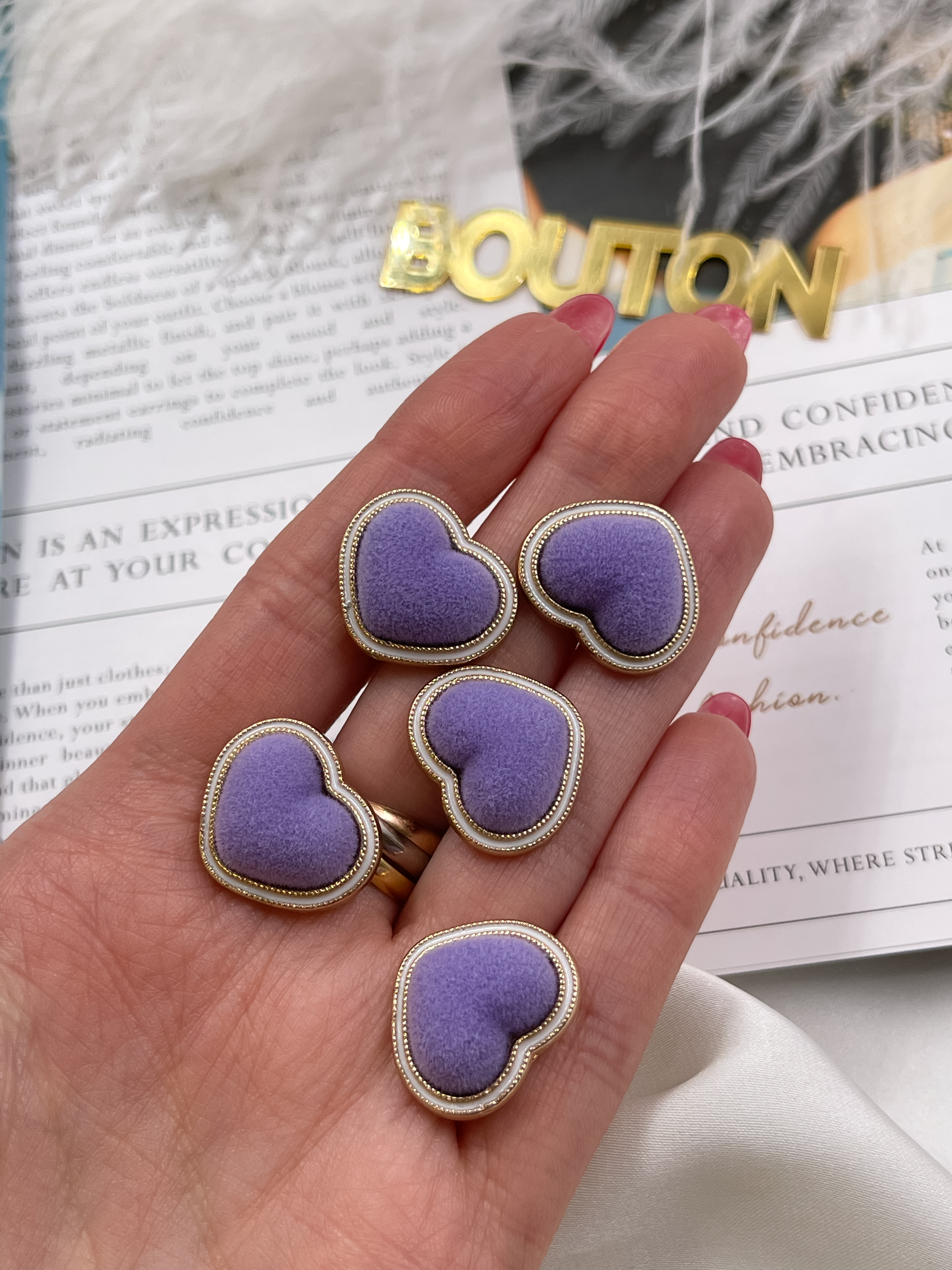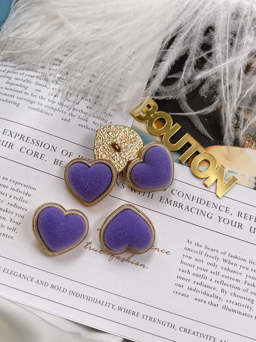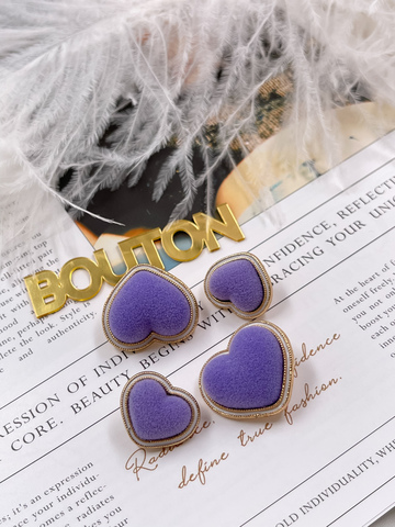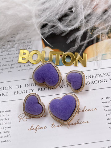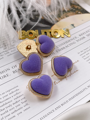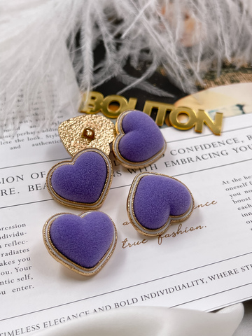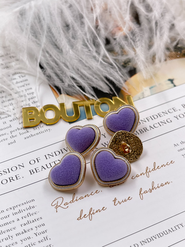 Пуговицы в форме сердца в бархате фиолетового цвета.