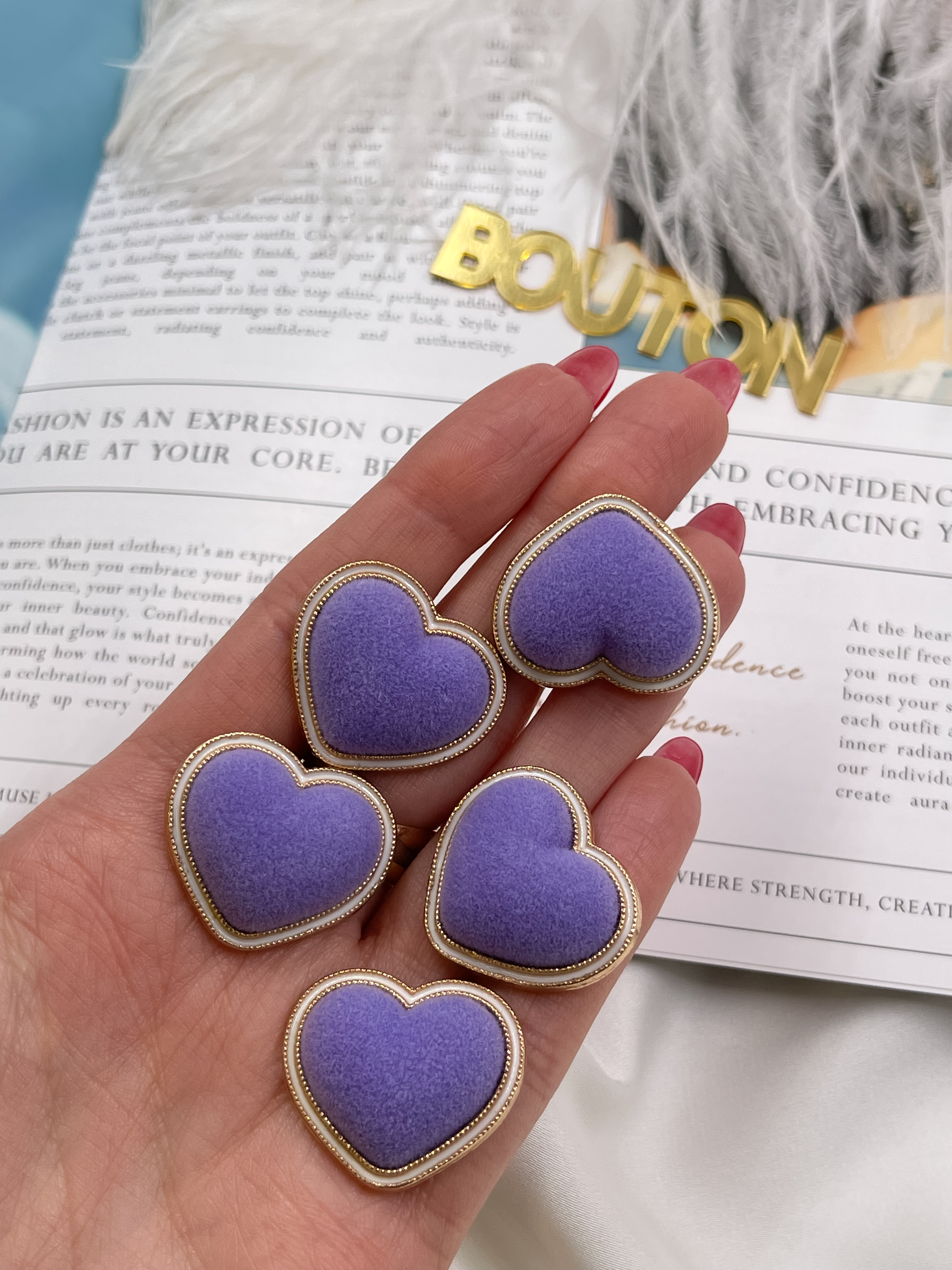 Эти уникальные пуговицы станут изысканным акцентом вашего образа! Воплощение нежности и романтики, они придадут одежде элегантность и шарм. Бархатная поверхность выглядит очень мягко и красиво.