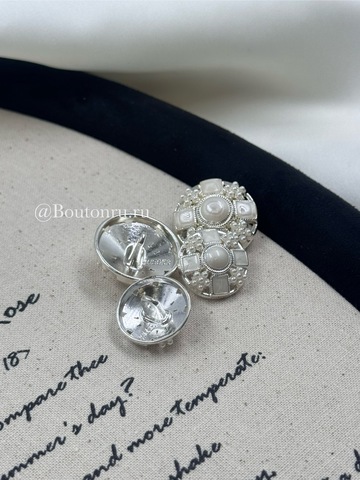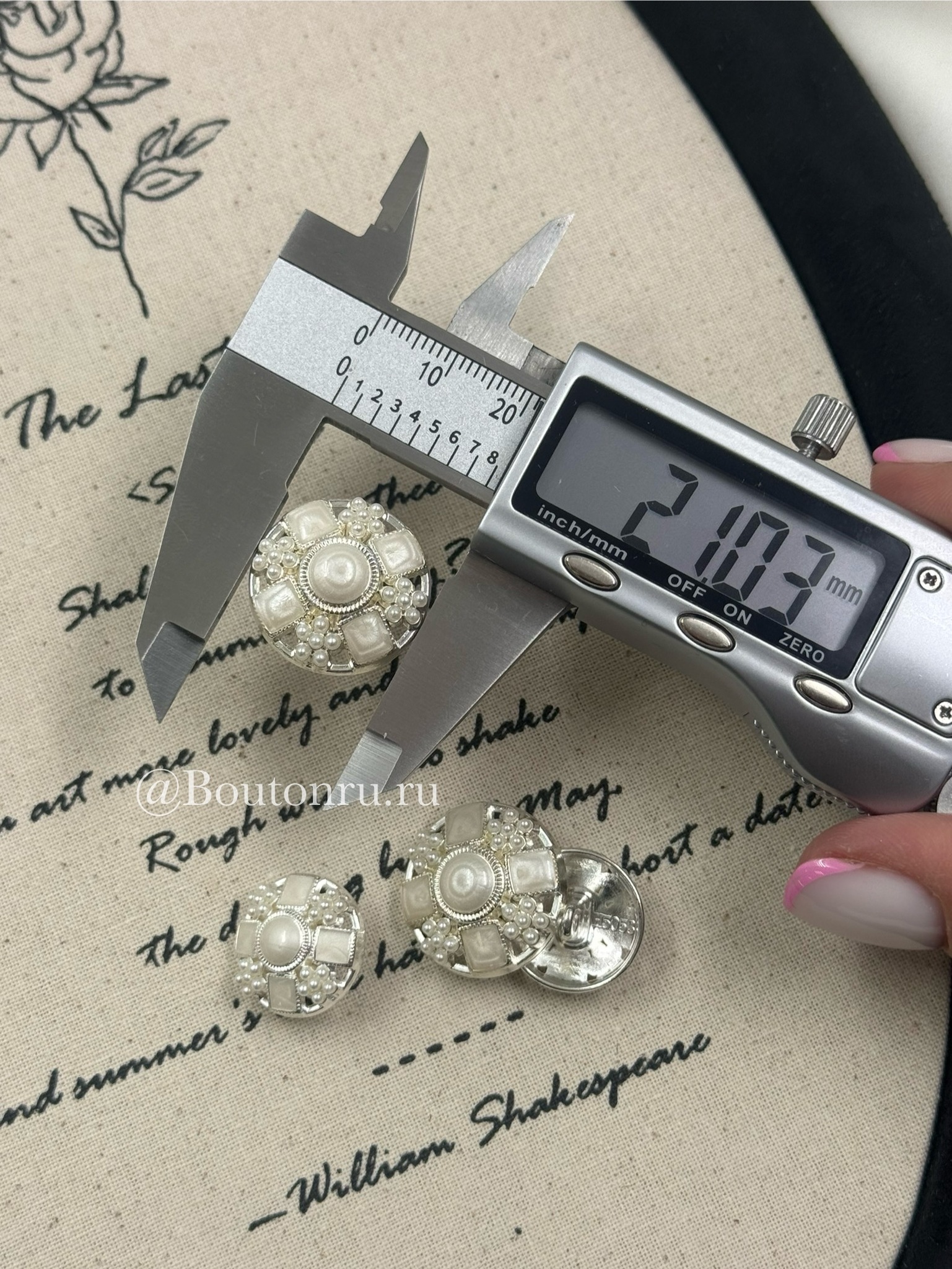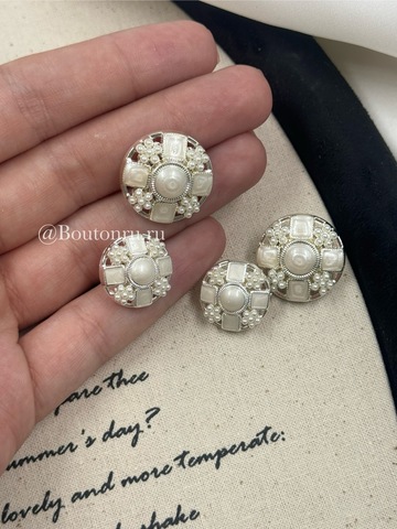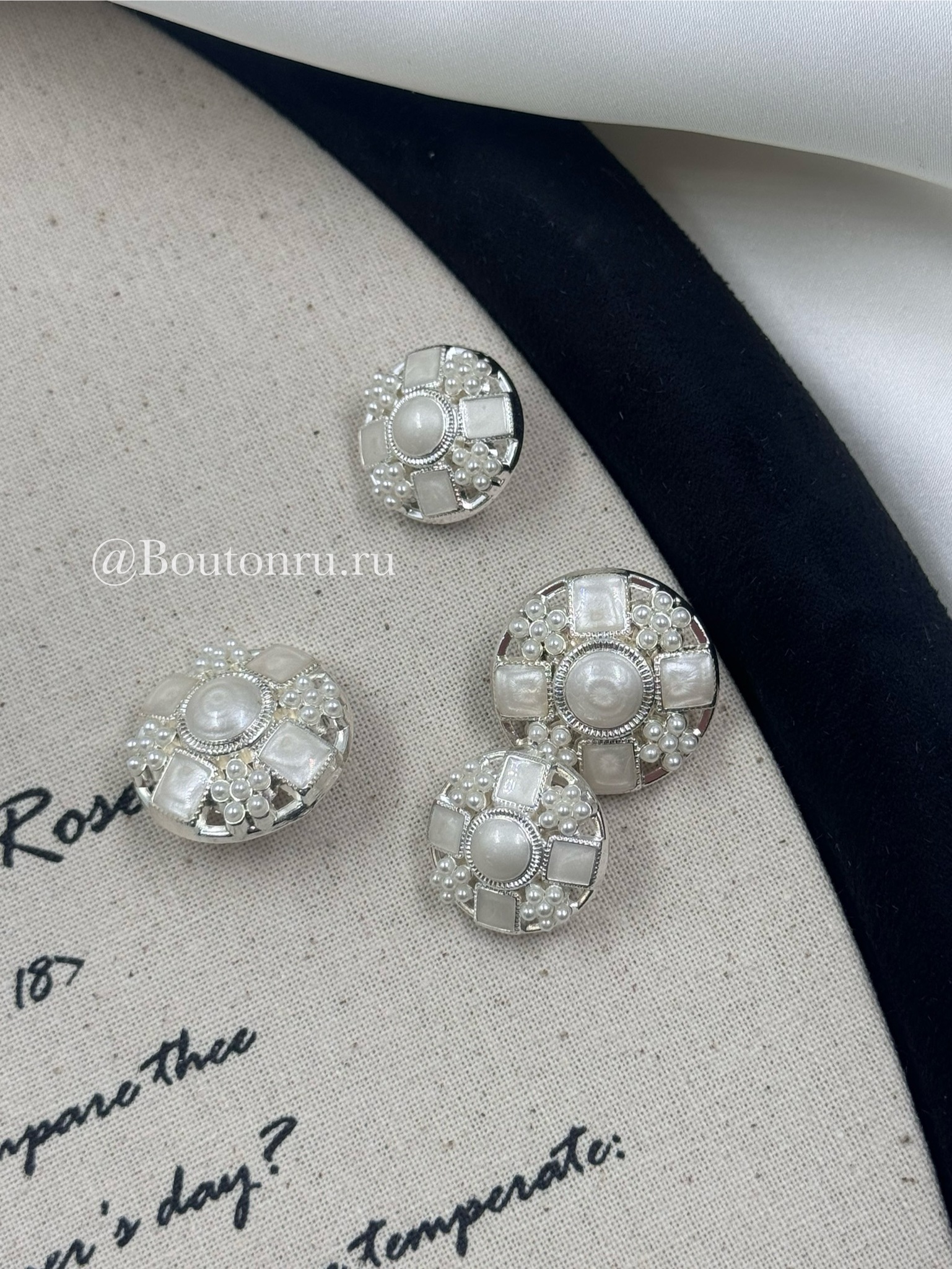 Невероятные пуговки на серебристой основе с квадратными перламутровыми деталями, дополнены эмалью и жемчугом