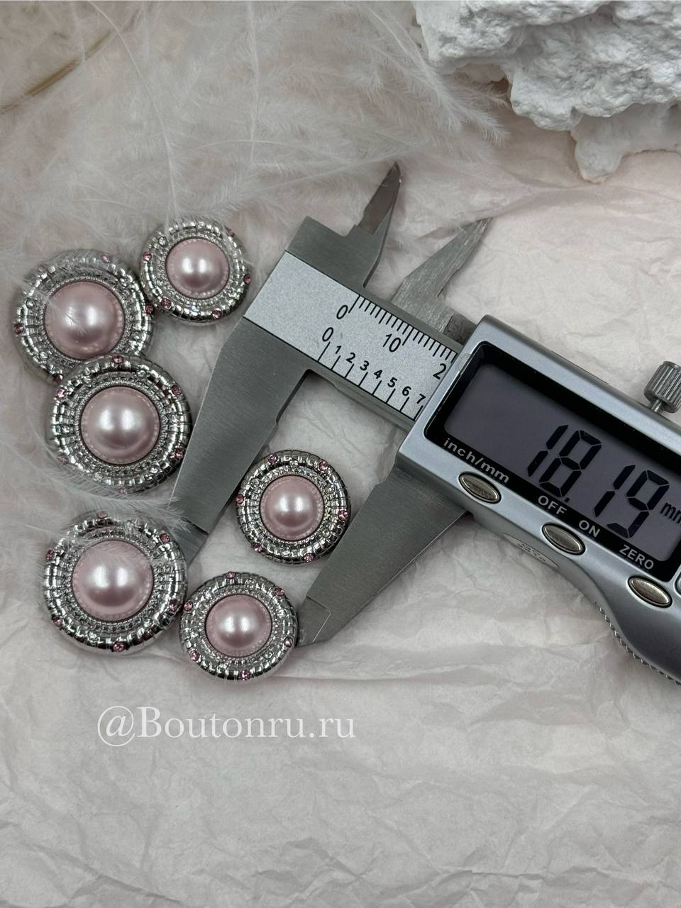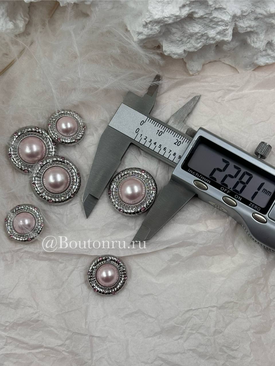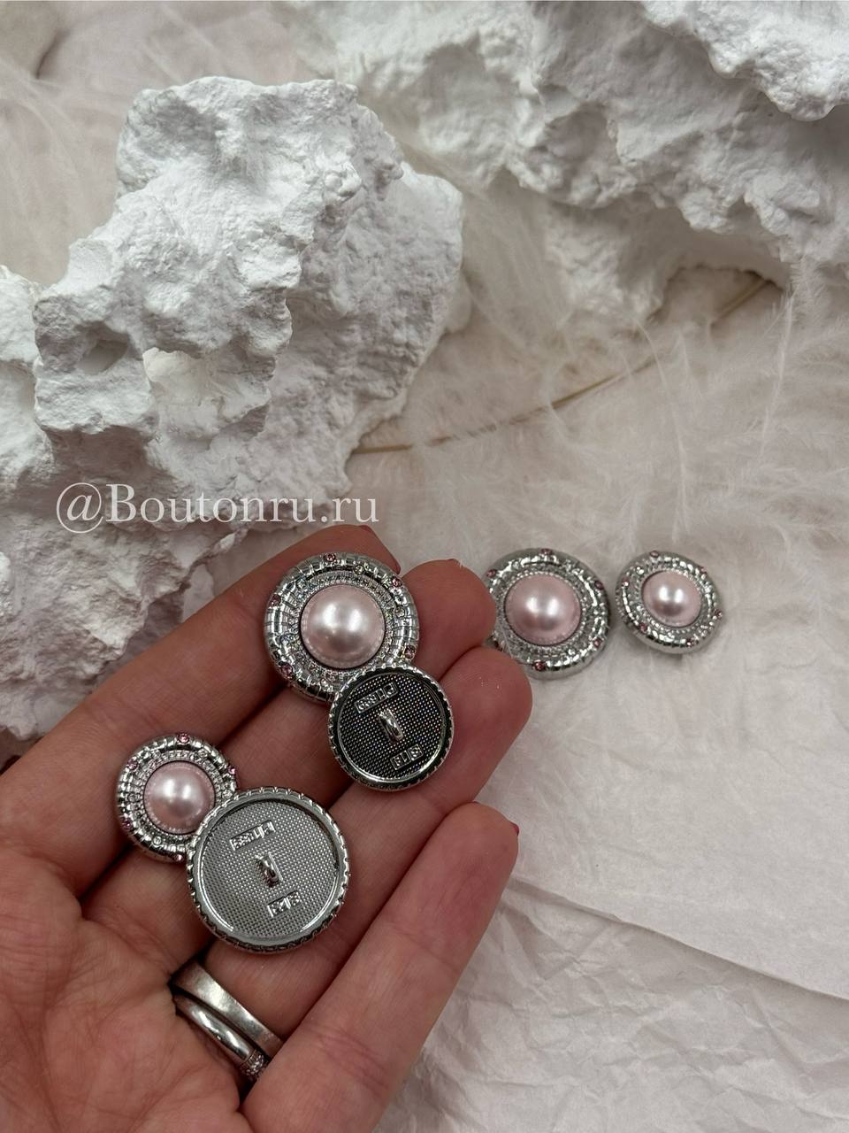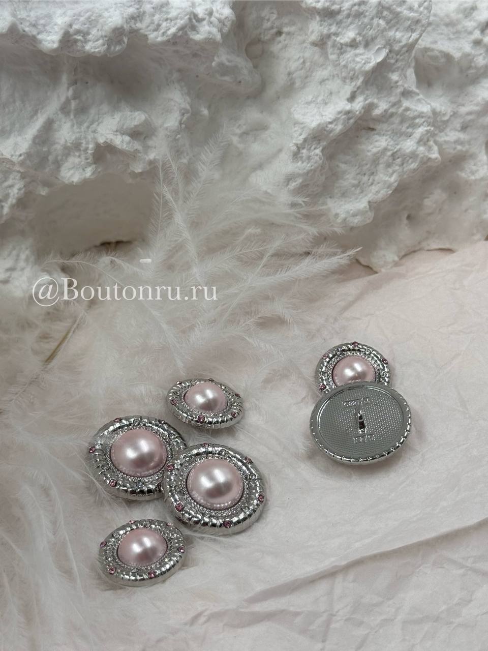 Роскошные пуговицы с нежно-розовым жемчугом в серебристом обрамлении, пуговки дополнены стразами