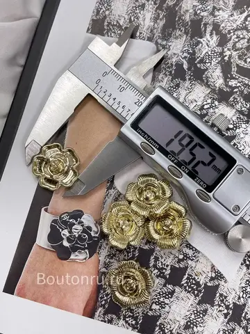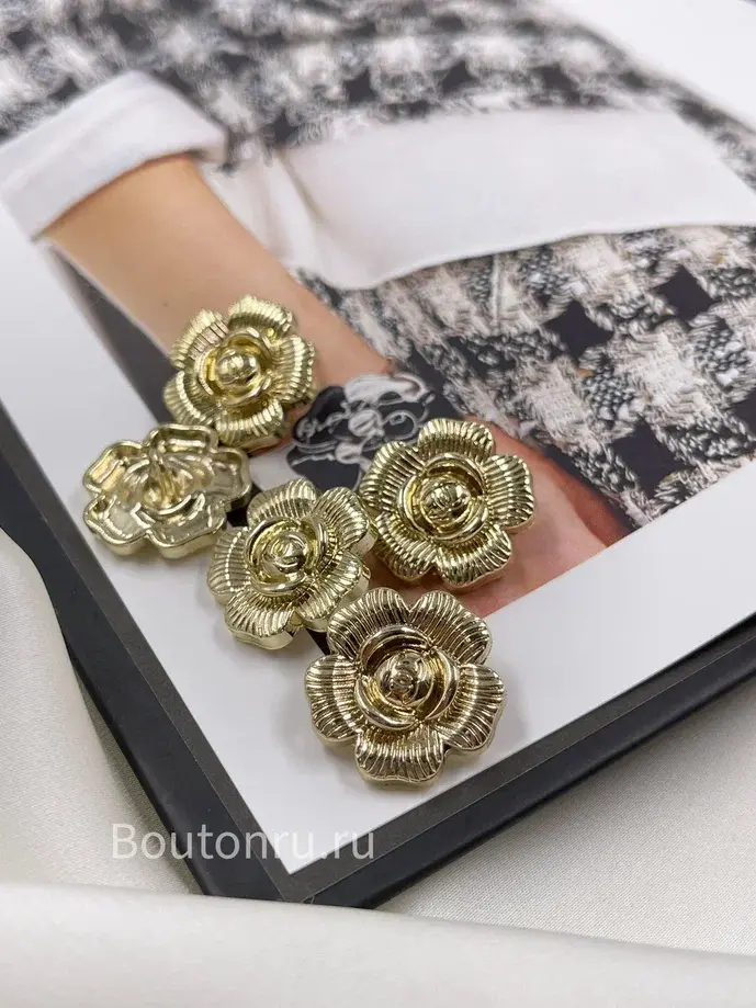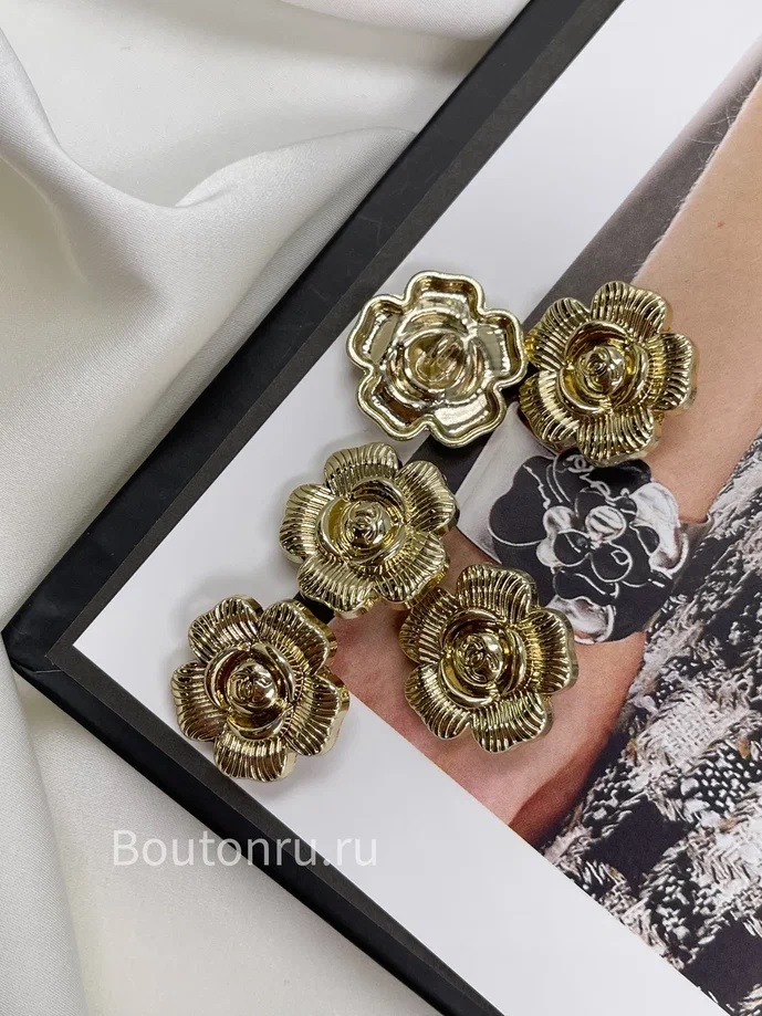 Декоративные пуговицы на ножке в стилистике известного бренда. Выполнены в форме цветка, в золотистом металле