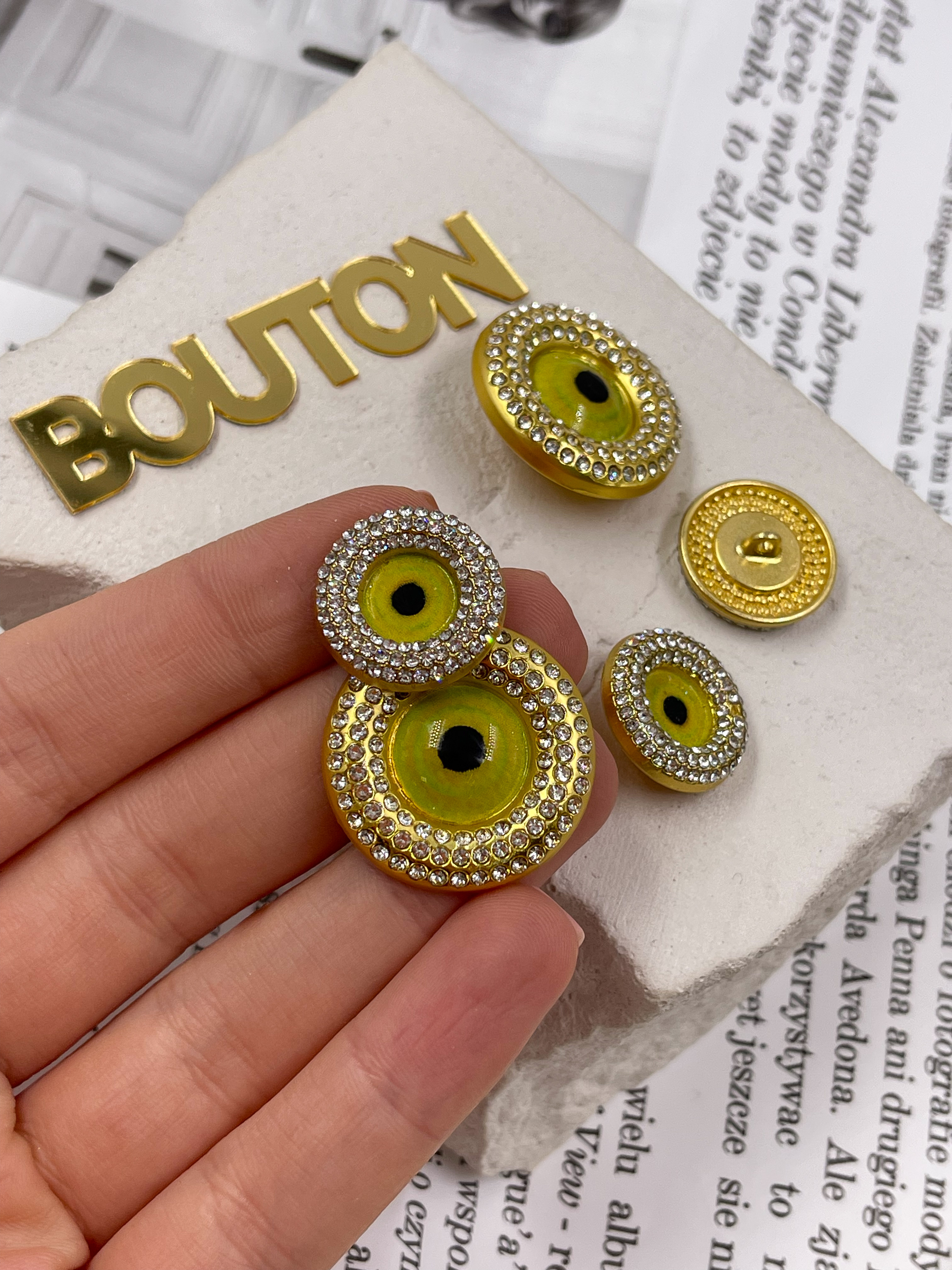 Роскошные круглые пуговицы "Глаз" в стразах