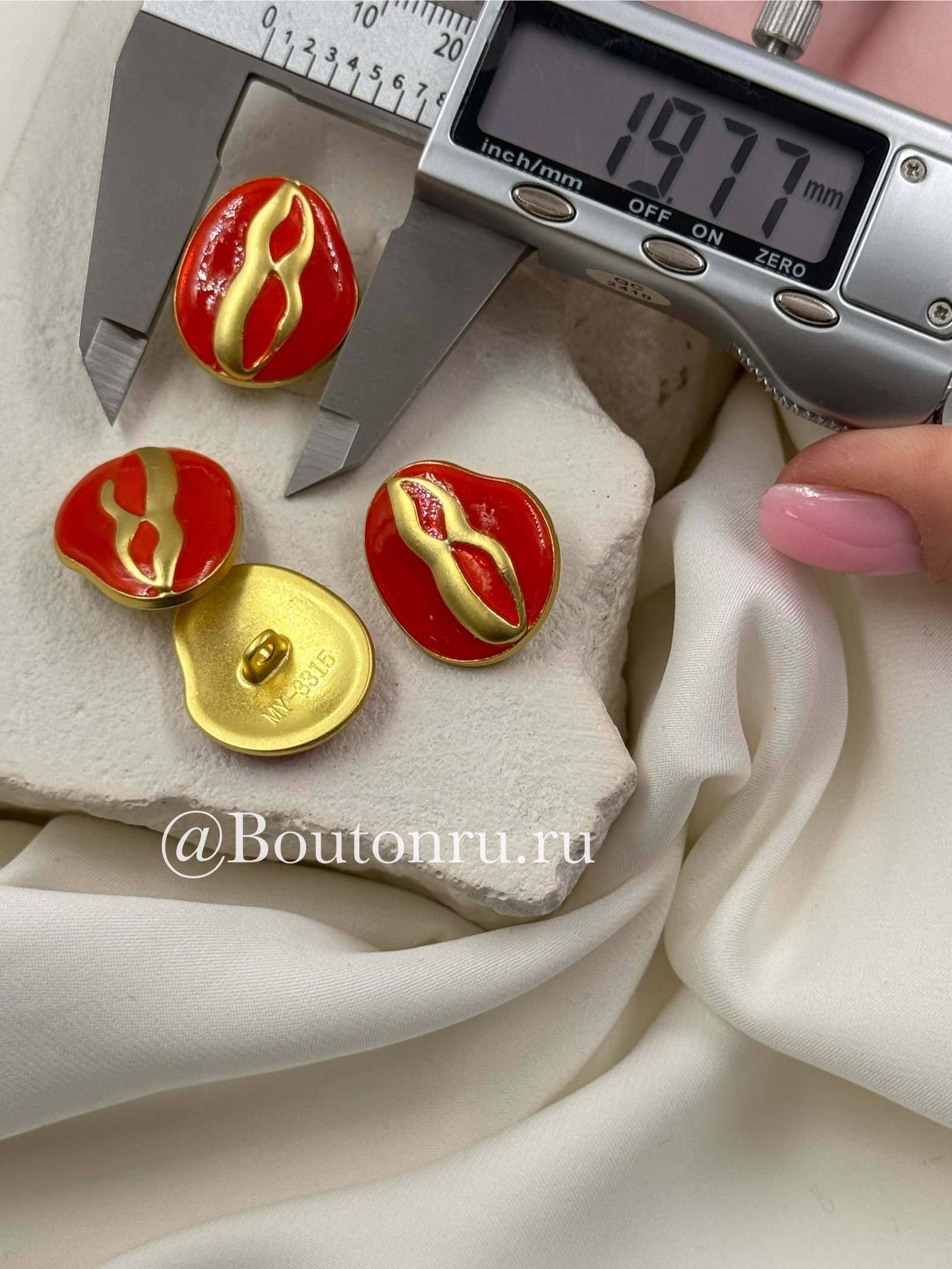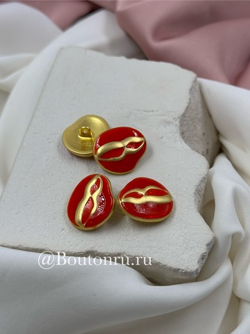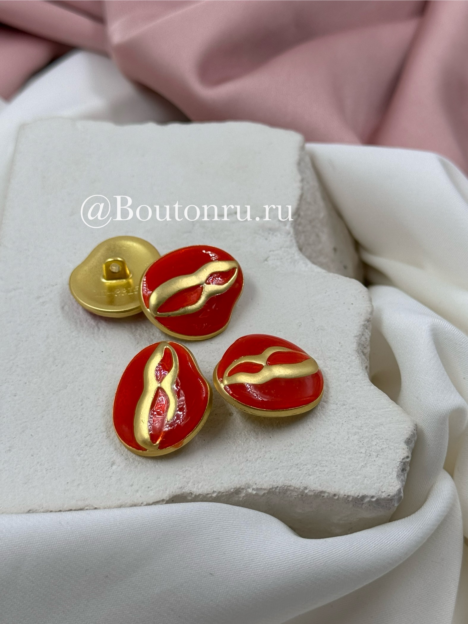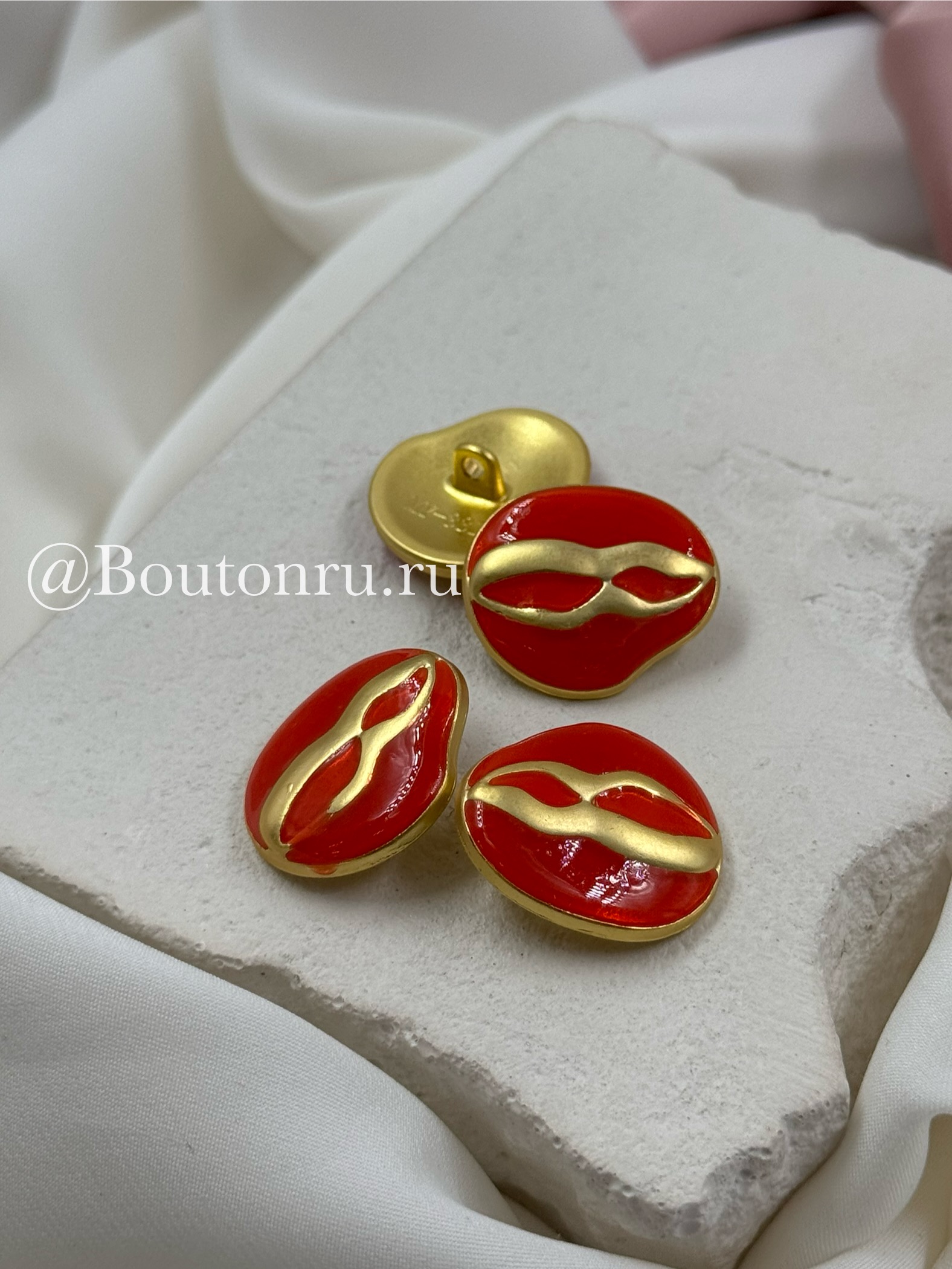 Пуговицы Скиап. золотистые с терракотовой (красной /оранжевой ) эмалью "Губы", скидка