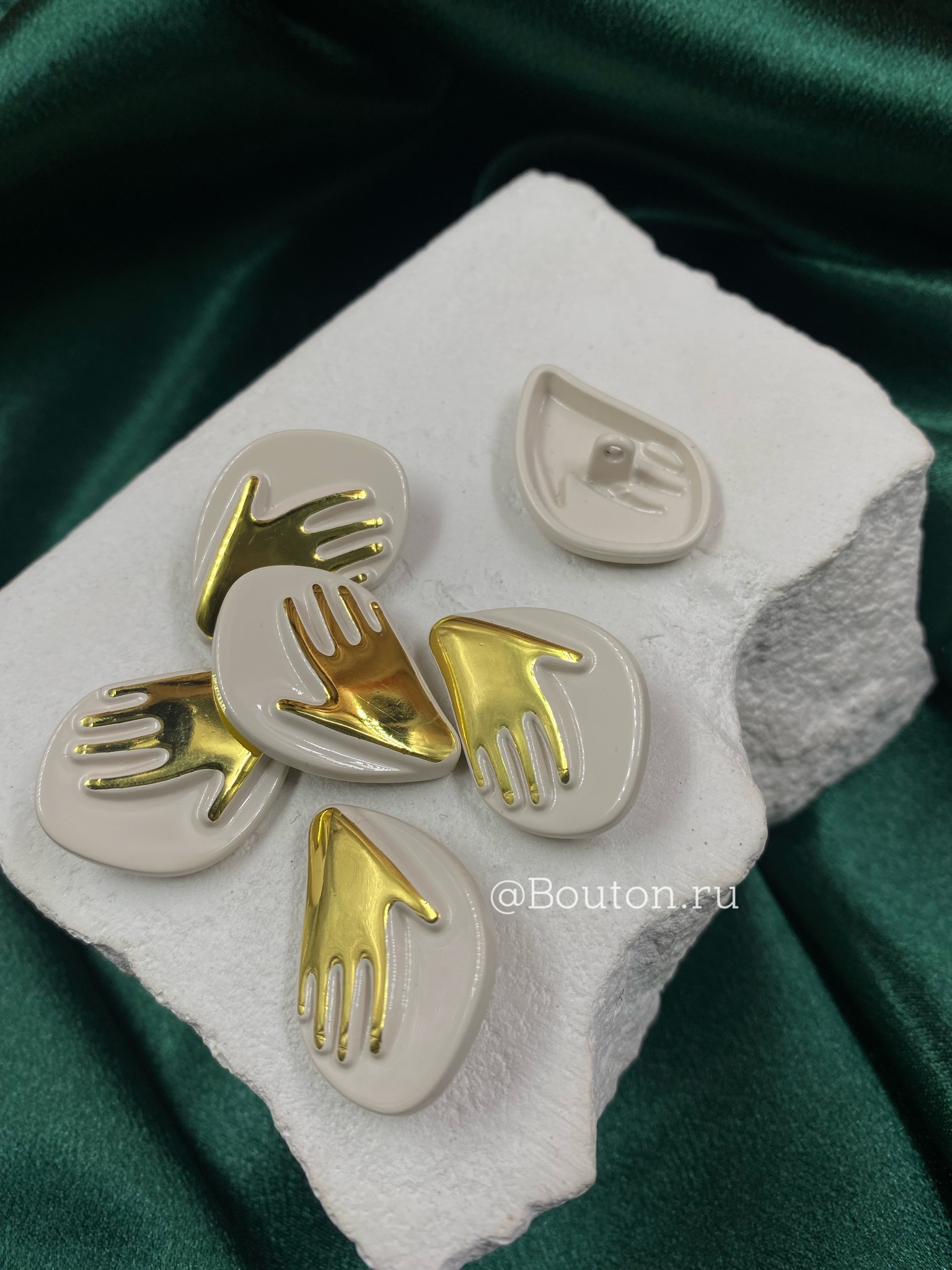 Пуговицы Скиапар. глянцевая золотистая "Ладонь" кремово-бежевая эмаль