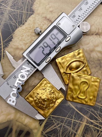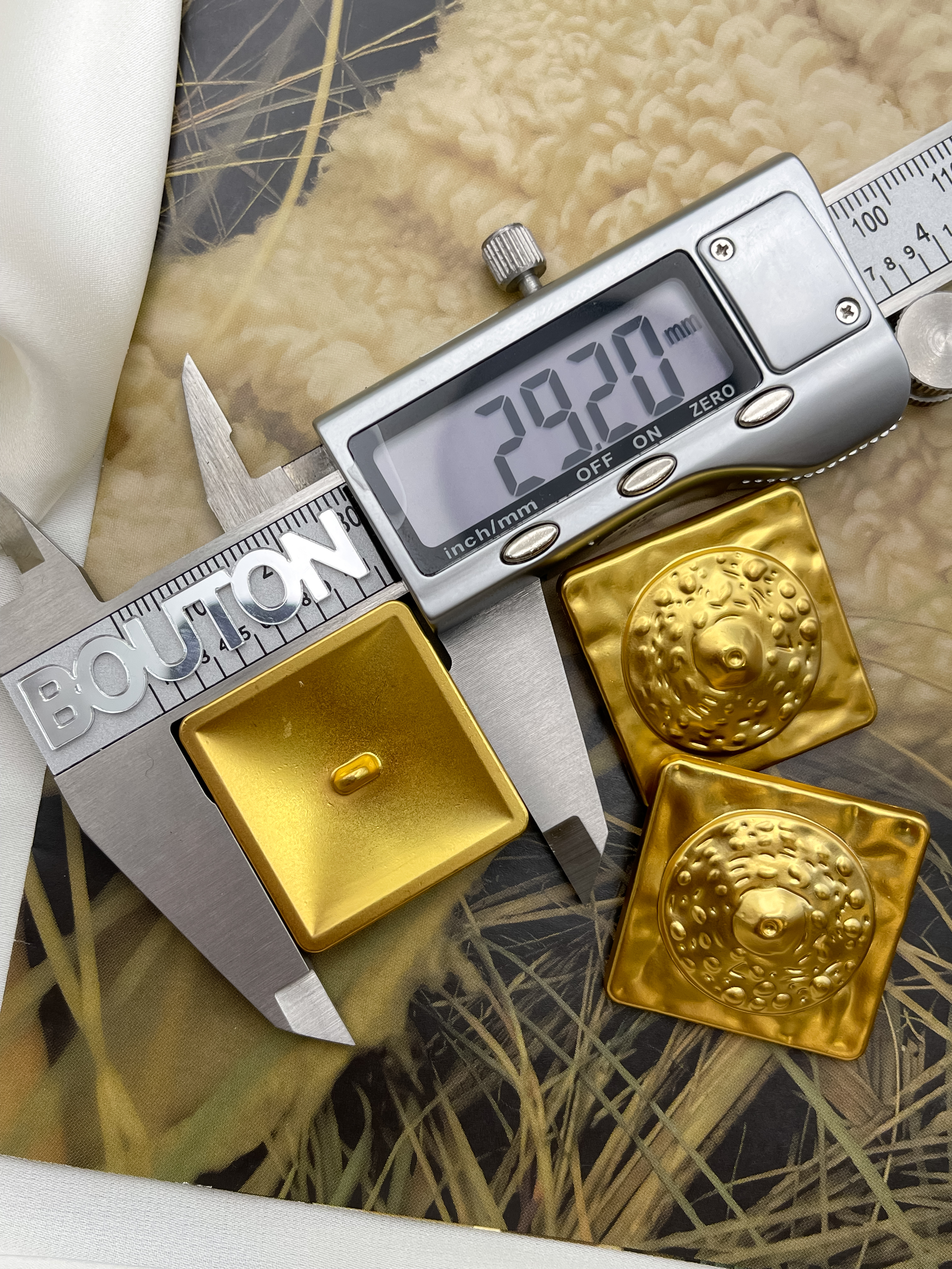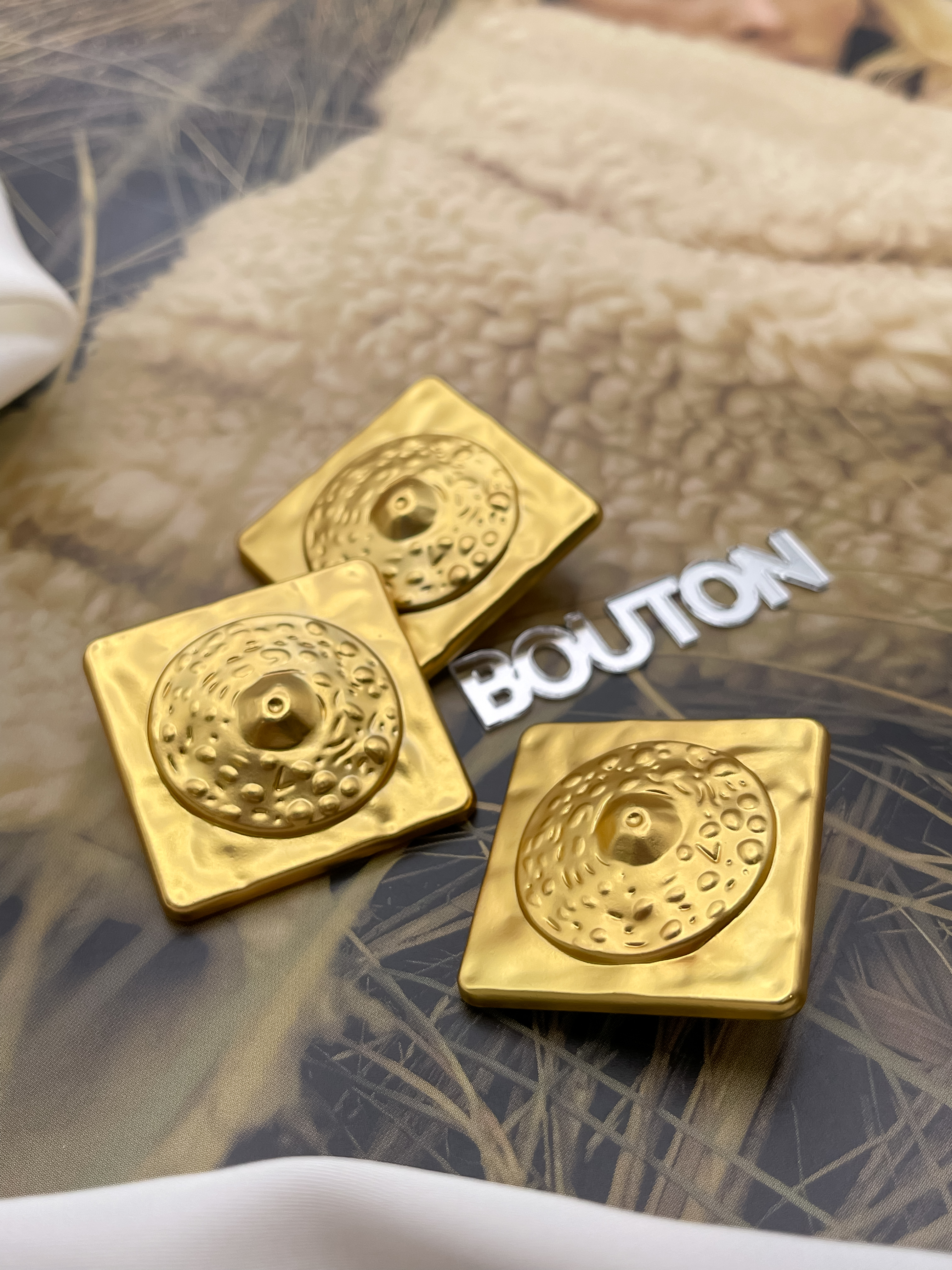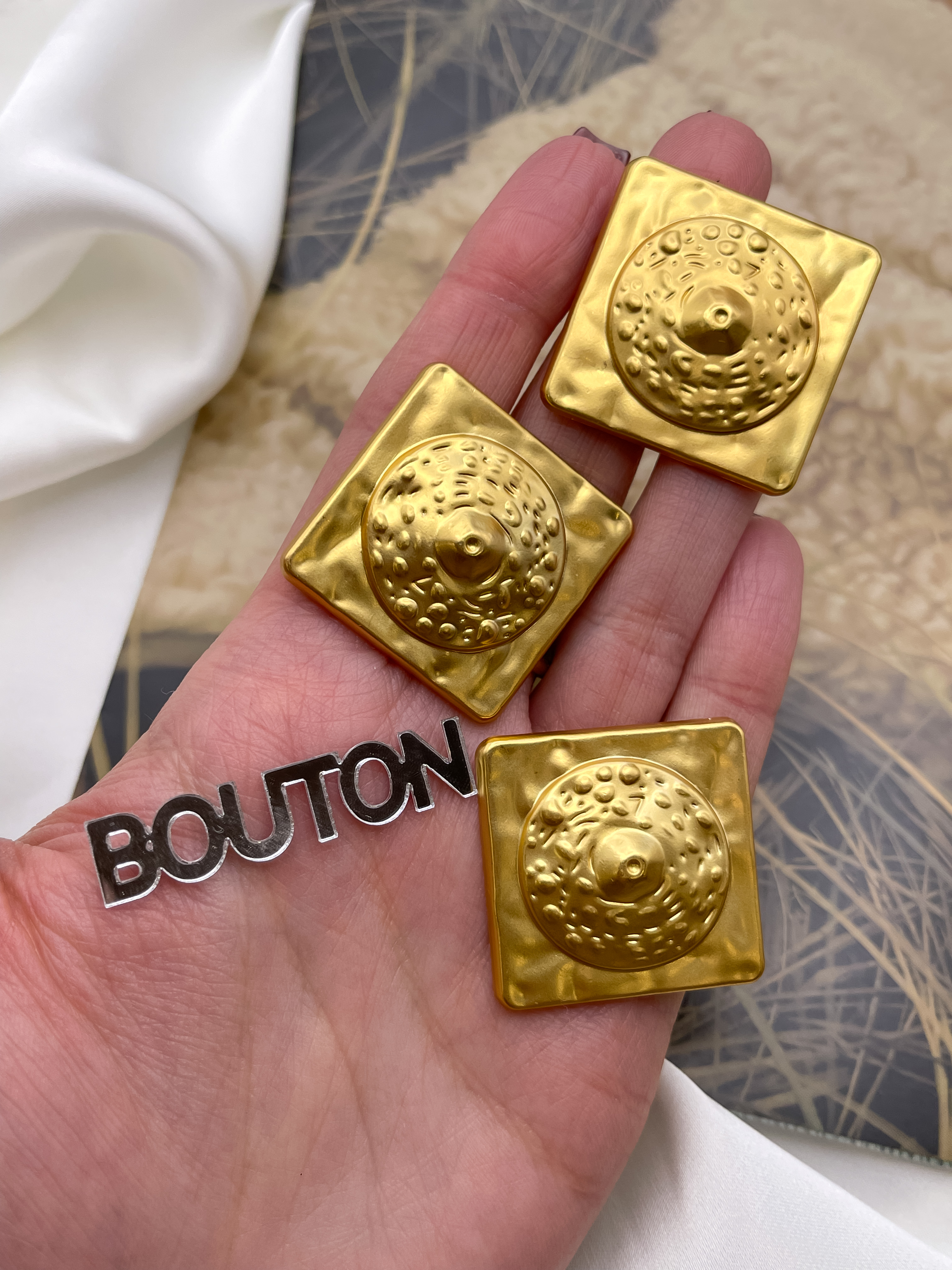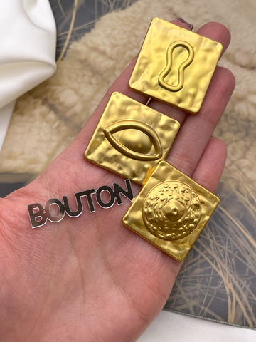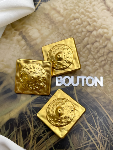 Рельефные пуговицы из золотистого металла в стиле известного бренда
