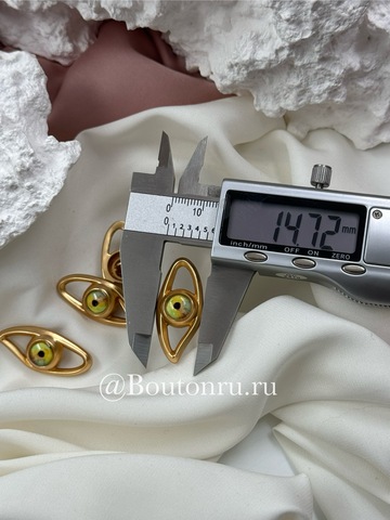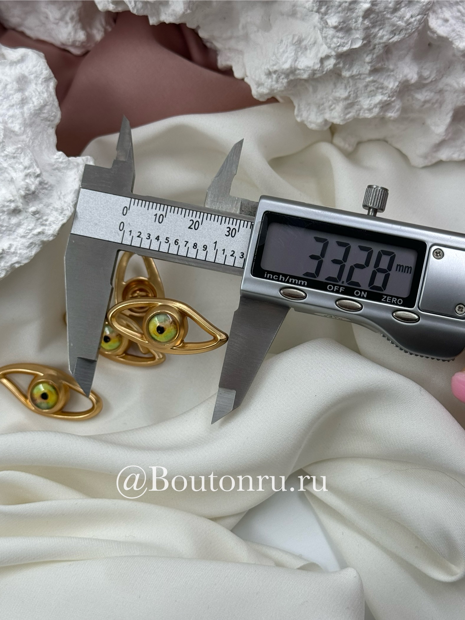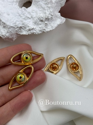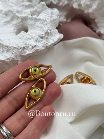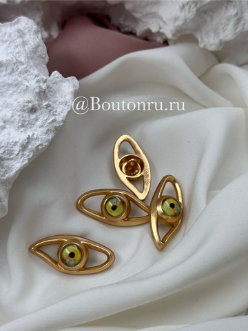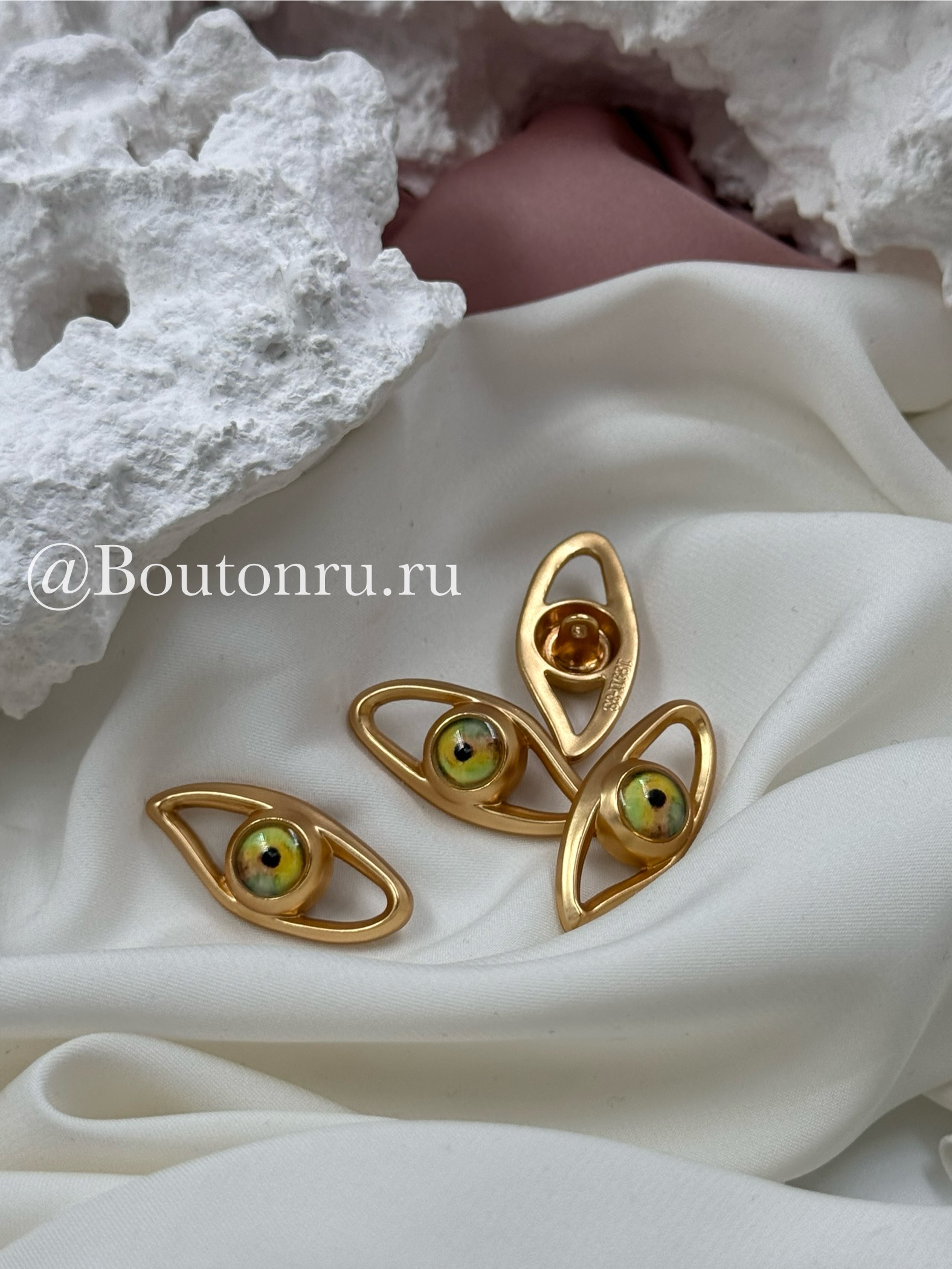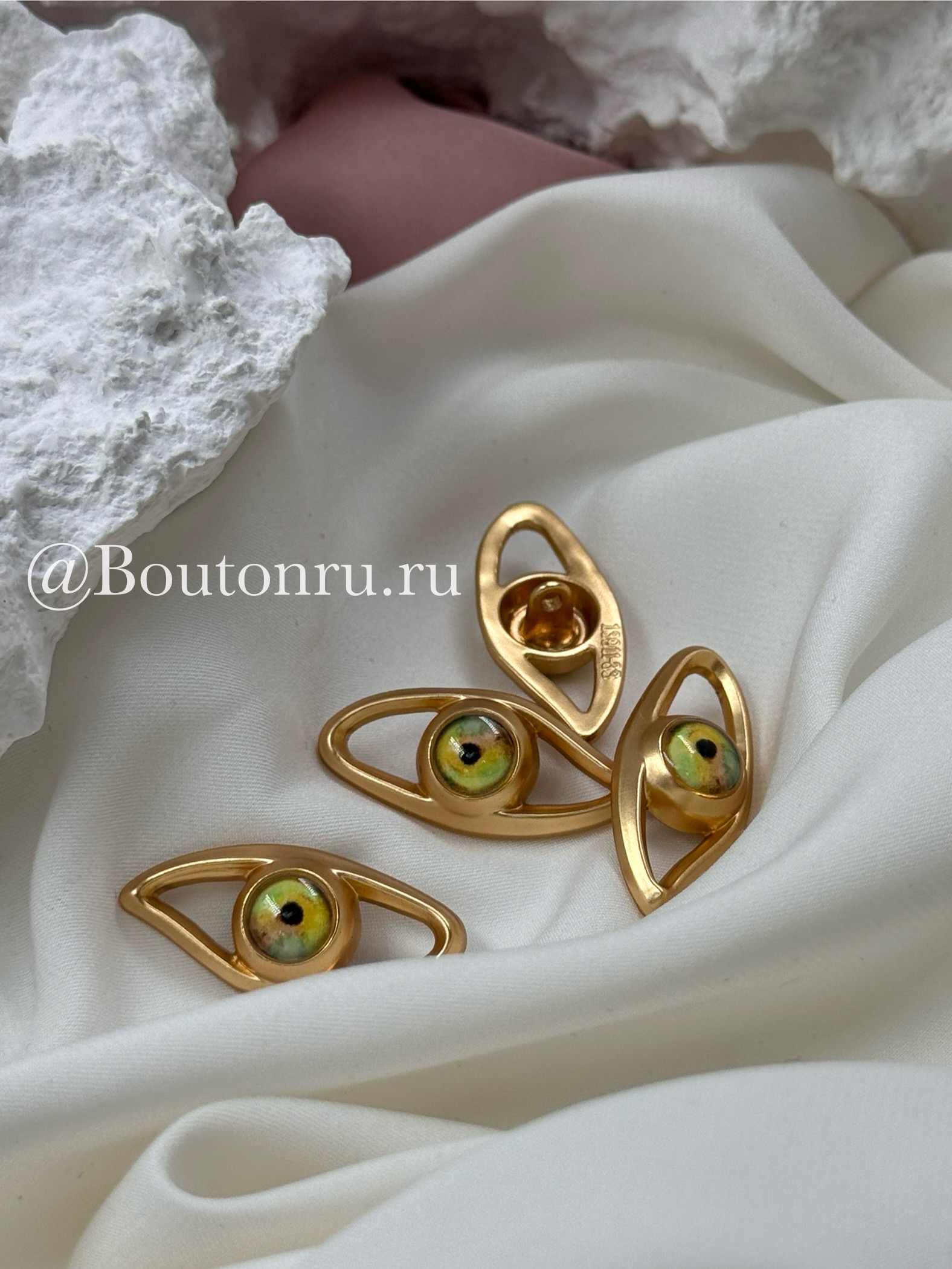 Пуговицы в форме глаза с желто-зеленым зрачком матовое золото