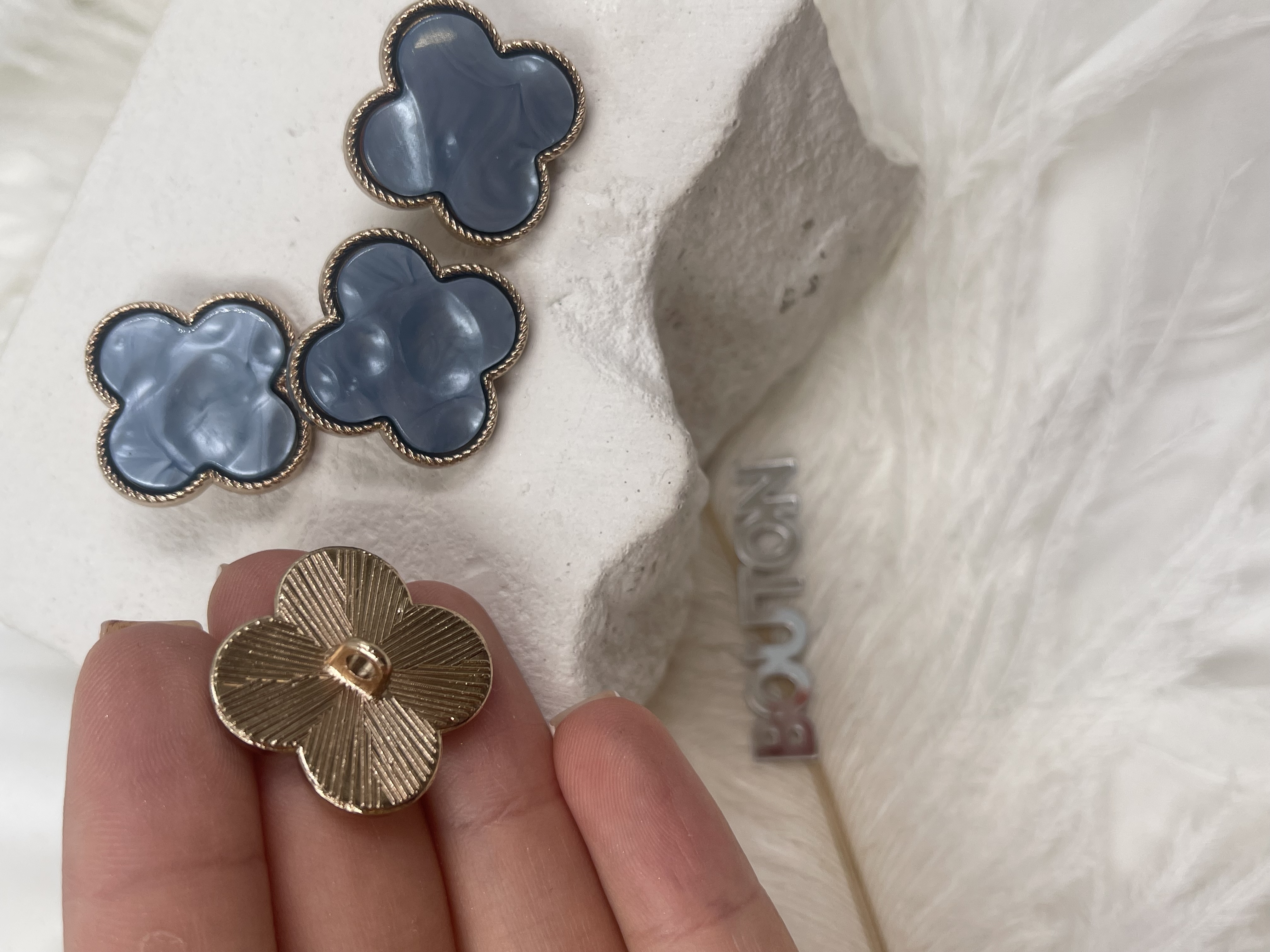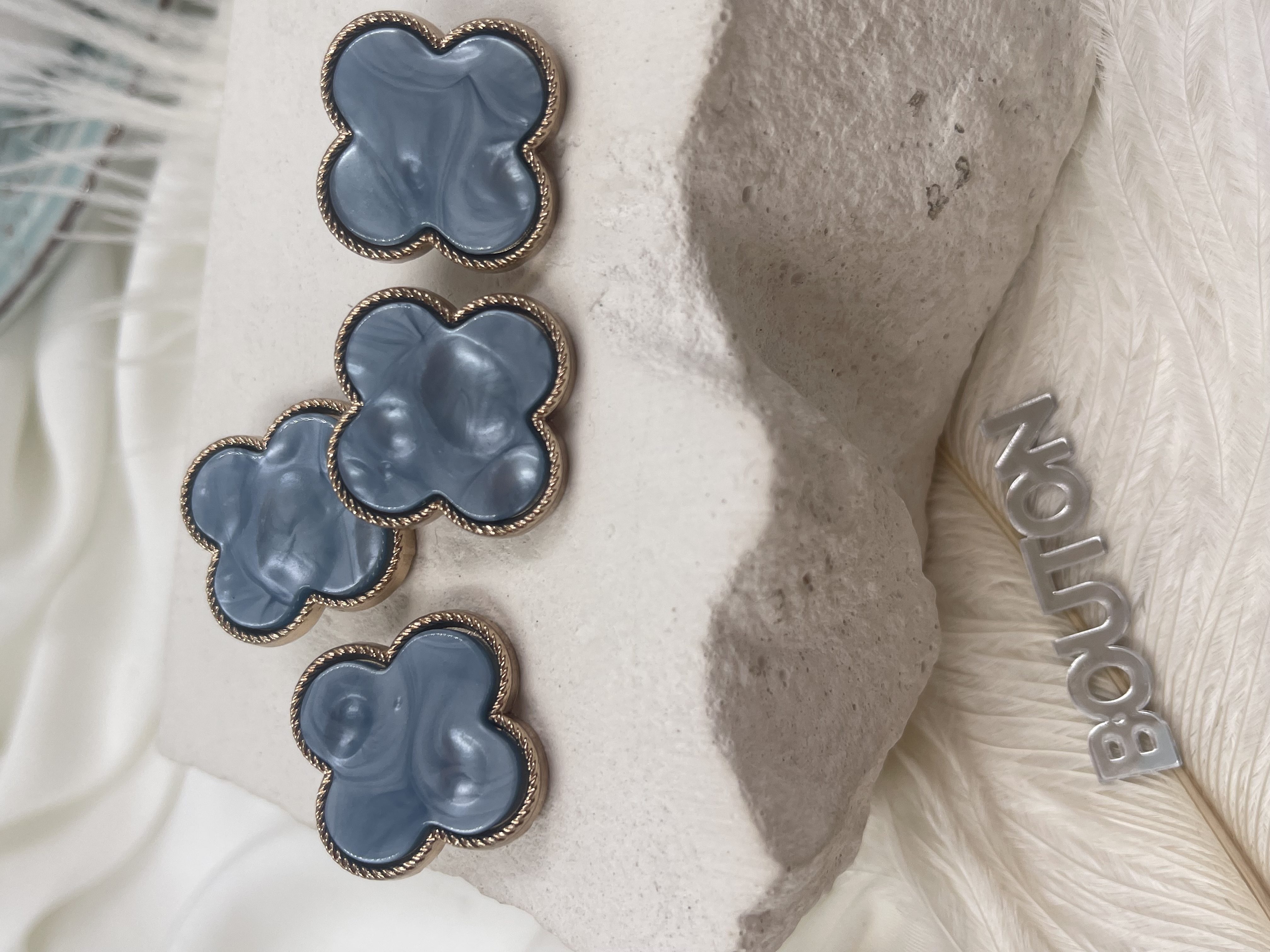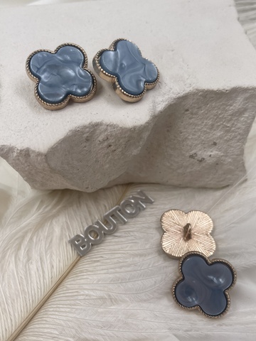 Пуговицы в форме цветка четырехлистника с голубым перламутром