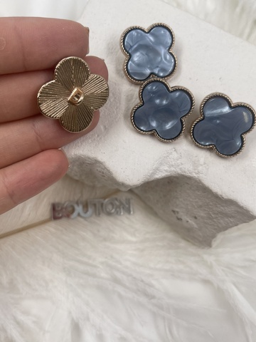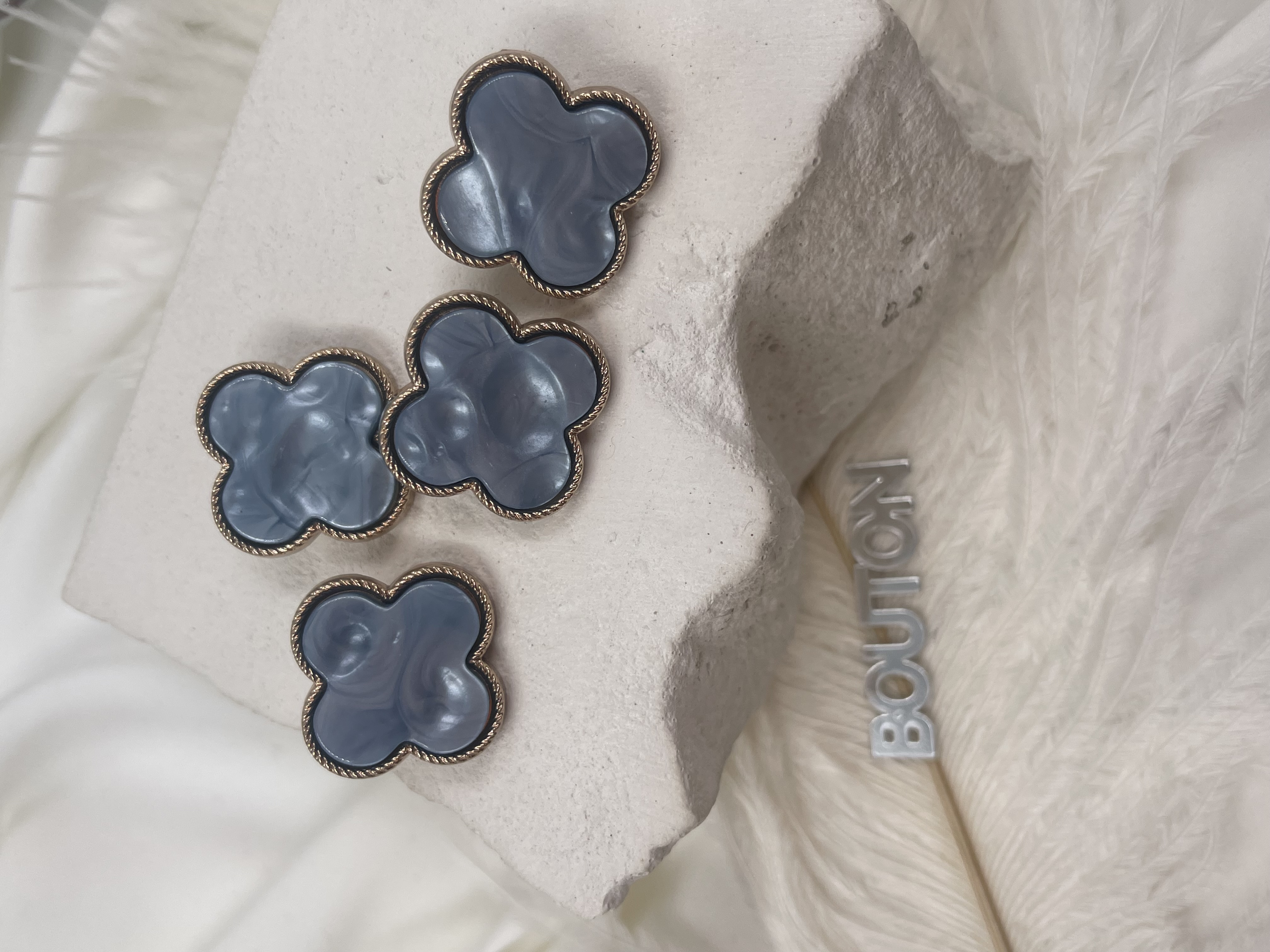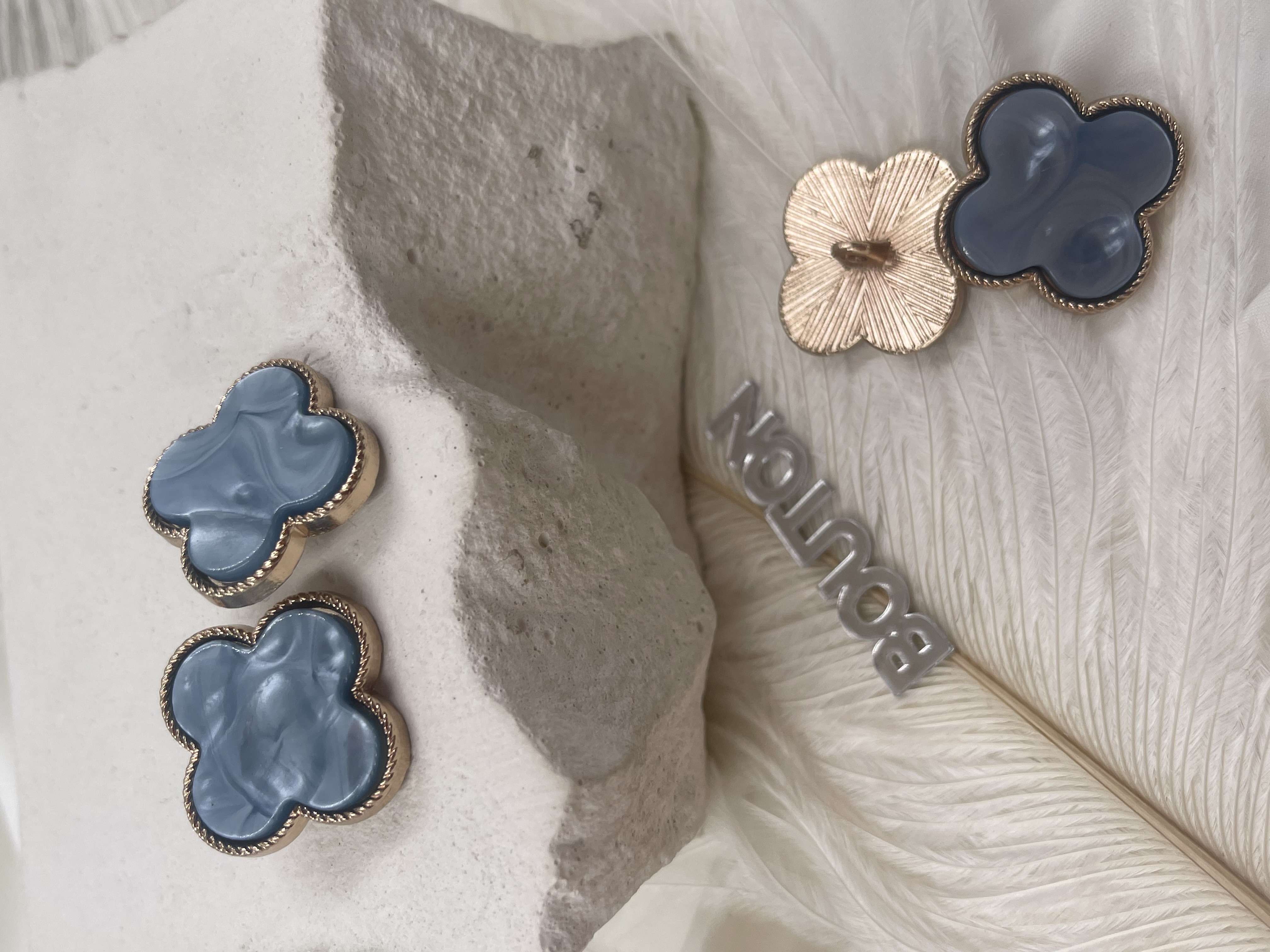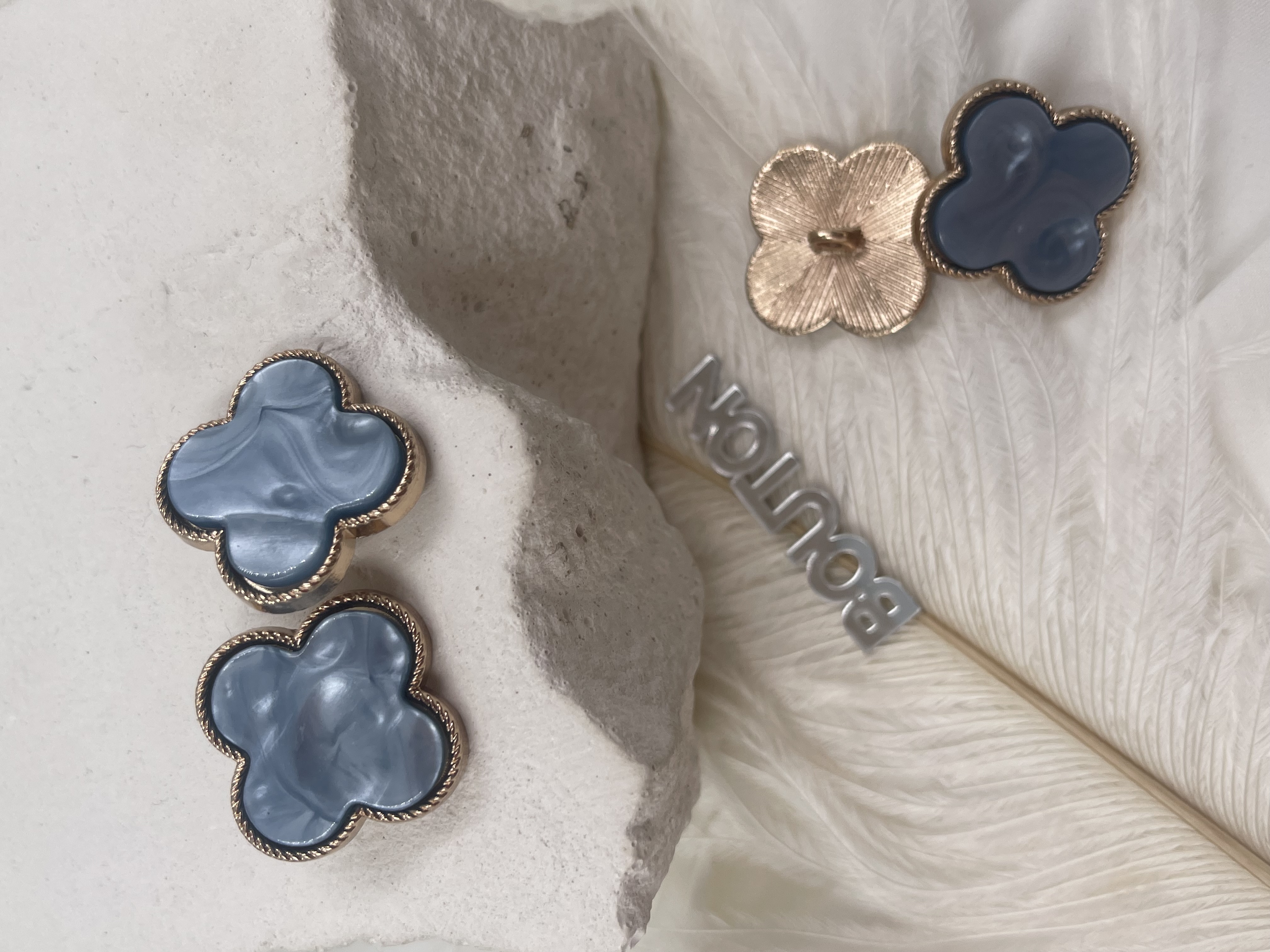 Пуговицы в форме цветка четырехлистника с голубым перламутром