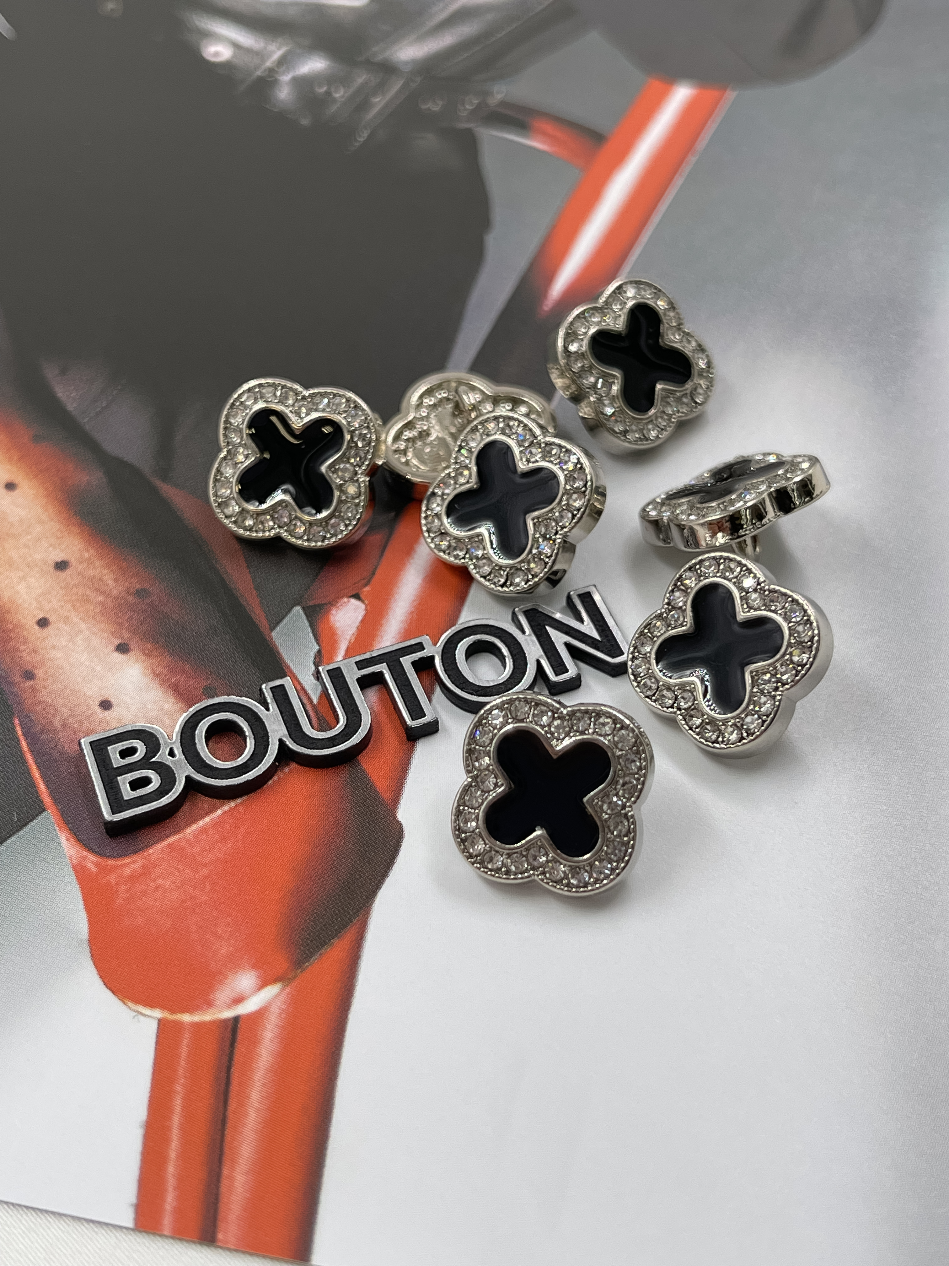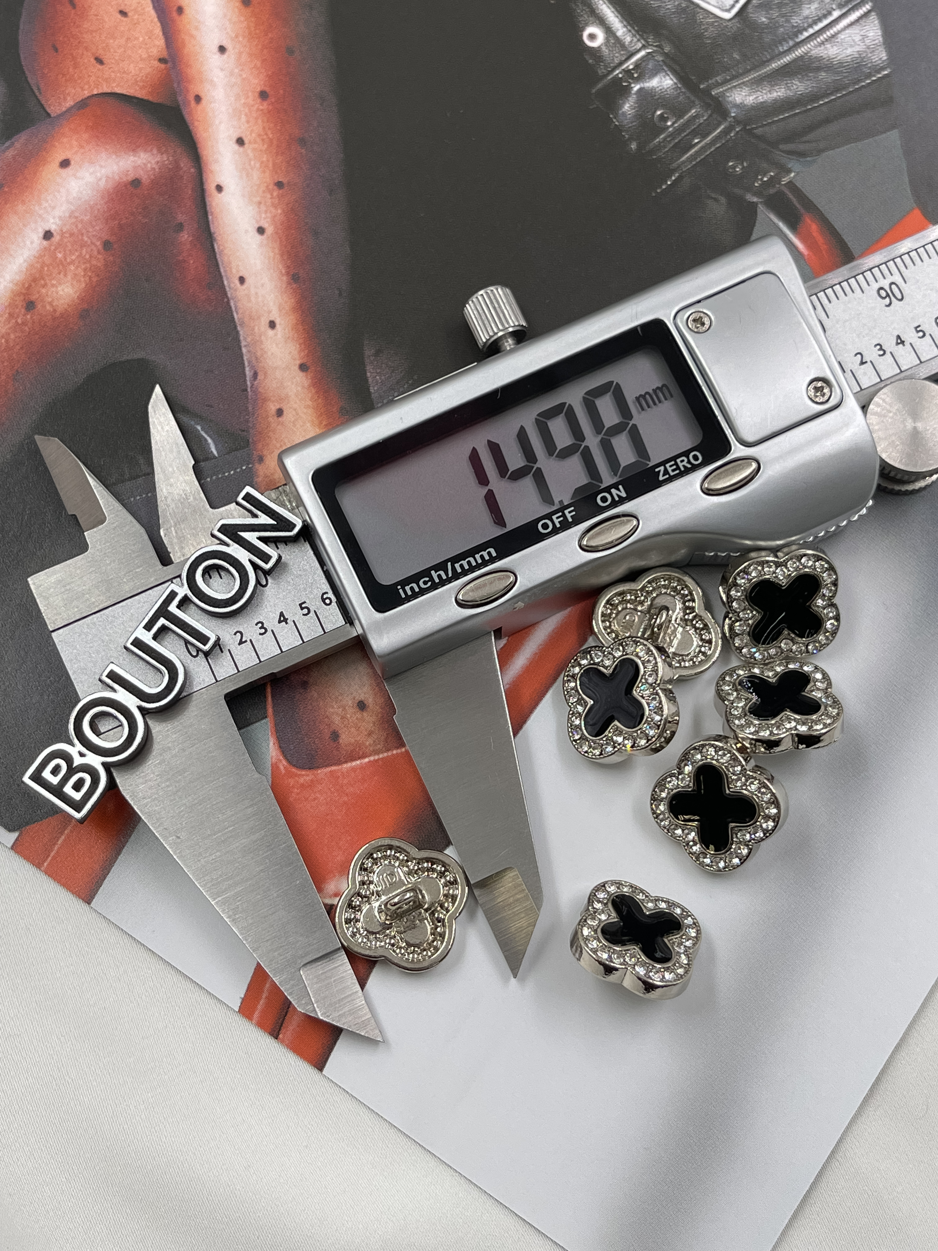 Пуговицы в форме четырехлистника в обрамлении из страз.