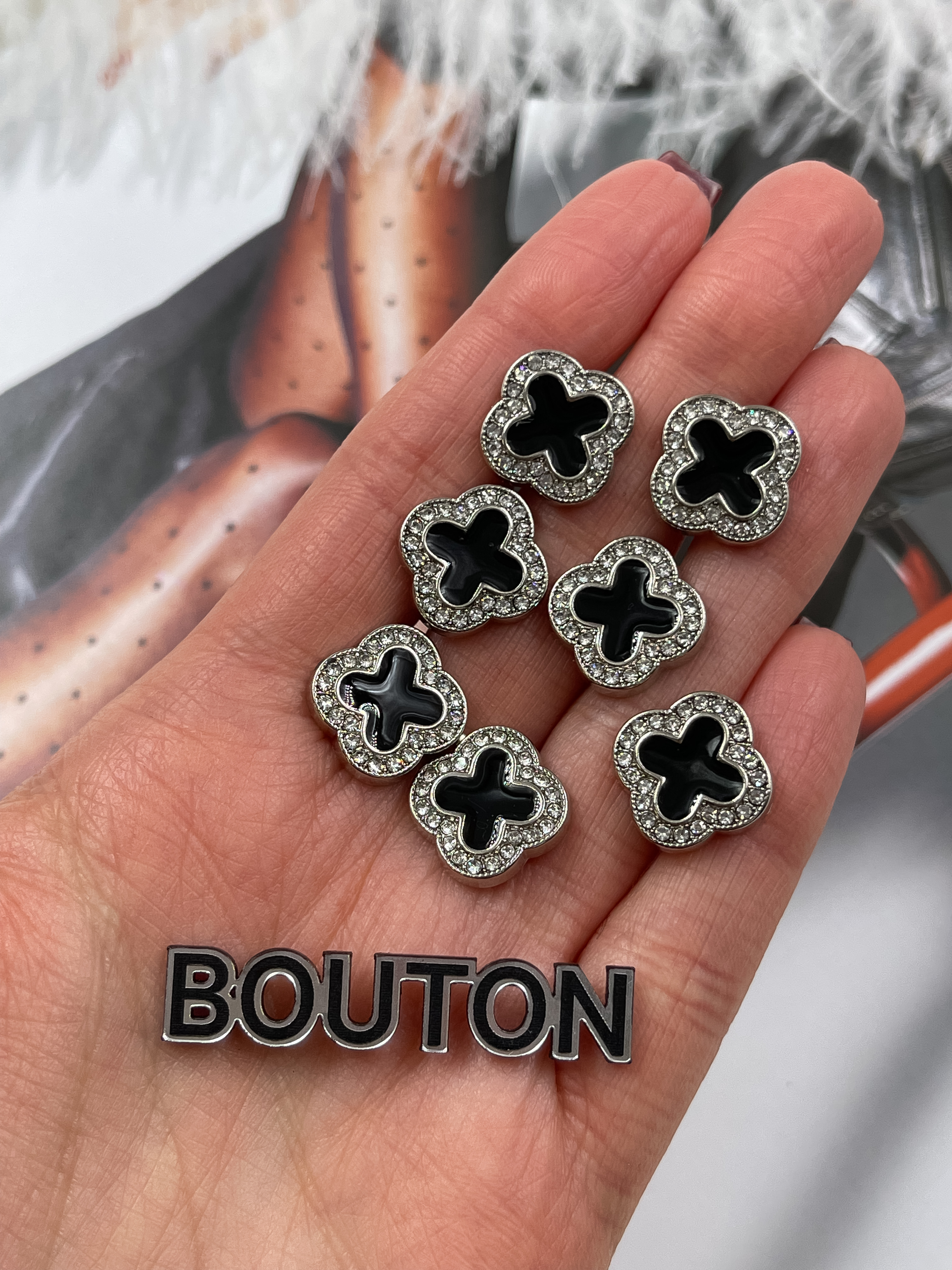 Пуговицы цветок черные серебро со стразами в стиле ван кл