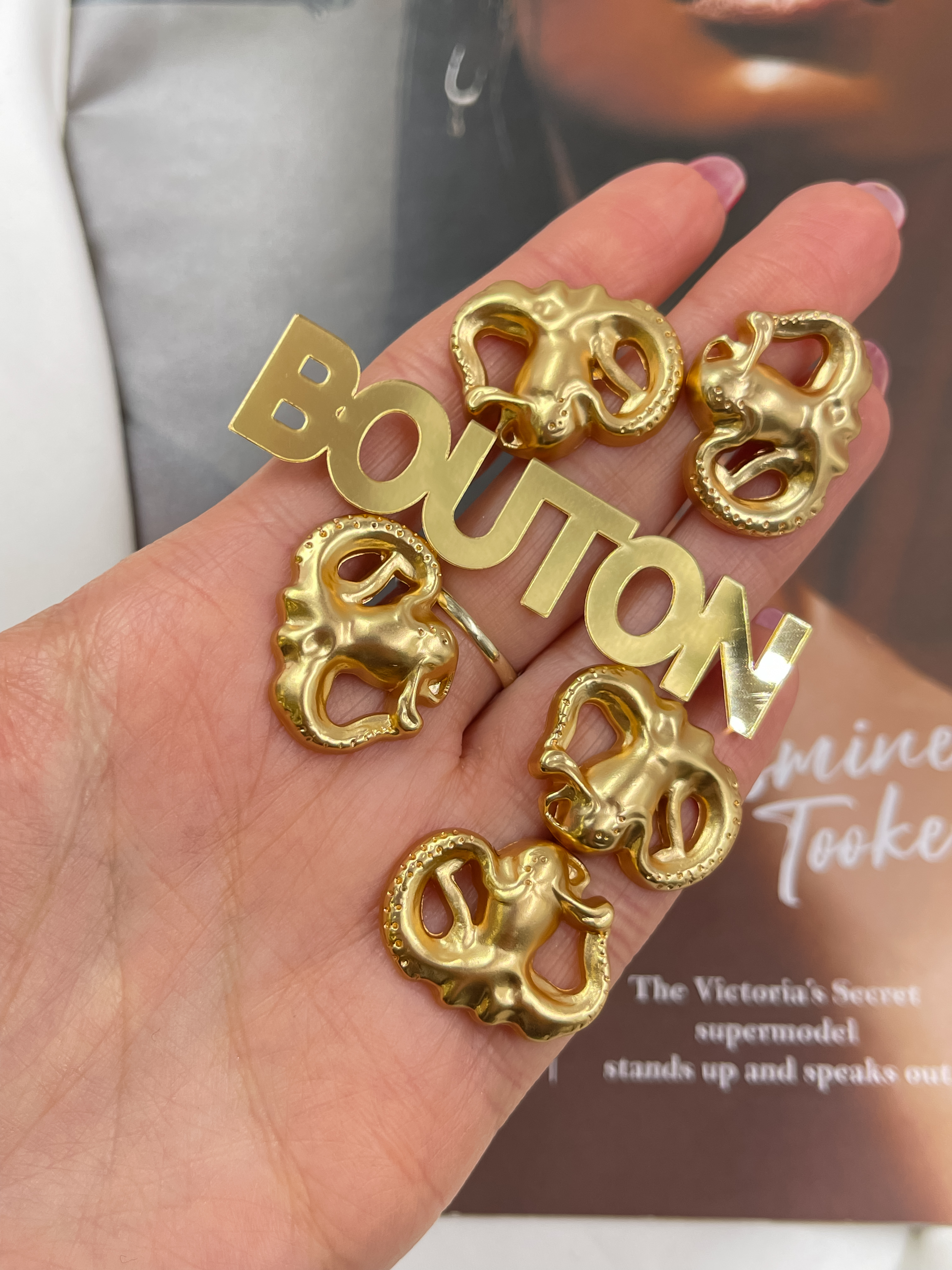 Пуговицы в форме осьминога из золотистого металла