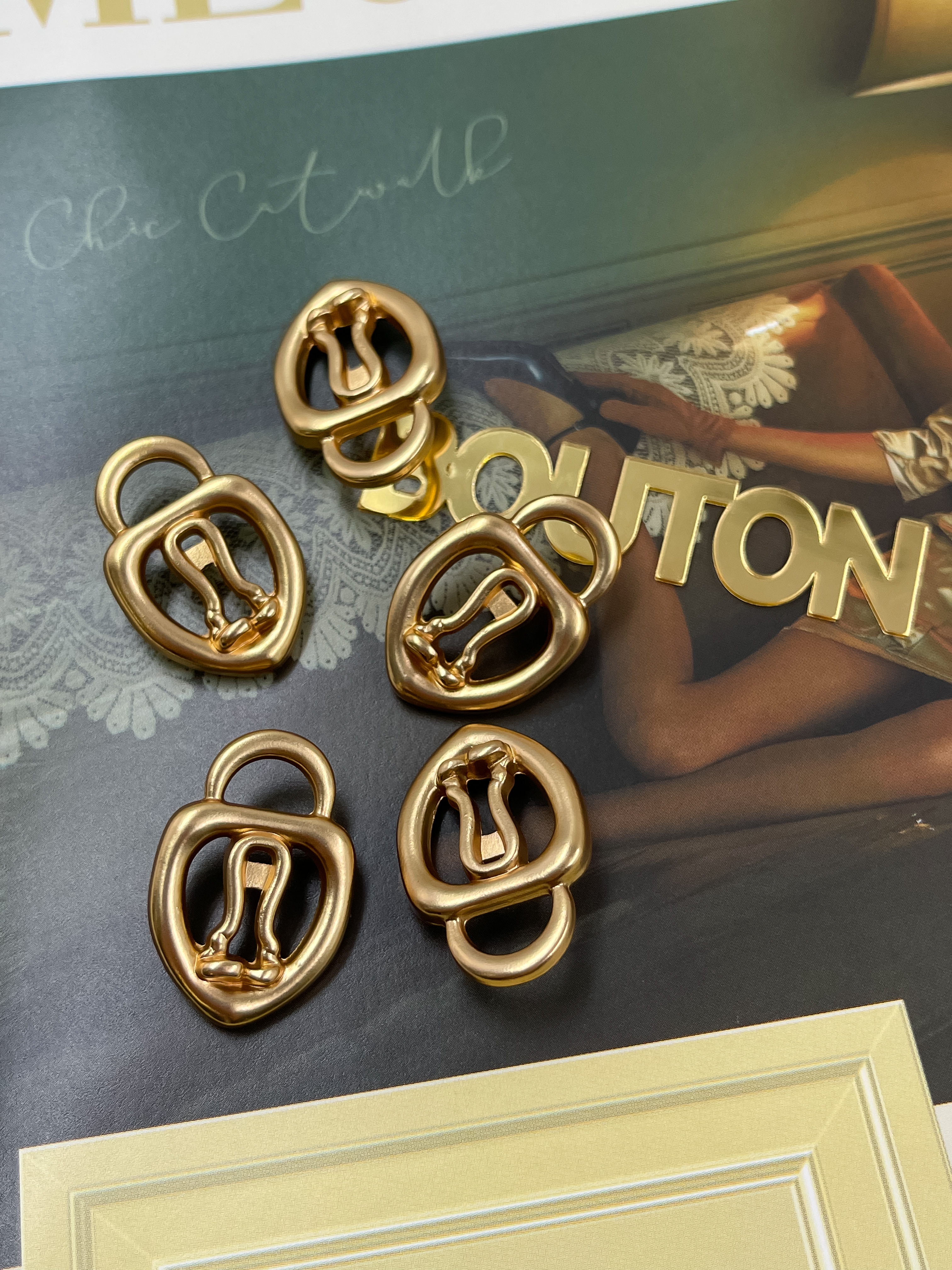 Золотистые пуговицы в стиле известного бренда в форме замка