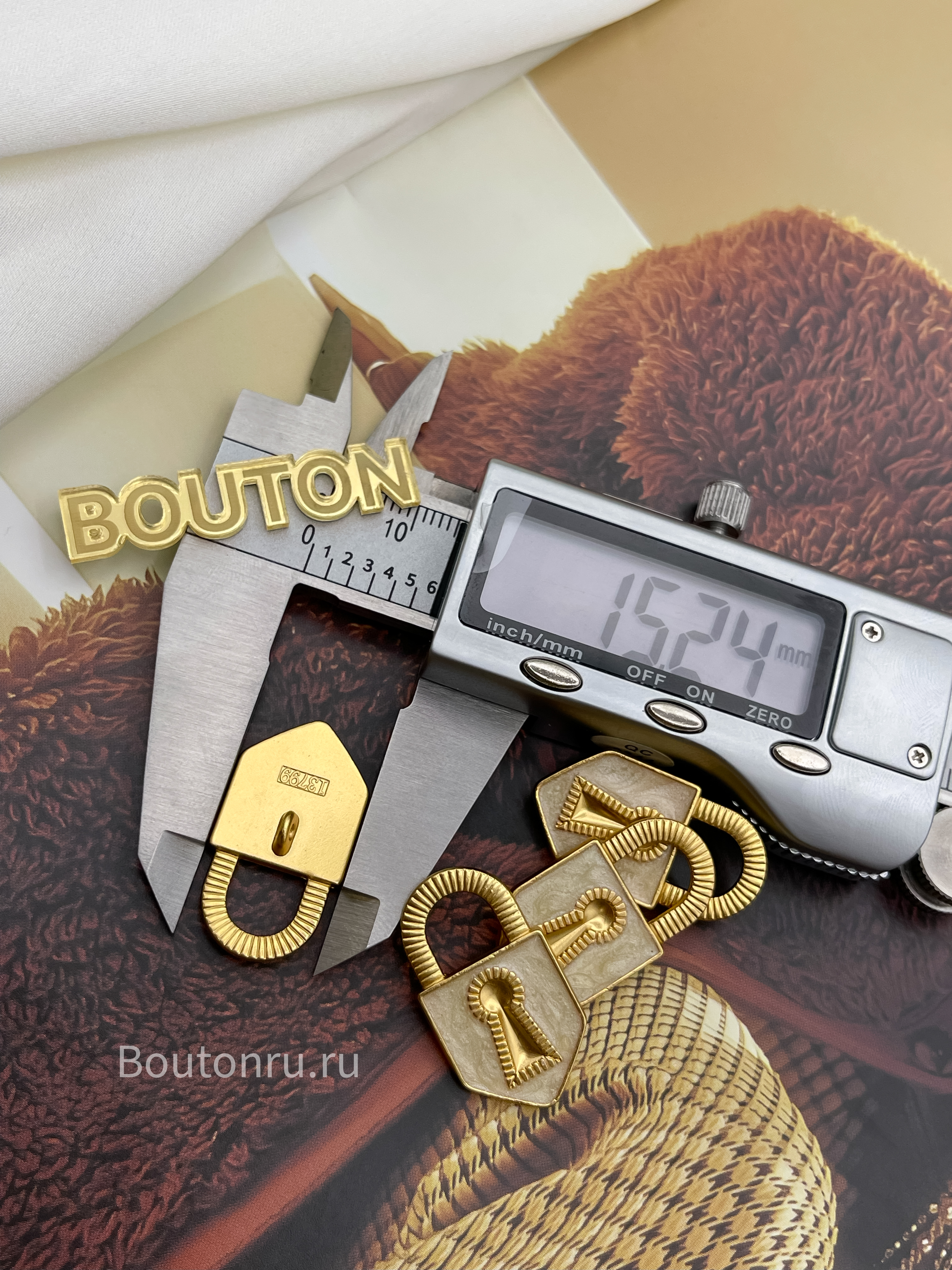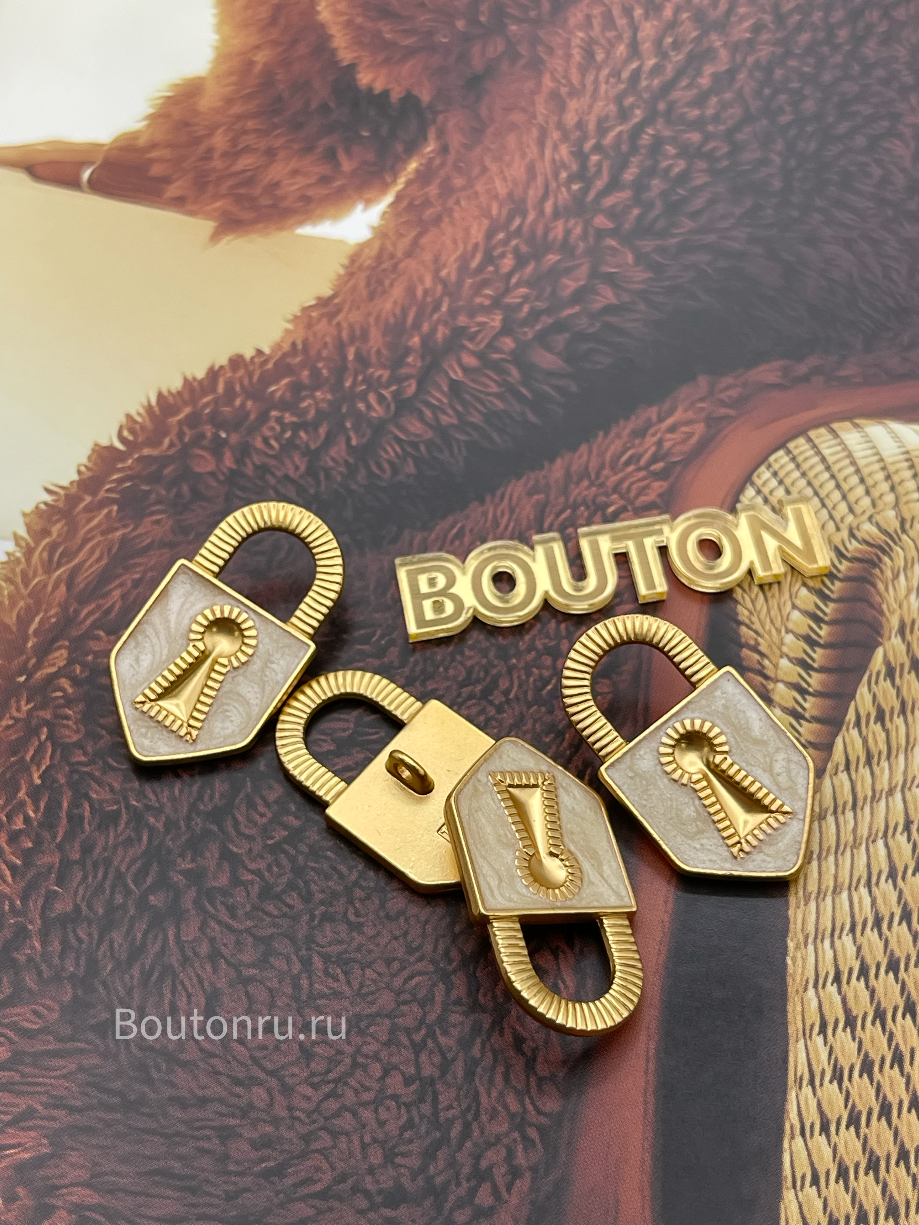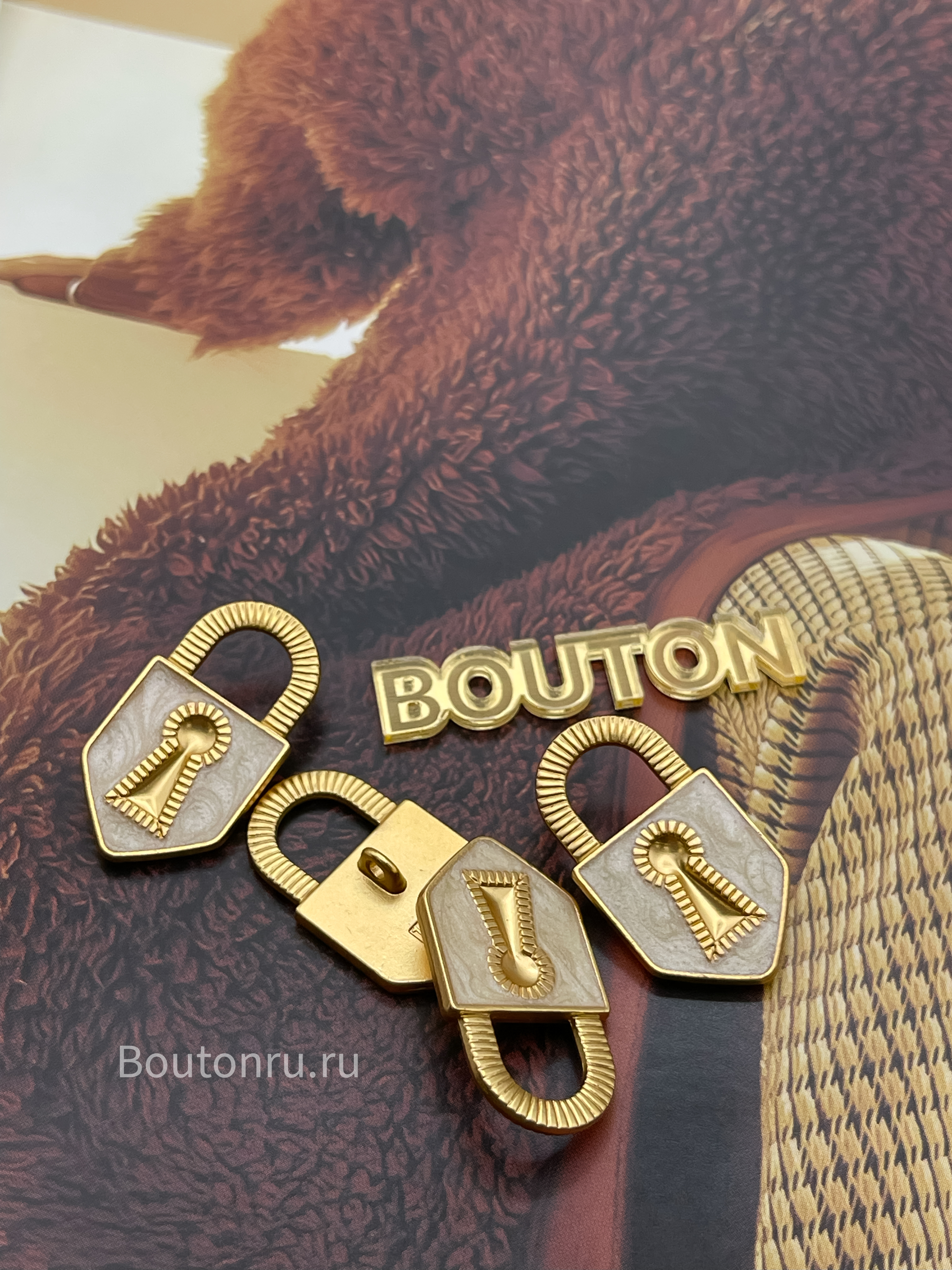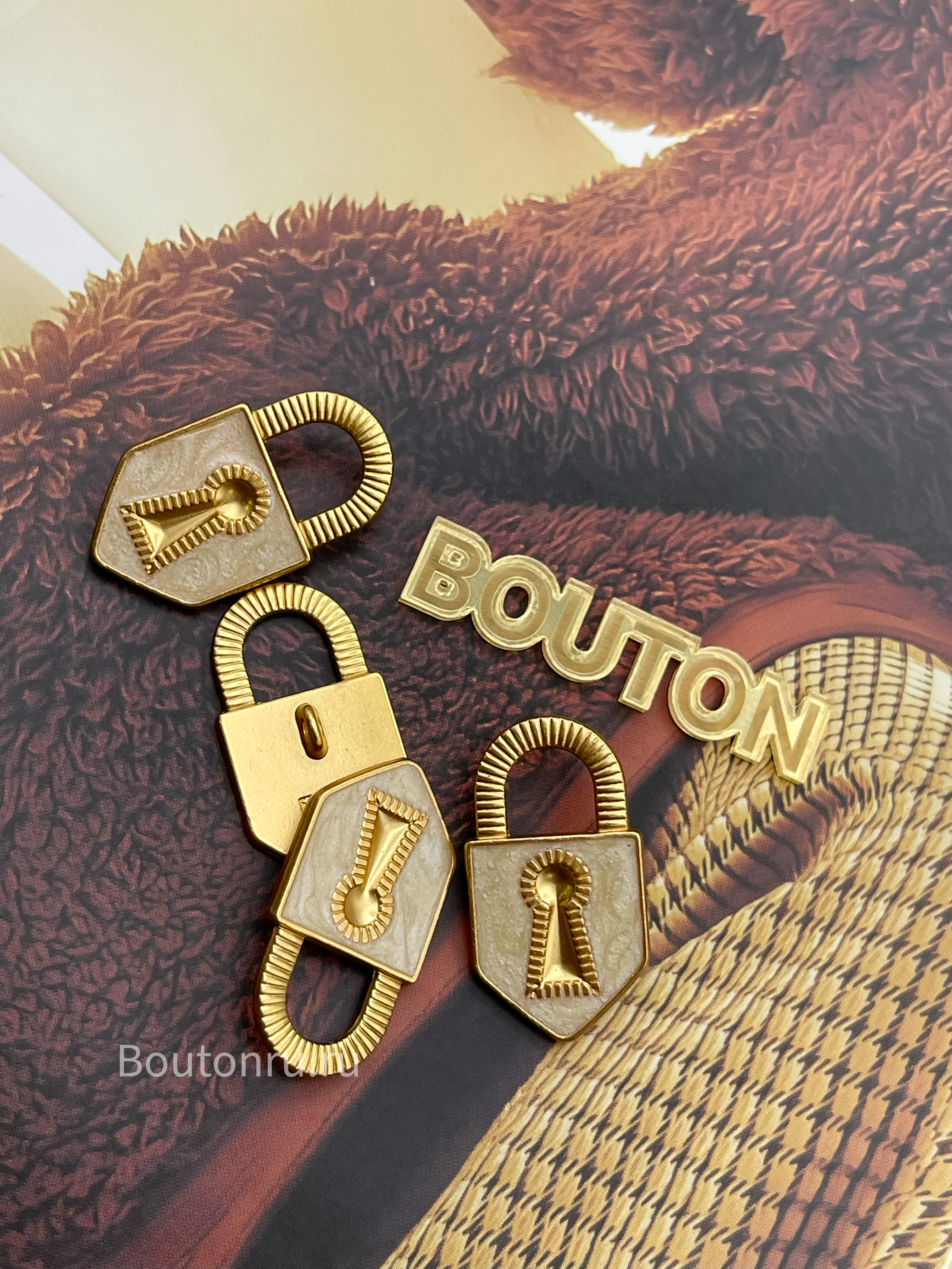 Пуговицы замочек золотистые с белой эмалью Скиапар.