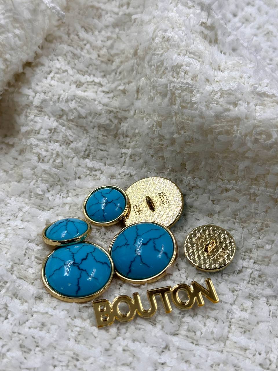 Пуговицы золотистые с лазурным камнем и черными прожилками (бирюза)