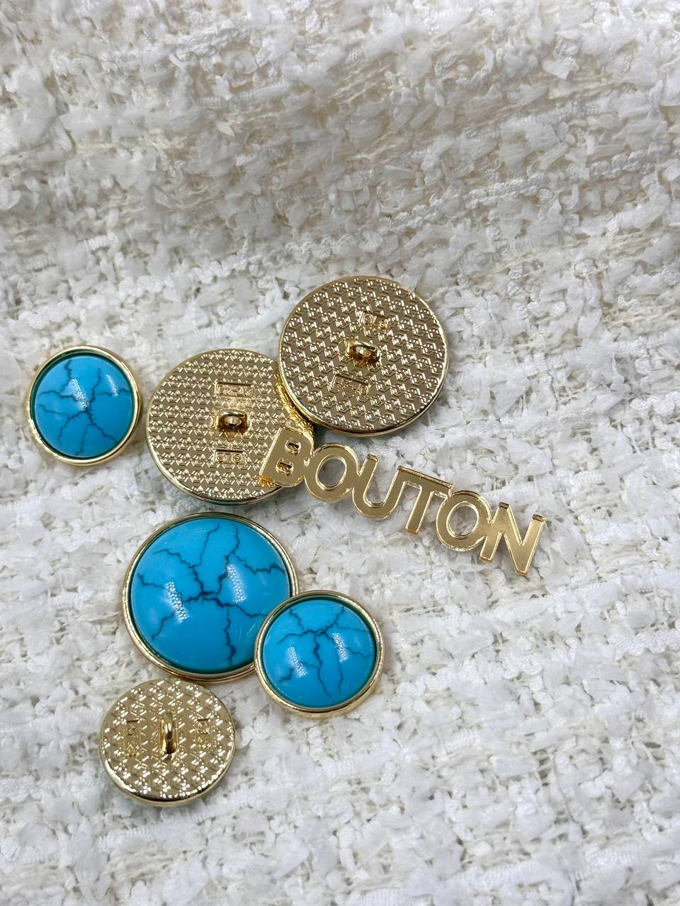 Пуговицы золотистые с бирюзовыми жемчужинами