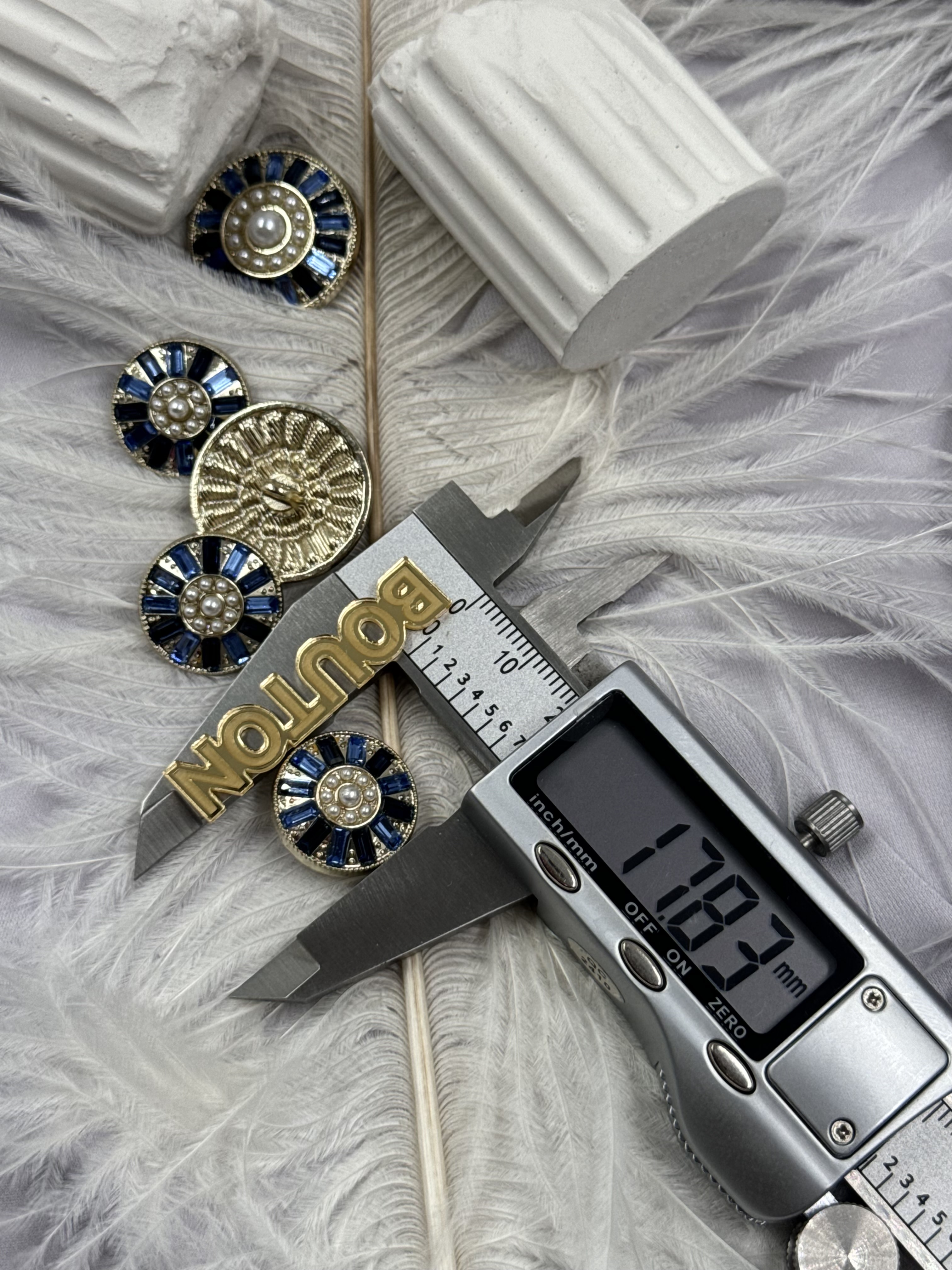 Пуговицы Скиапар. ажурные золотистые с белым камнем луна