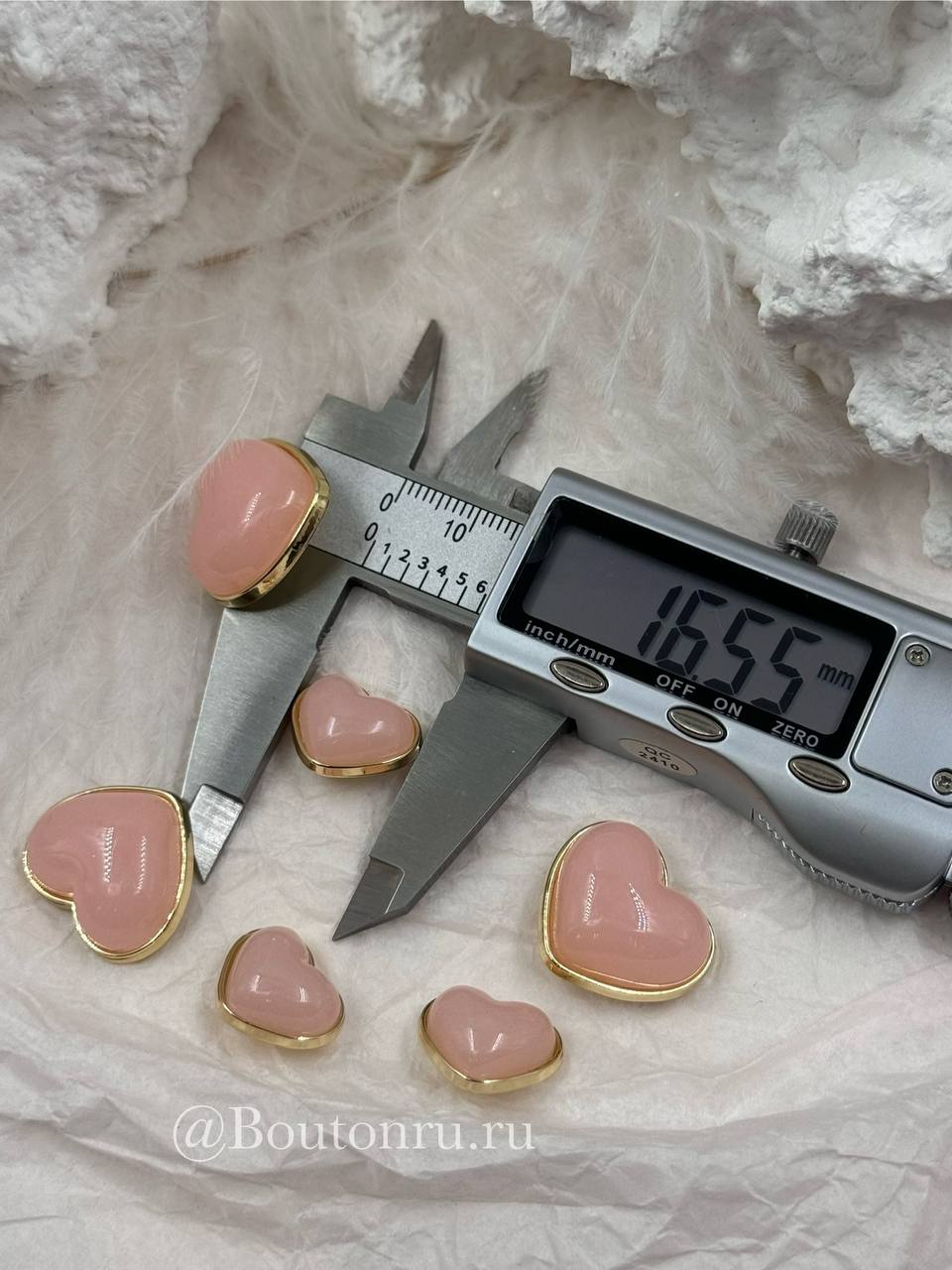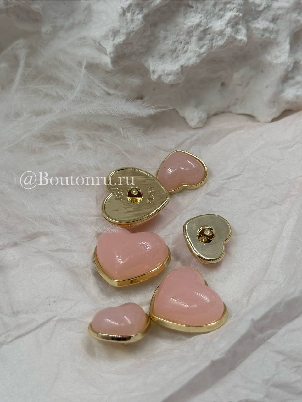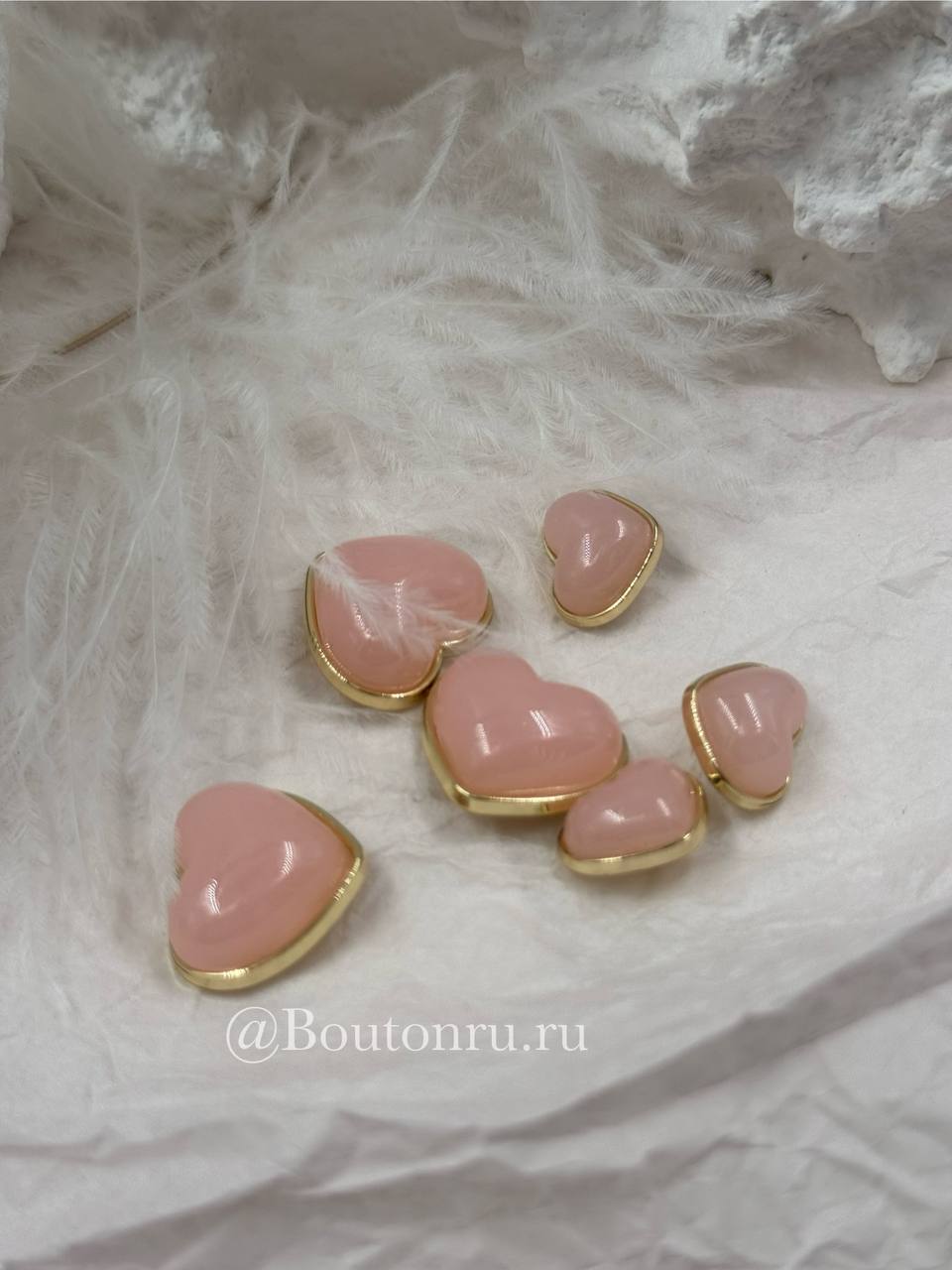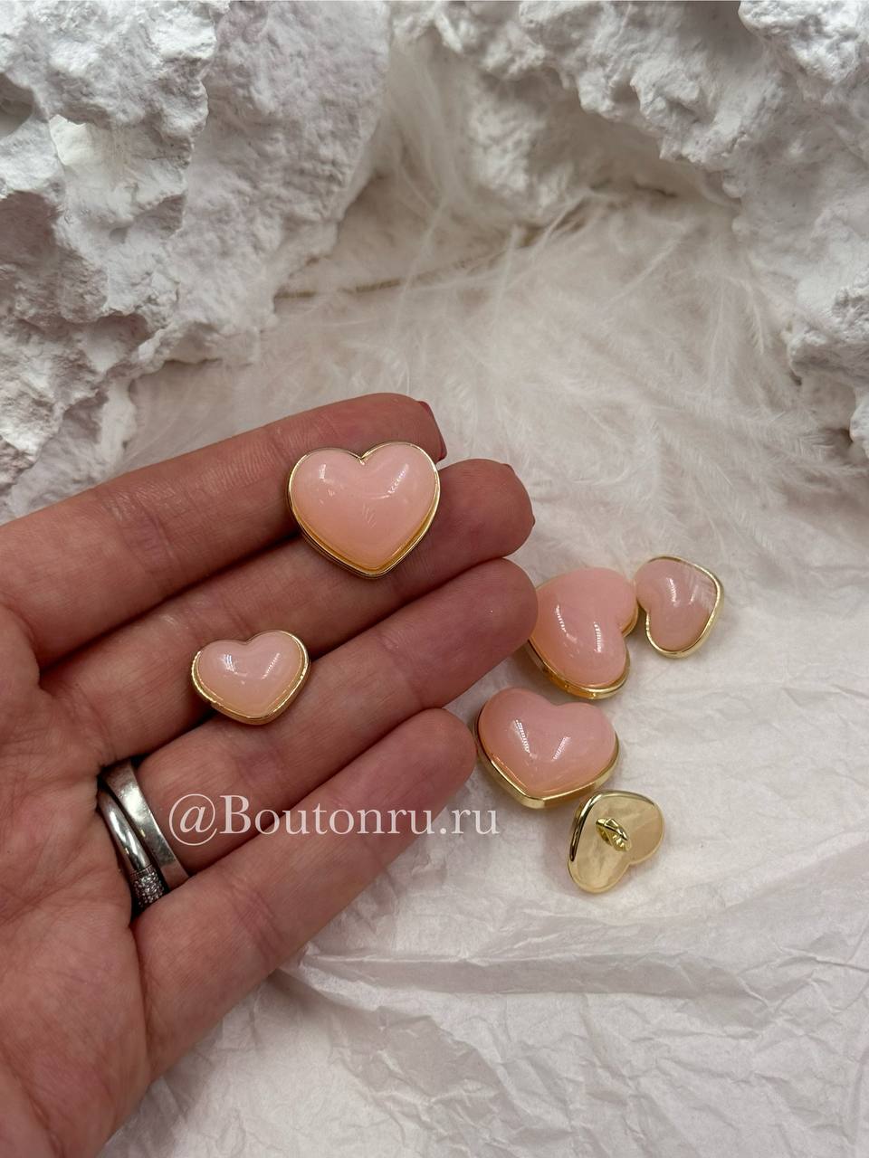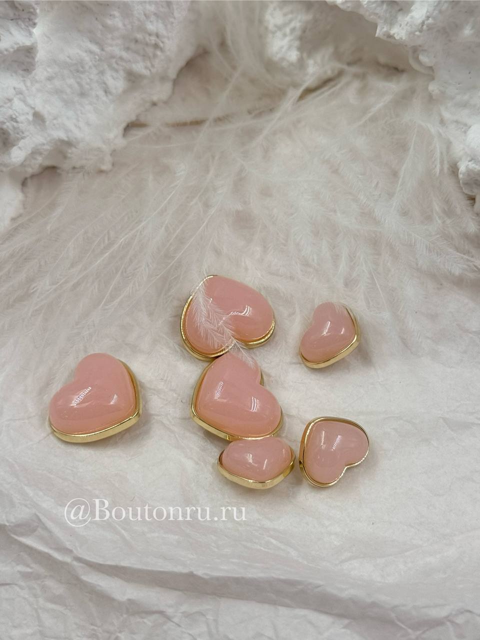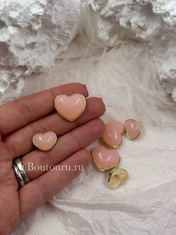 Милые пуговки в форме сердца в золотистом обрамлении с персиковой (розовой) объемной серединкой