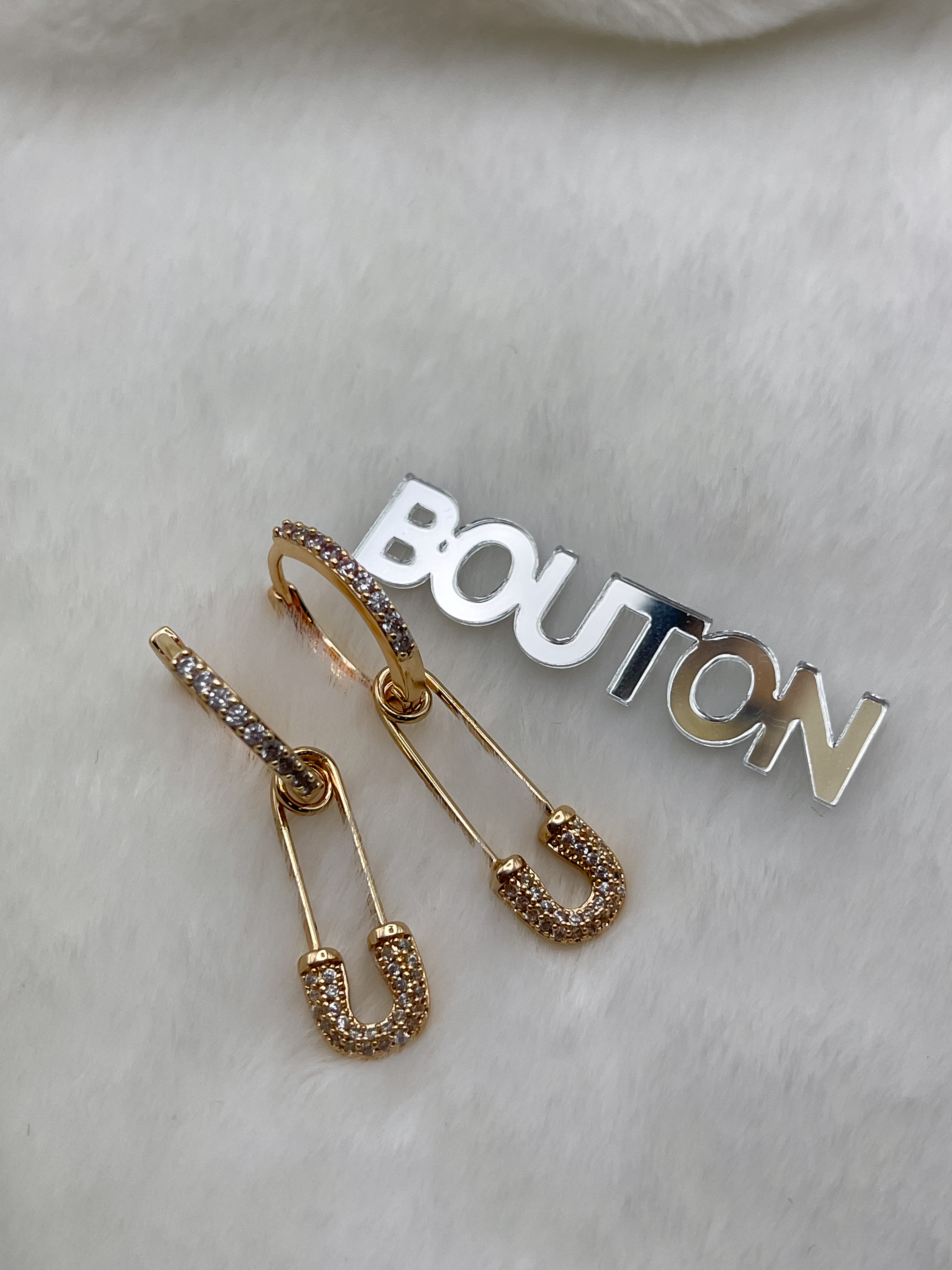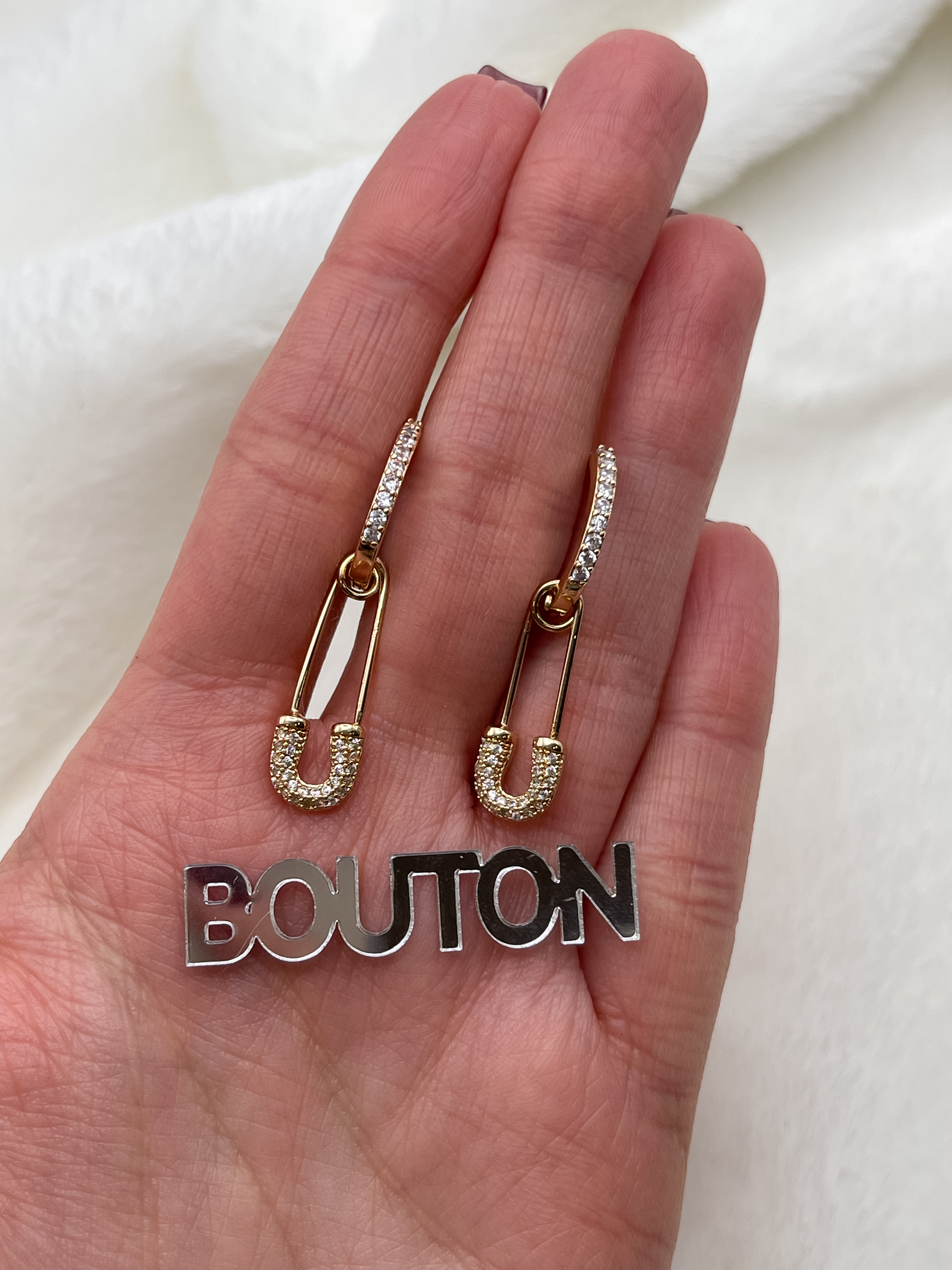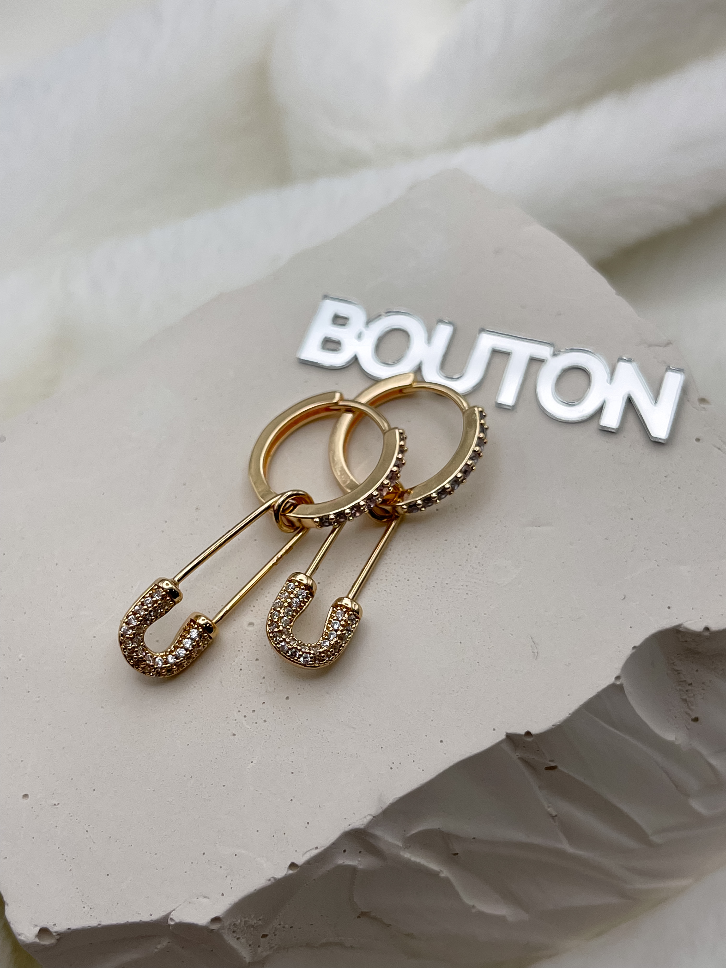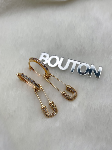 Серьги кольца золотистые с подвесками "Булавки" со стразами