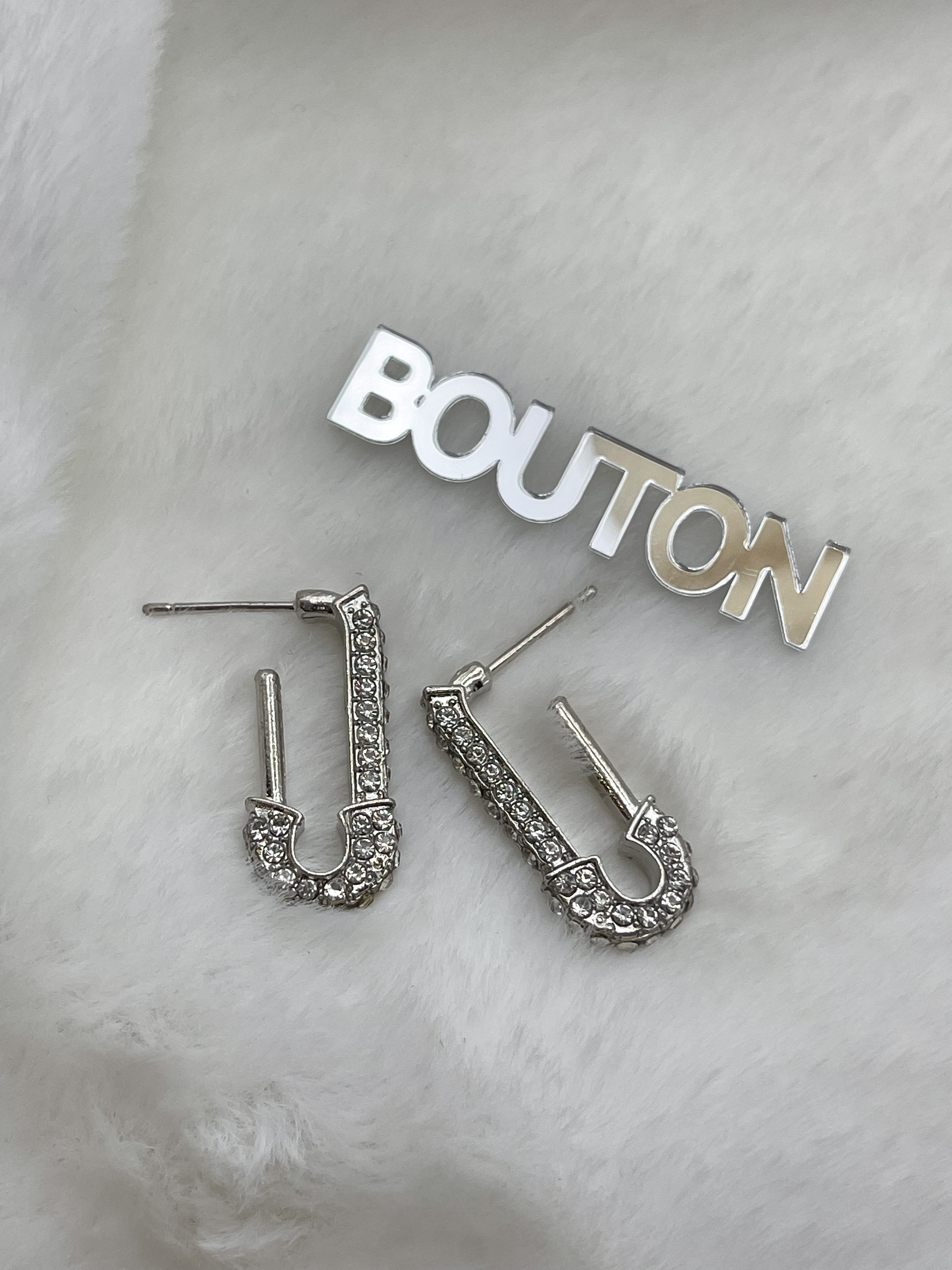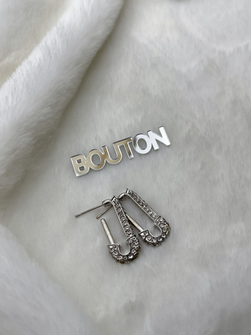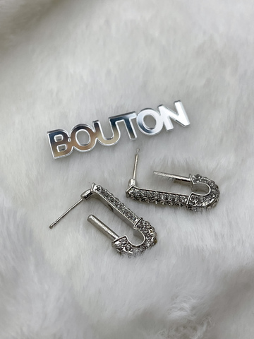 Серьги серебристые Гвоздики/Пусеты "Булавка" в стразах