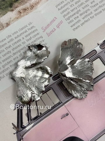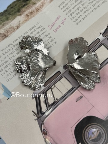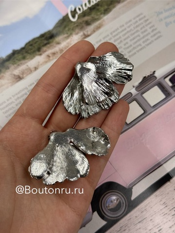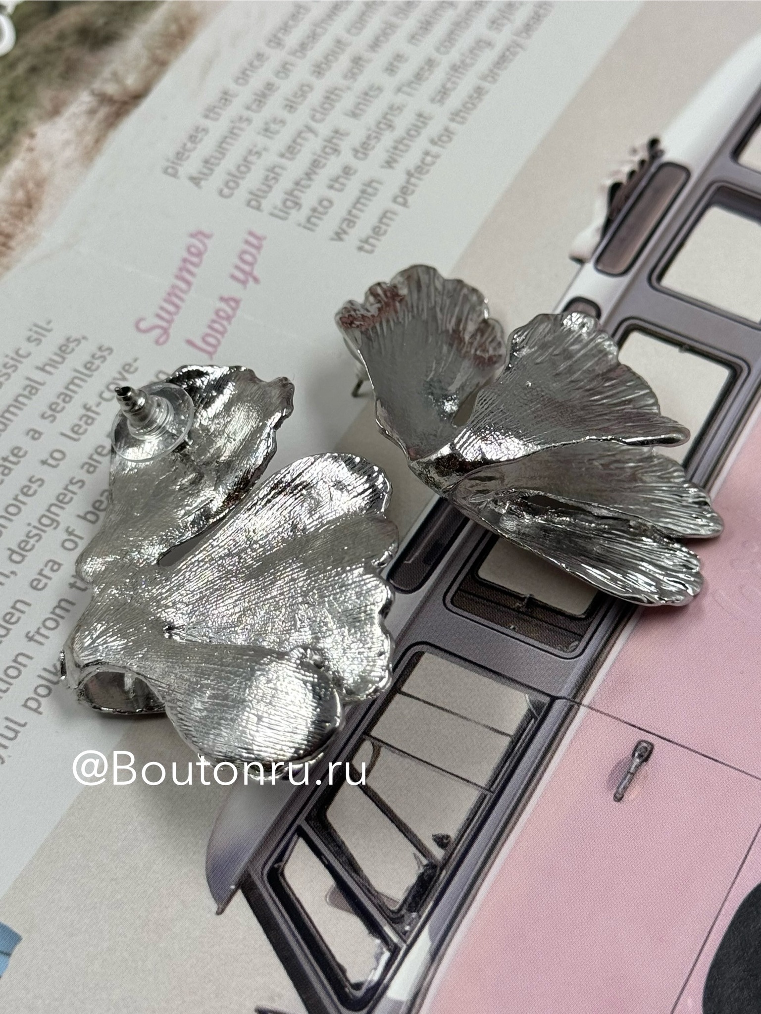 Массивные серьги из серебристого металла в форме изогнутых "Листьев Гинкго"