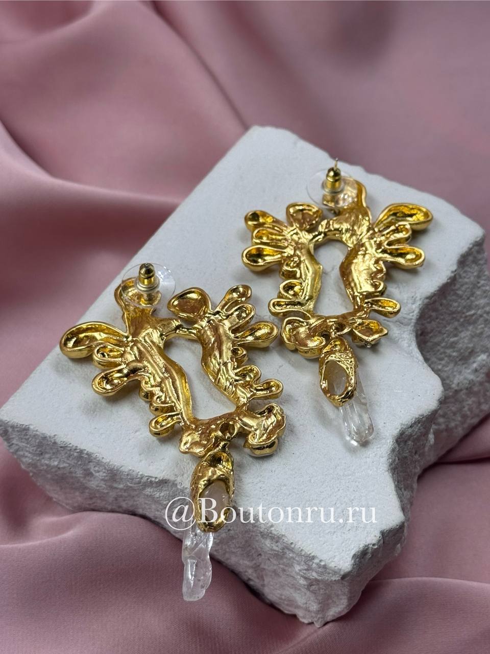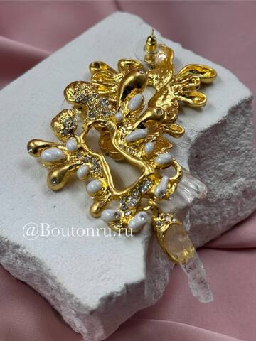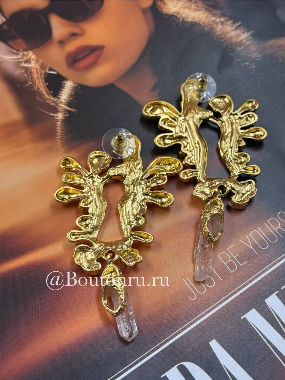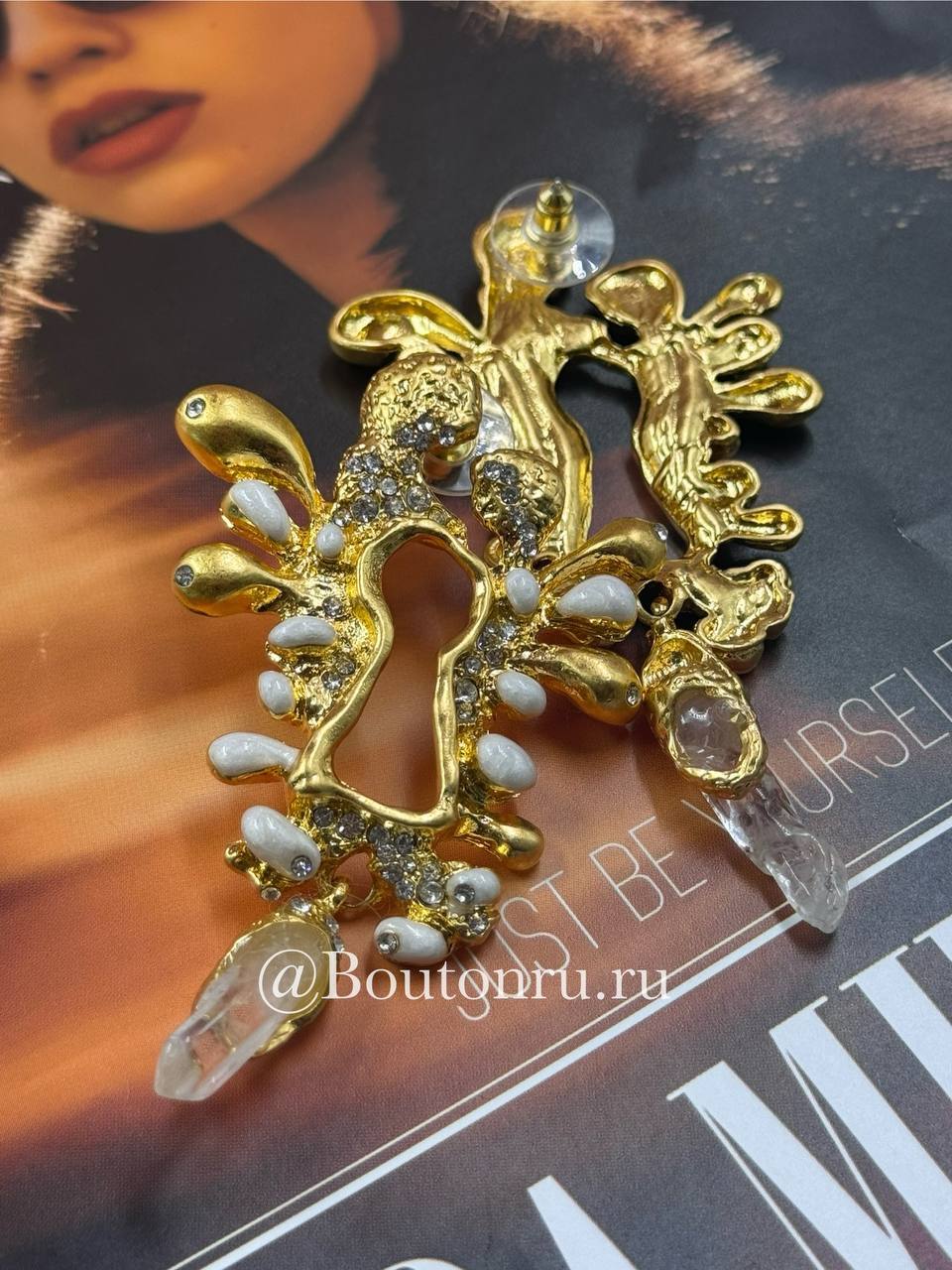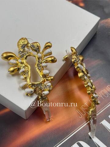 Роскошные массивные серьги в форме замочной скважины. Серьги в стиле известного бренда , серьги дополнены белой эмалью и стразами