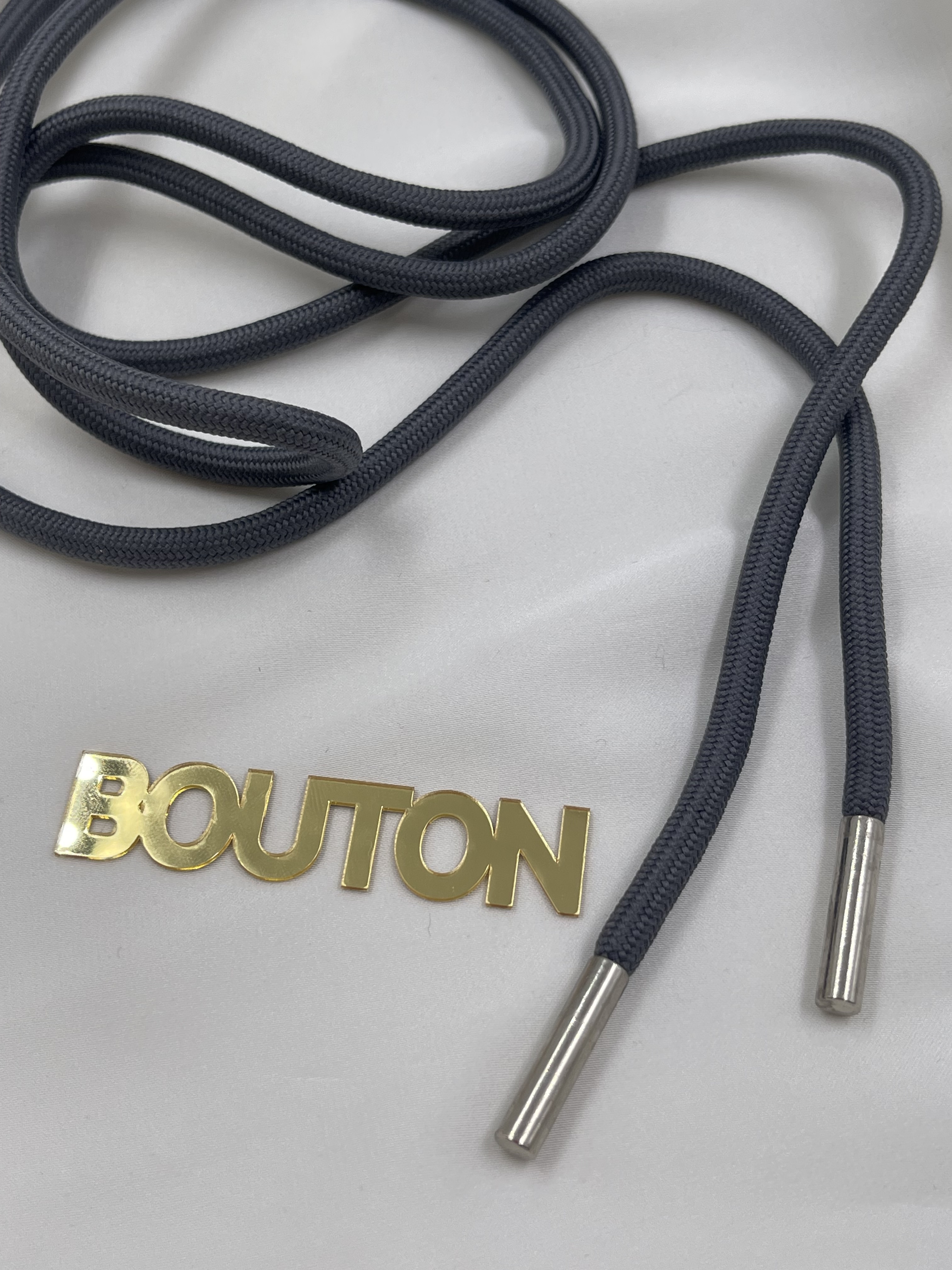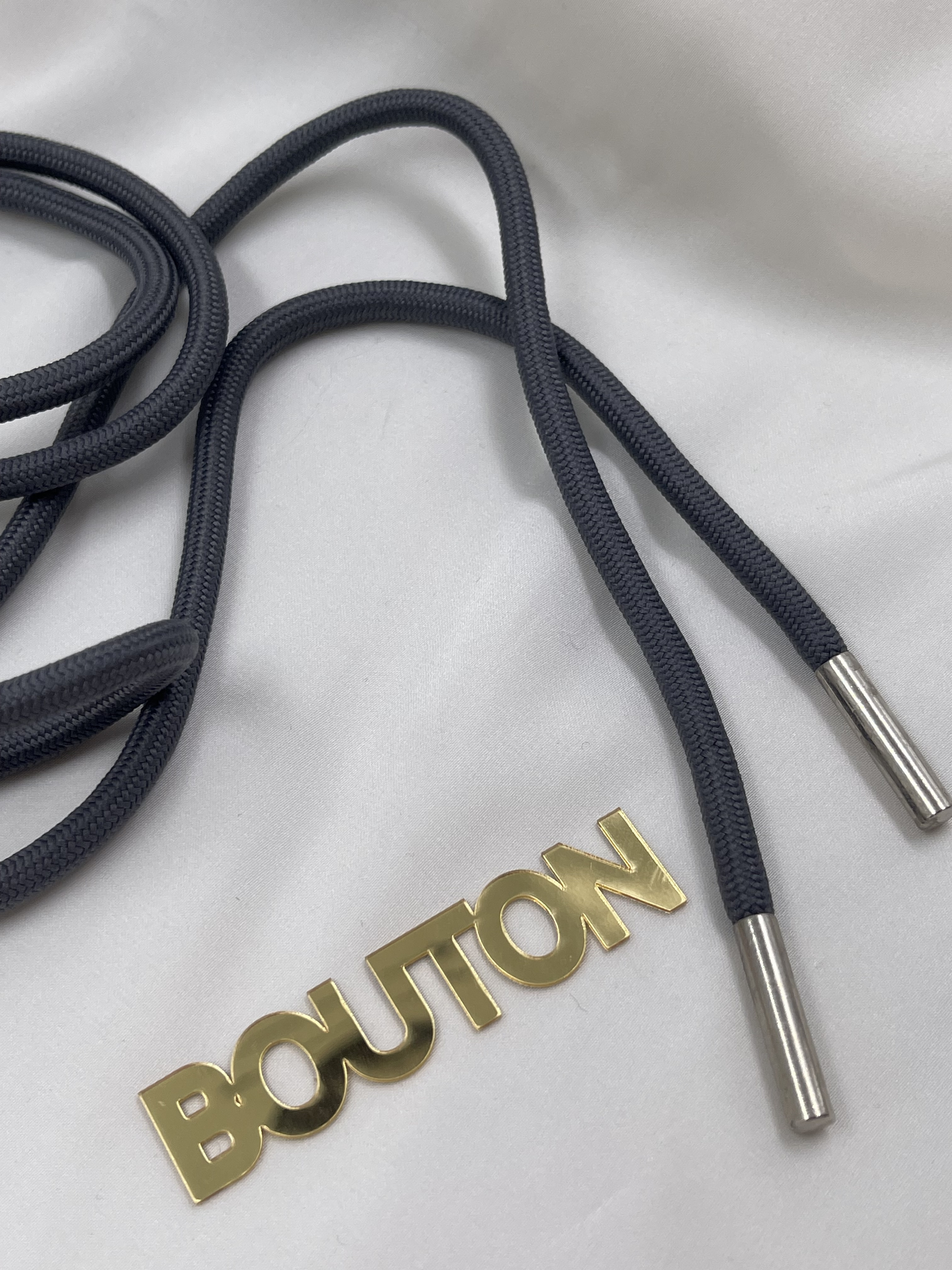 Шнур круглый тёмно-зелёный с графитовым подтоном и металлическими наконечниками