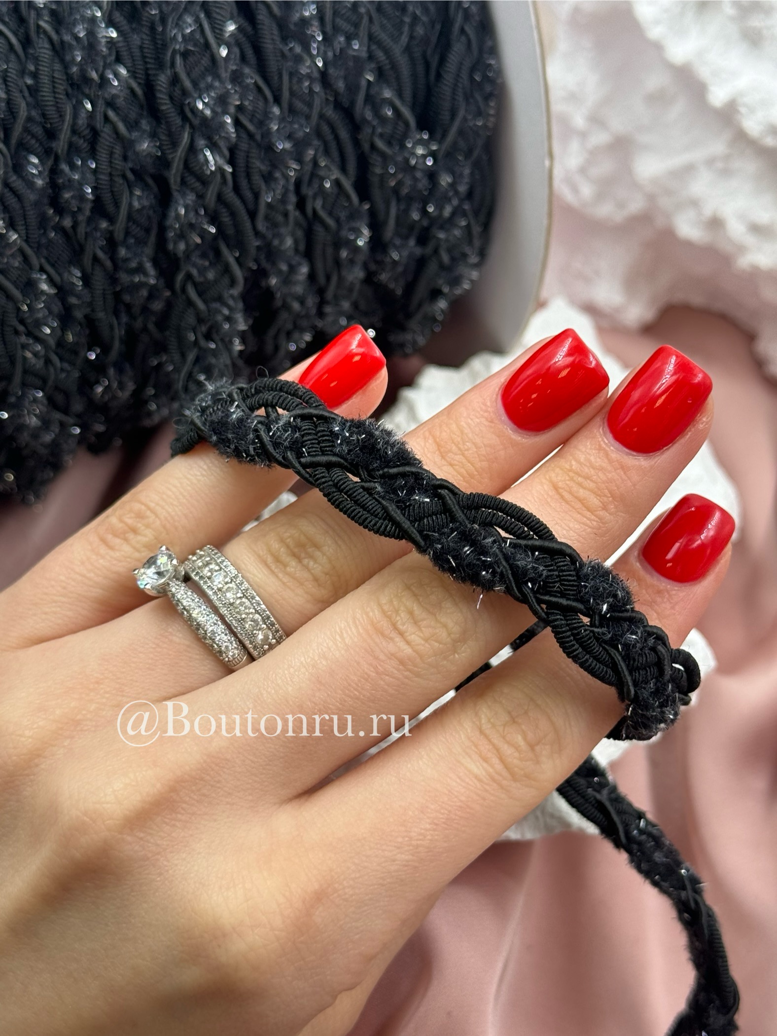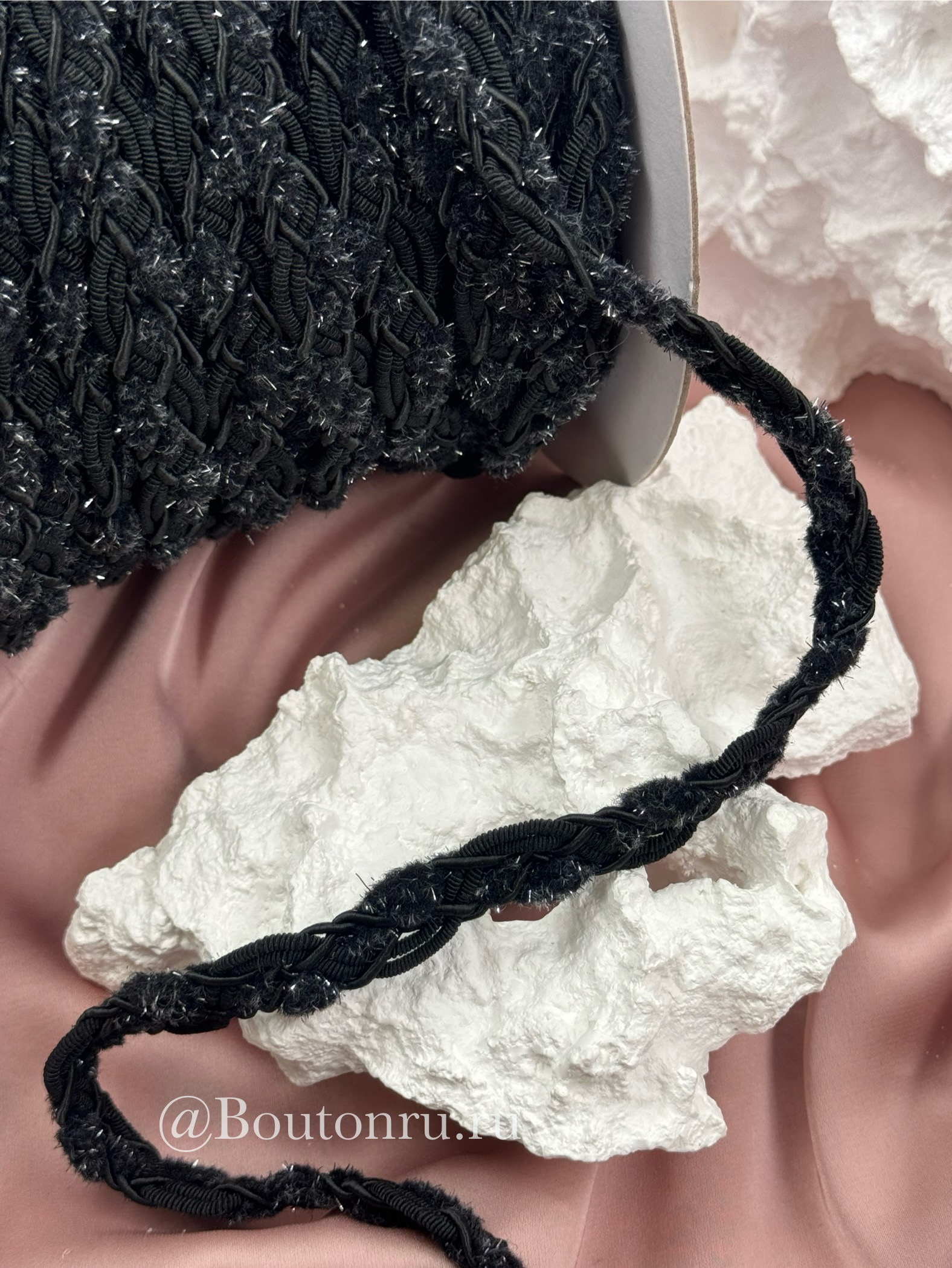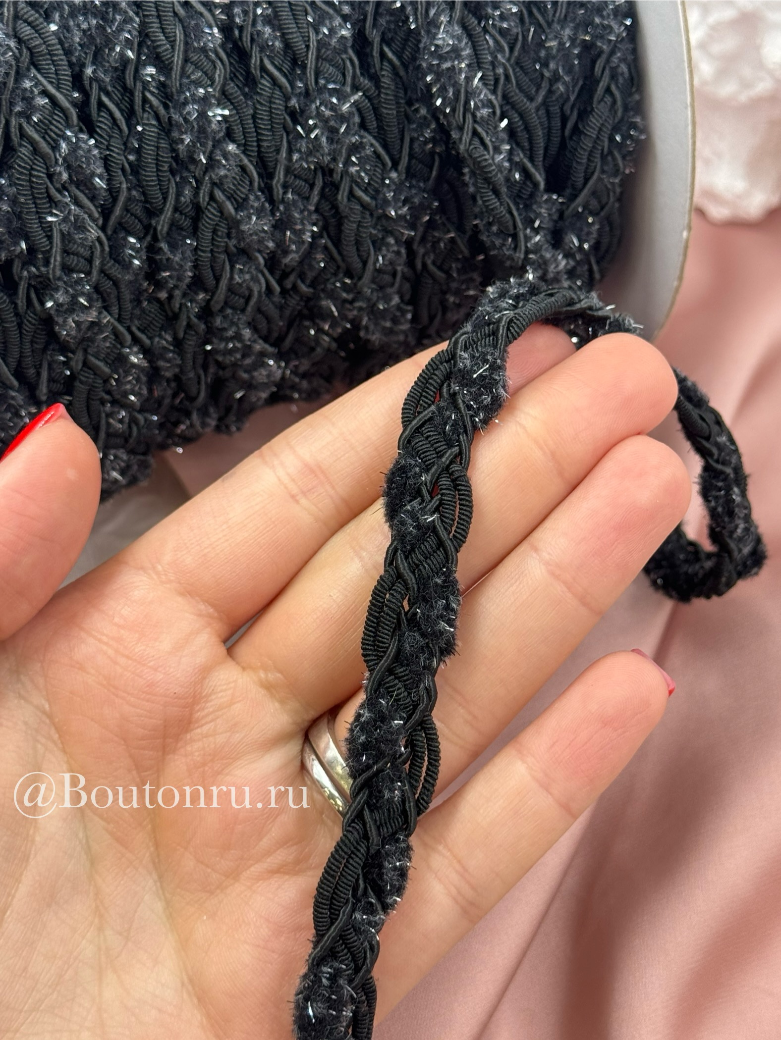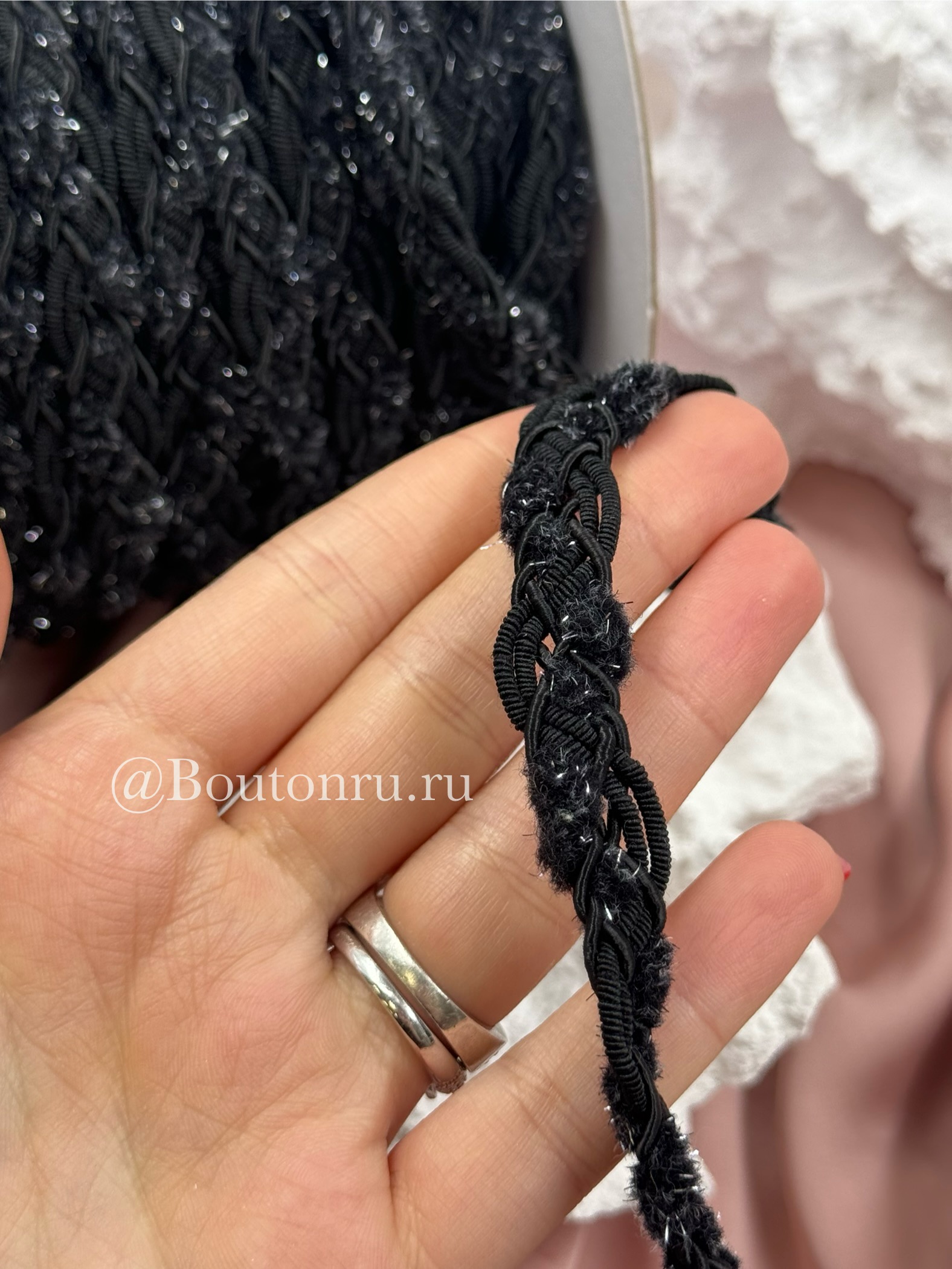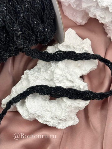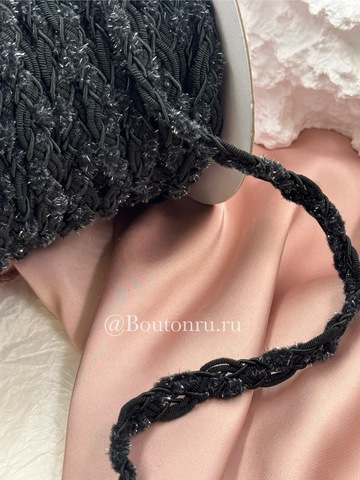 Тесьма плетеная черная с пушистыми вставками