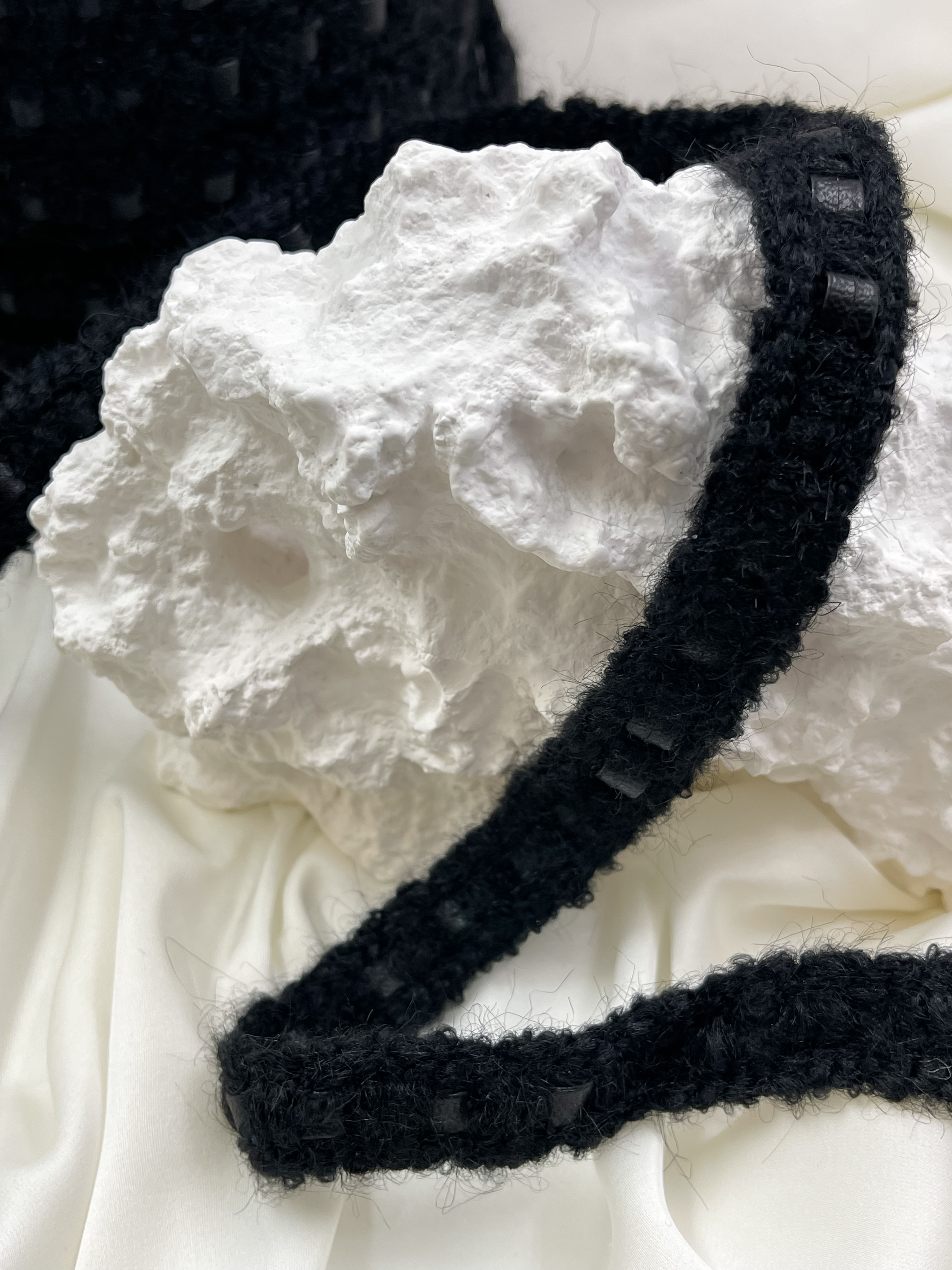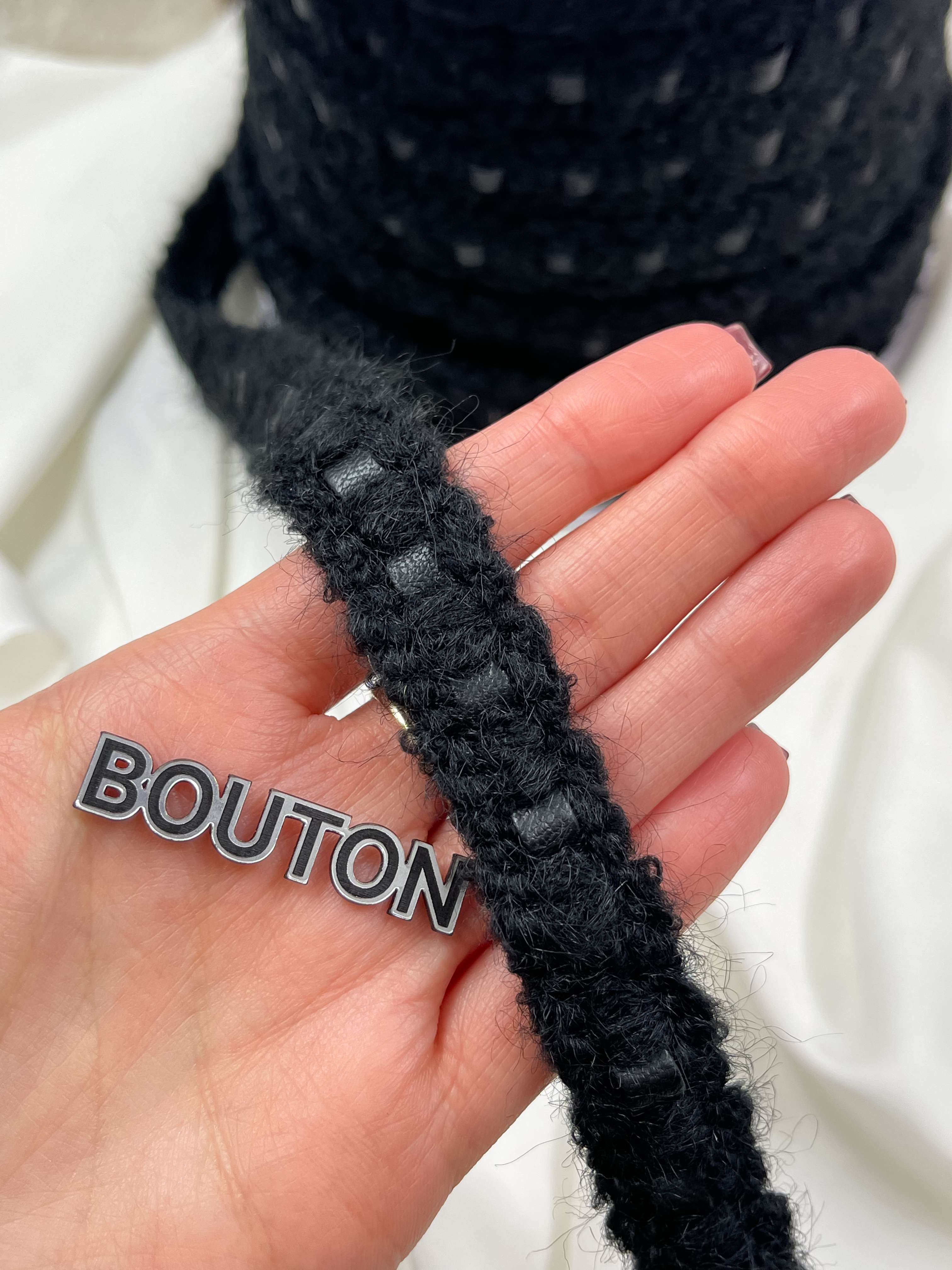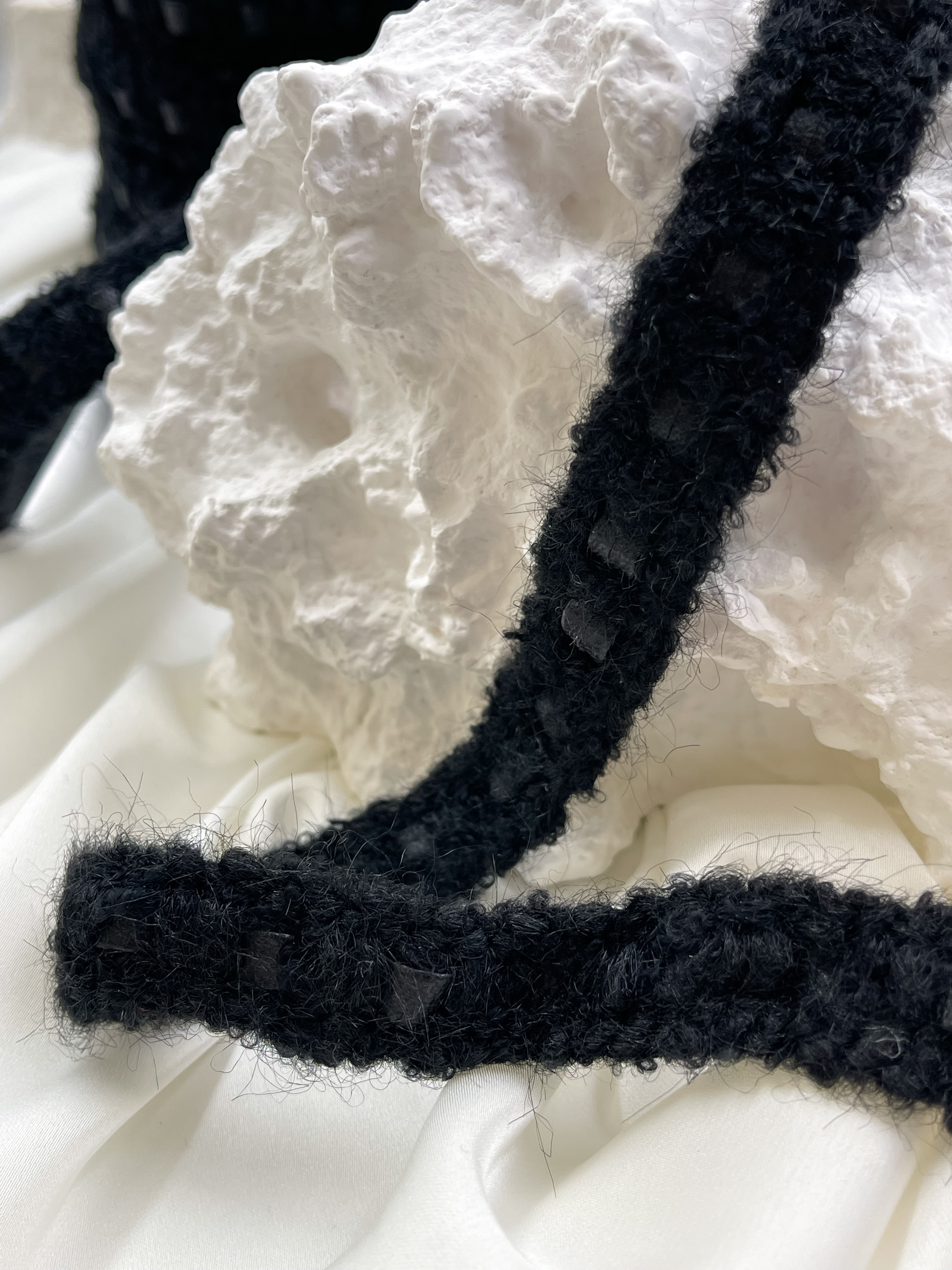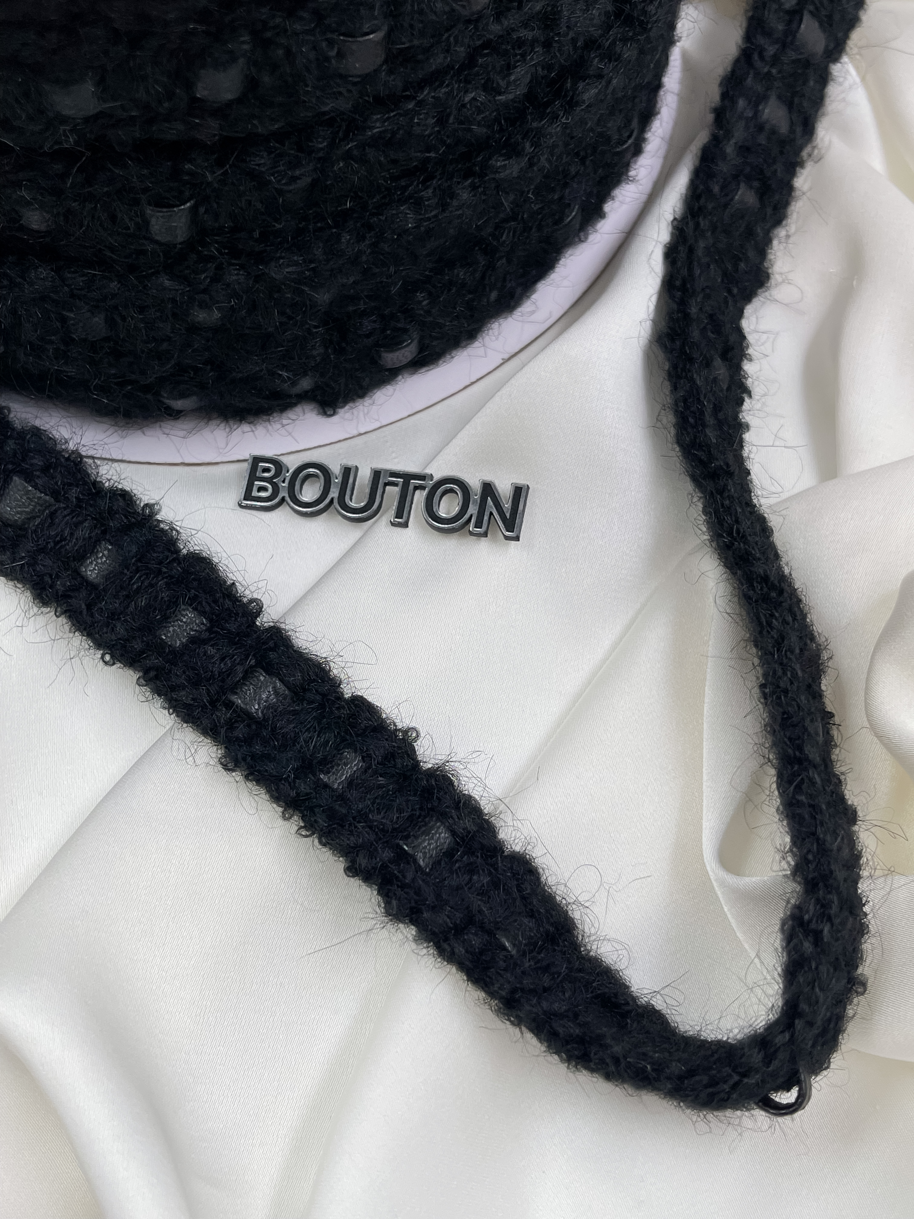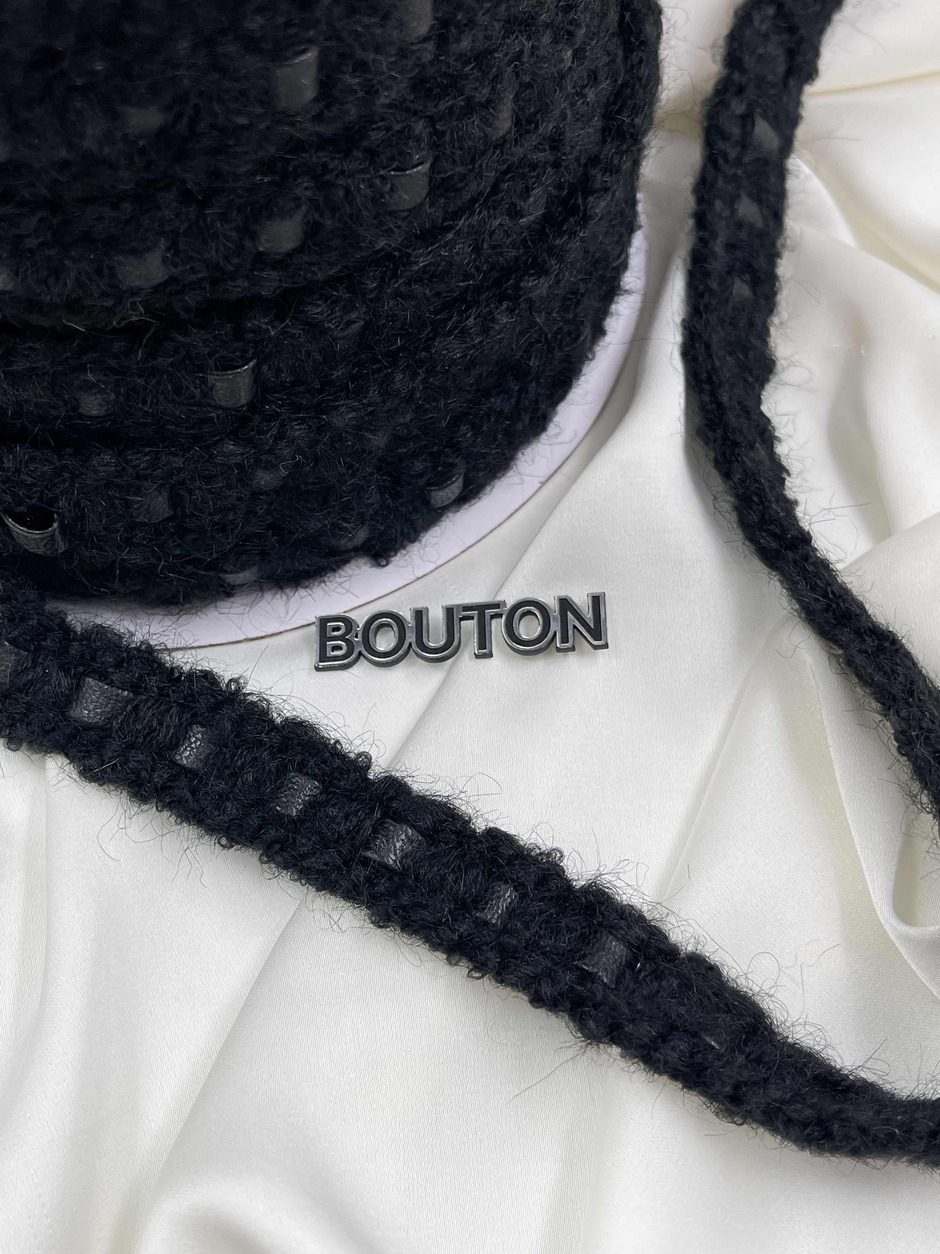 Тесьма плетеная черная с пушистыми вставками