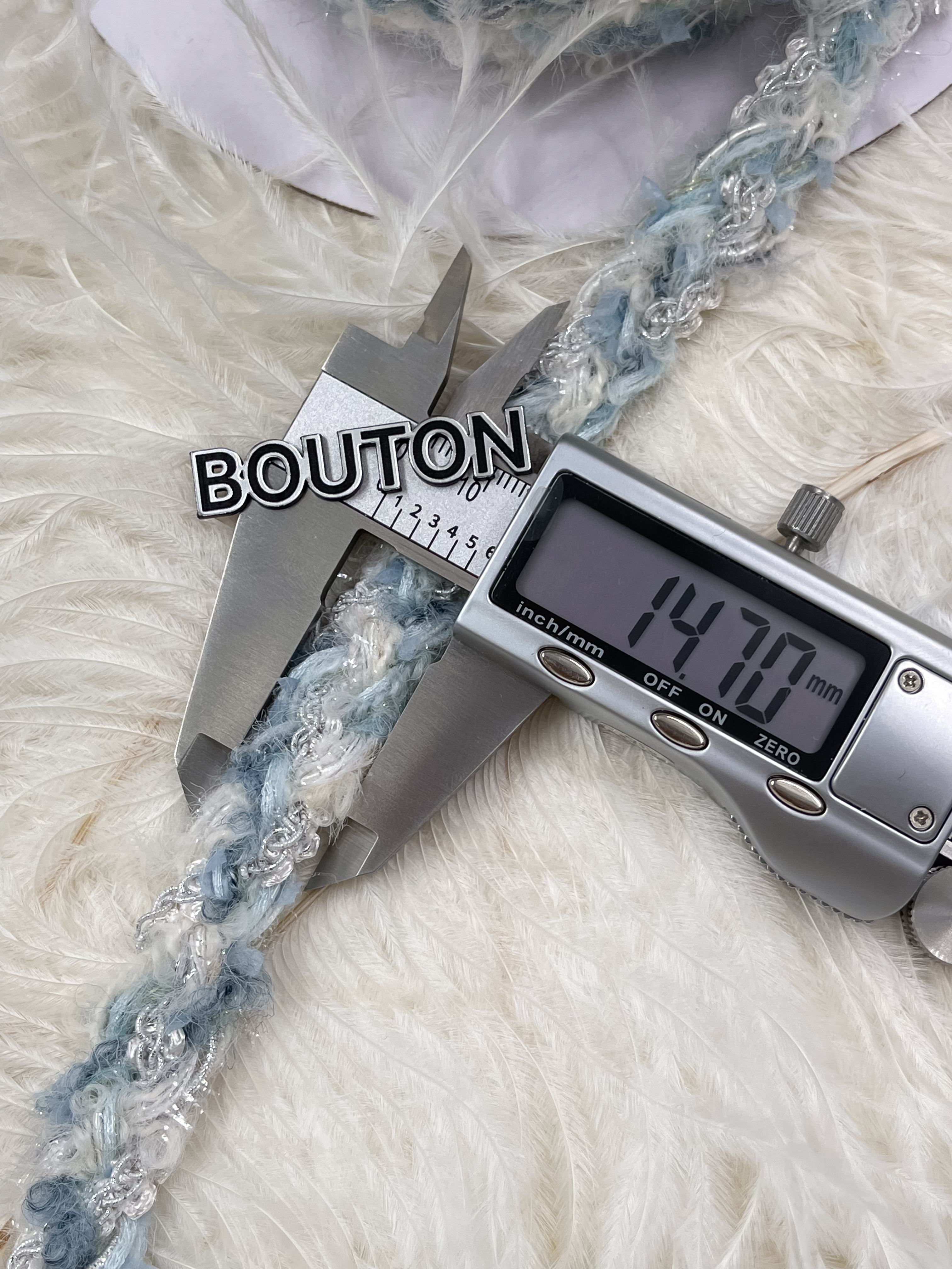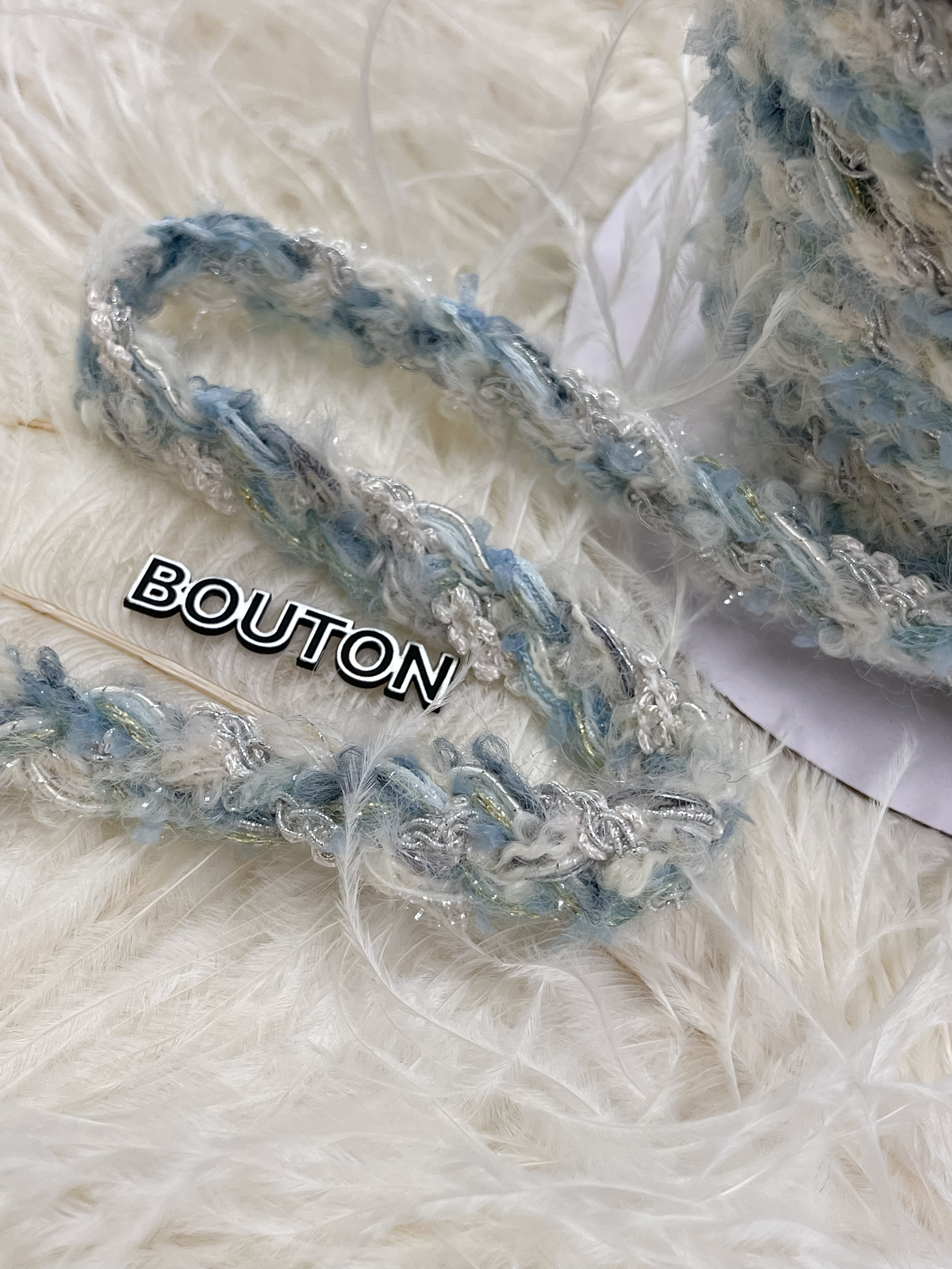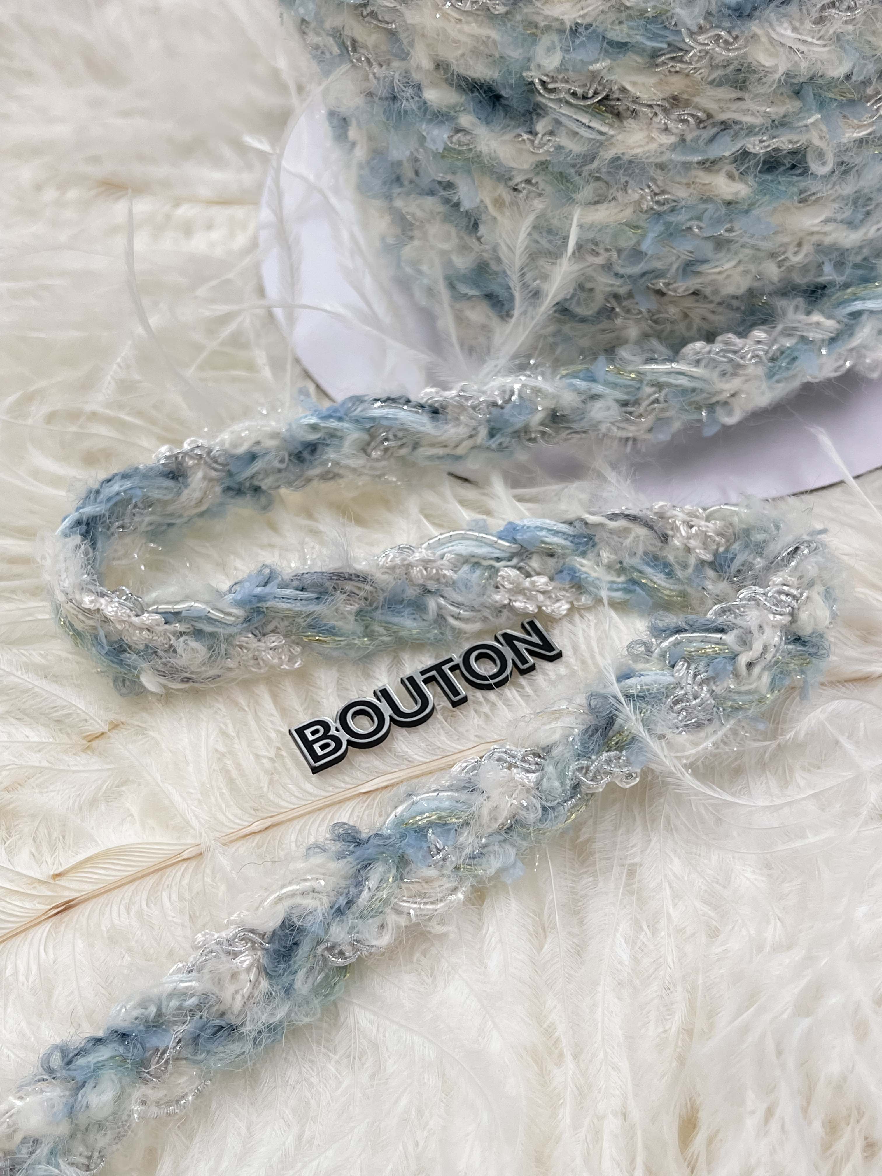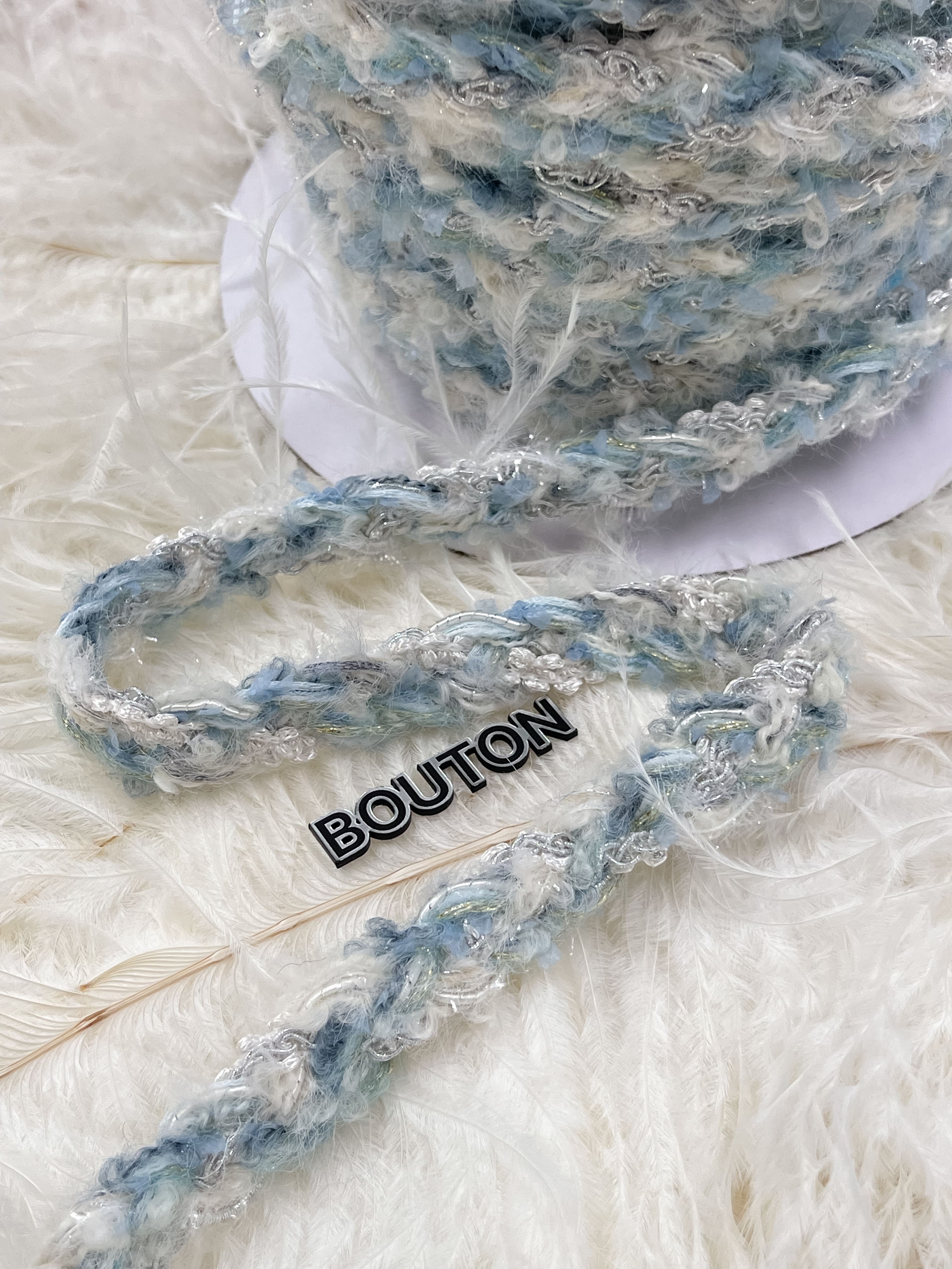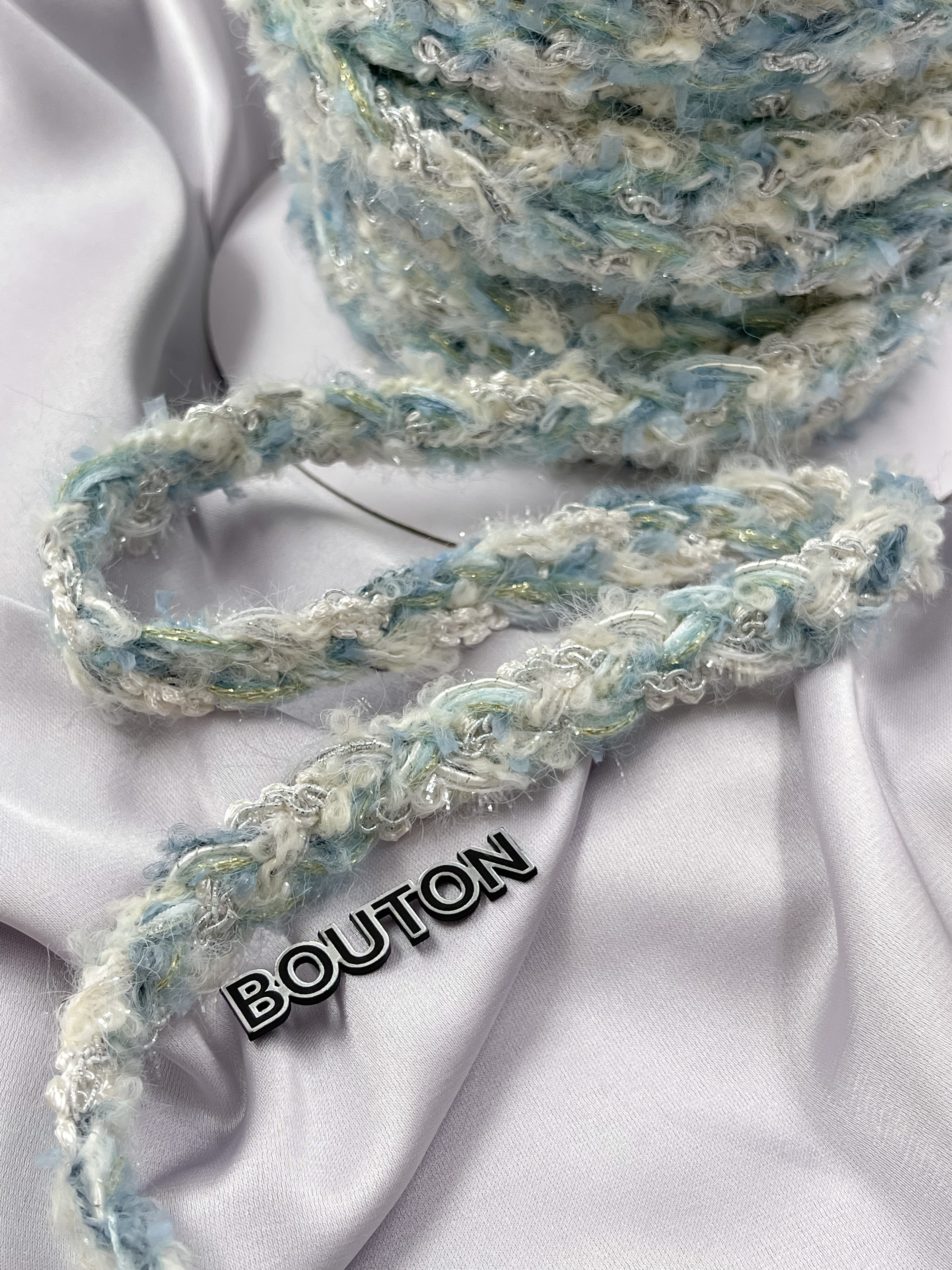 Тесьма-косичка серо-голубая с нитью люрекса 15 мм