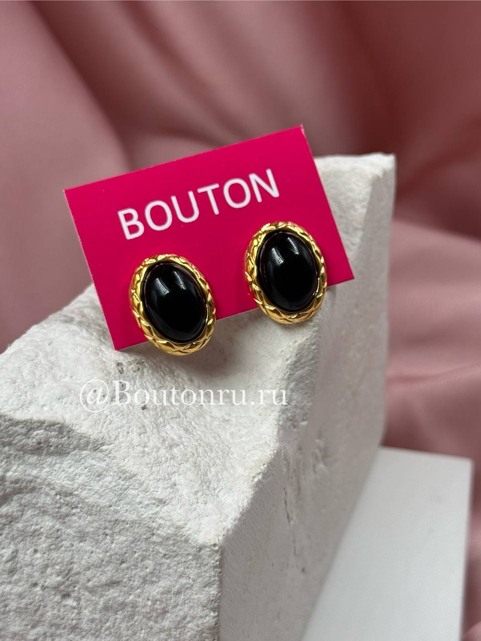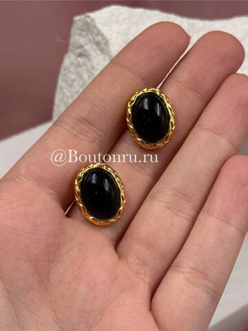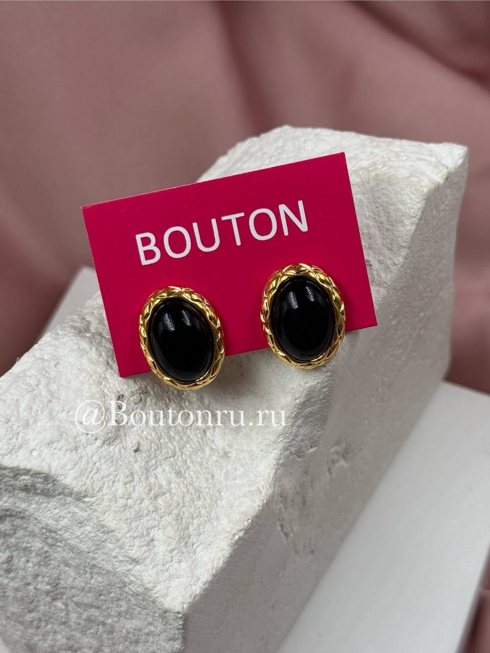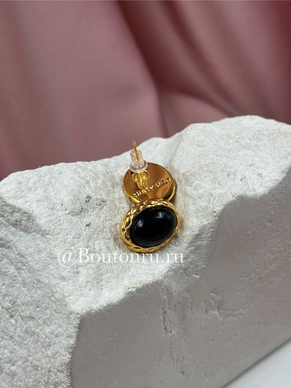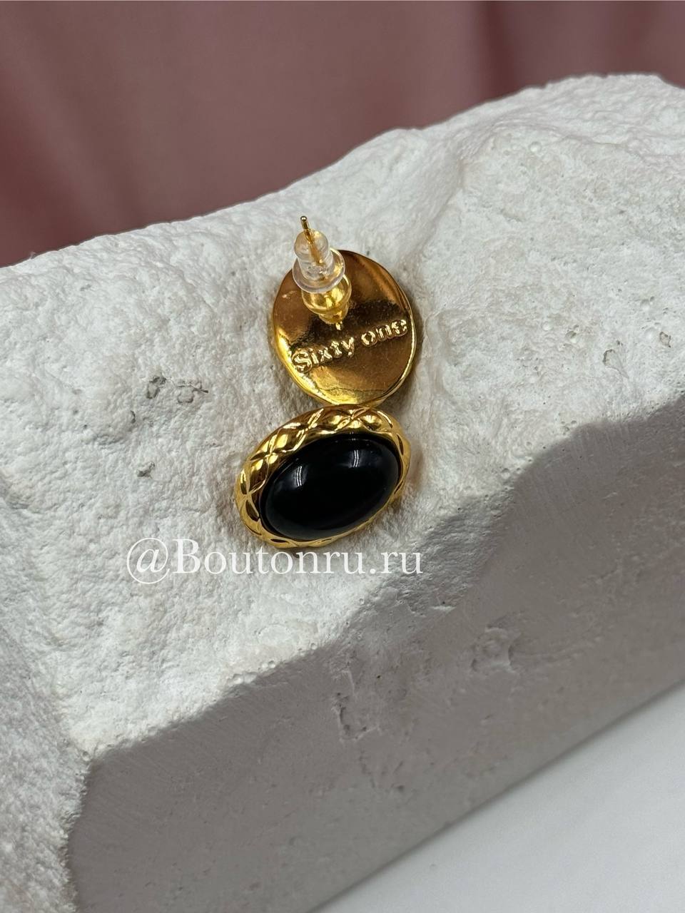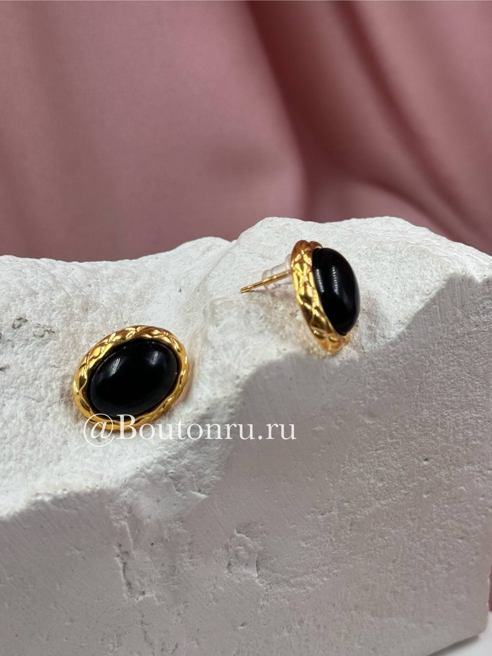 Серьги в винтажном стиле с темным камнем в золотистом обрамлении