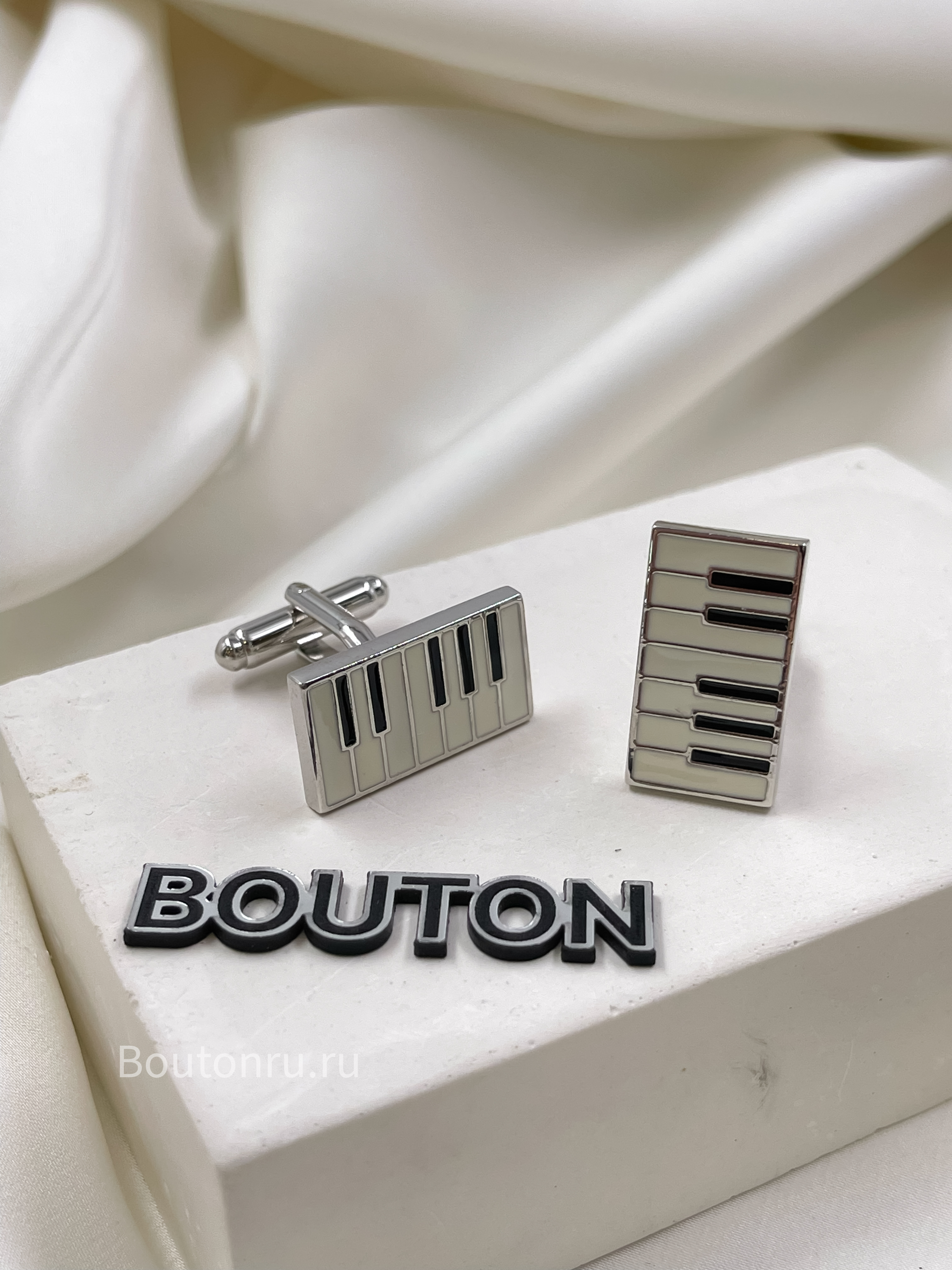 Запонки "Замочная скважина" черная эмаль Скиап. (пара)