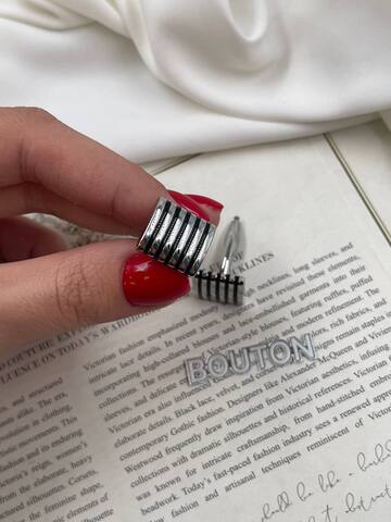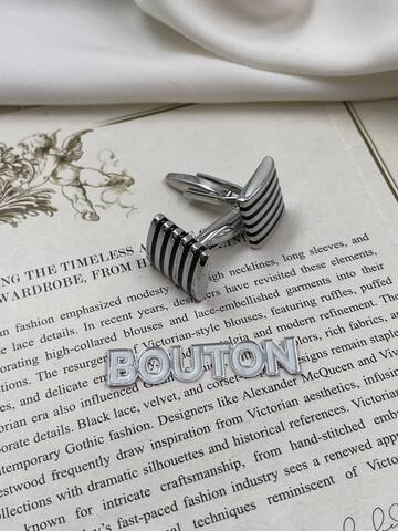 Запонки серебристые квадратные с черными полосками